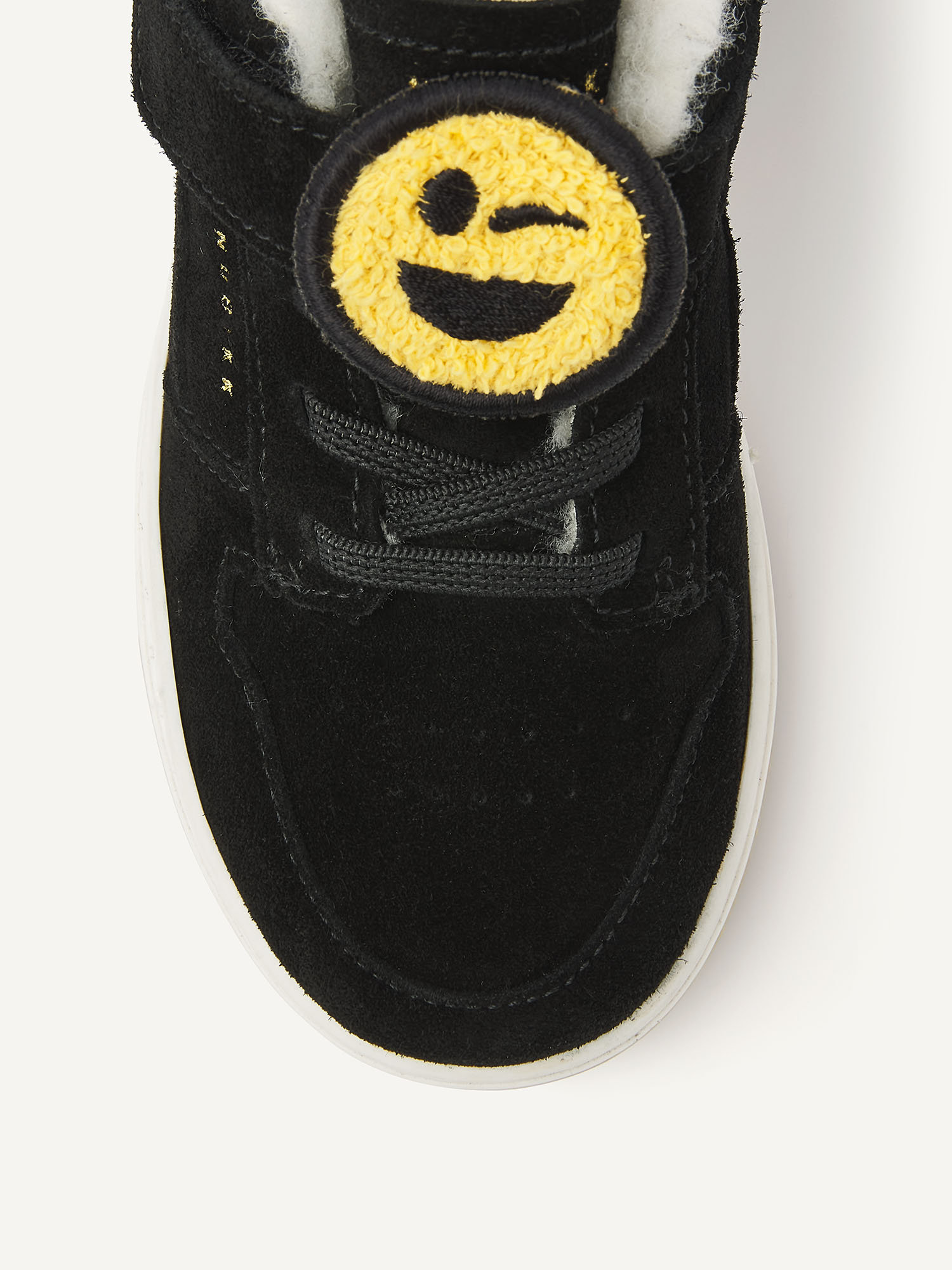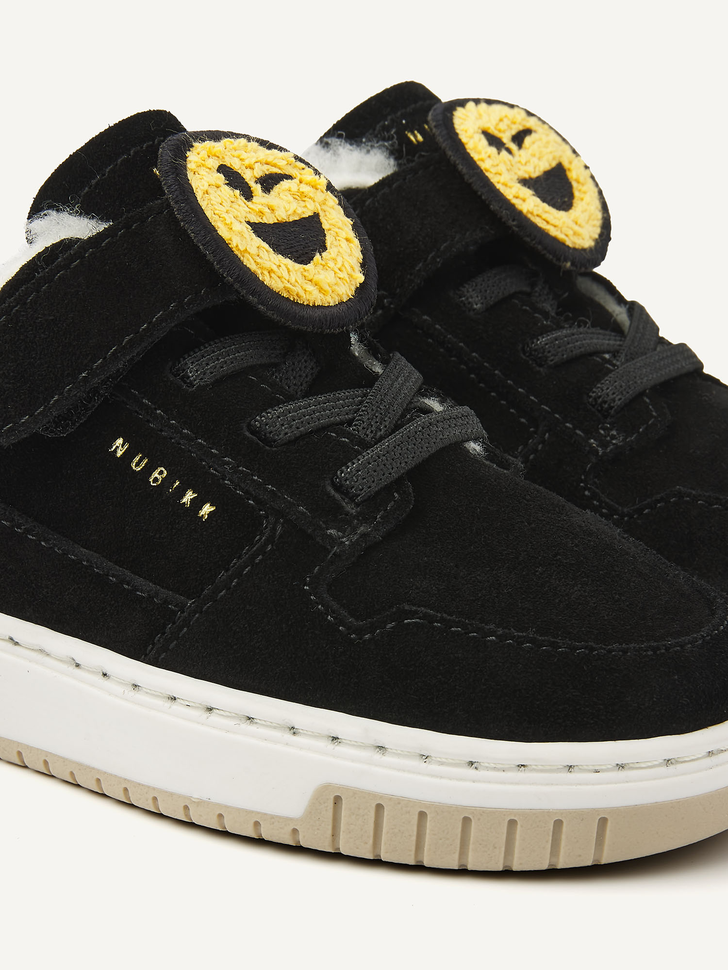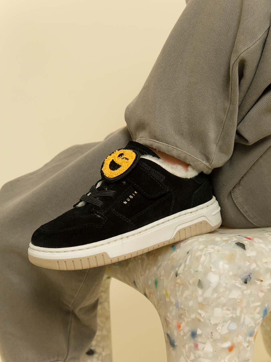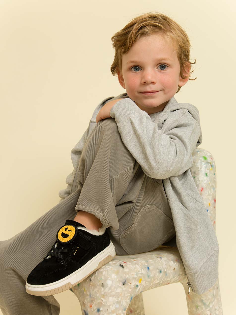 The NUBIKK Basket Teddy sneakers in black suede are perfect for active kids who love to play. Inspired by the iconic Basket Court collection for adults, these sneakers are now available for little feet. Made from premium black suede and finished with a warm faux fur lining for extra comfort. The smiley patch on the laces adds a playful touch. These kids’ sneakers feature a lightweight sole that provides all-day comfort. Sizes up to 29 come with both elastic and extra cotton laces, while larger sizes have only cotton laces.