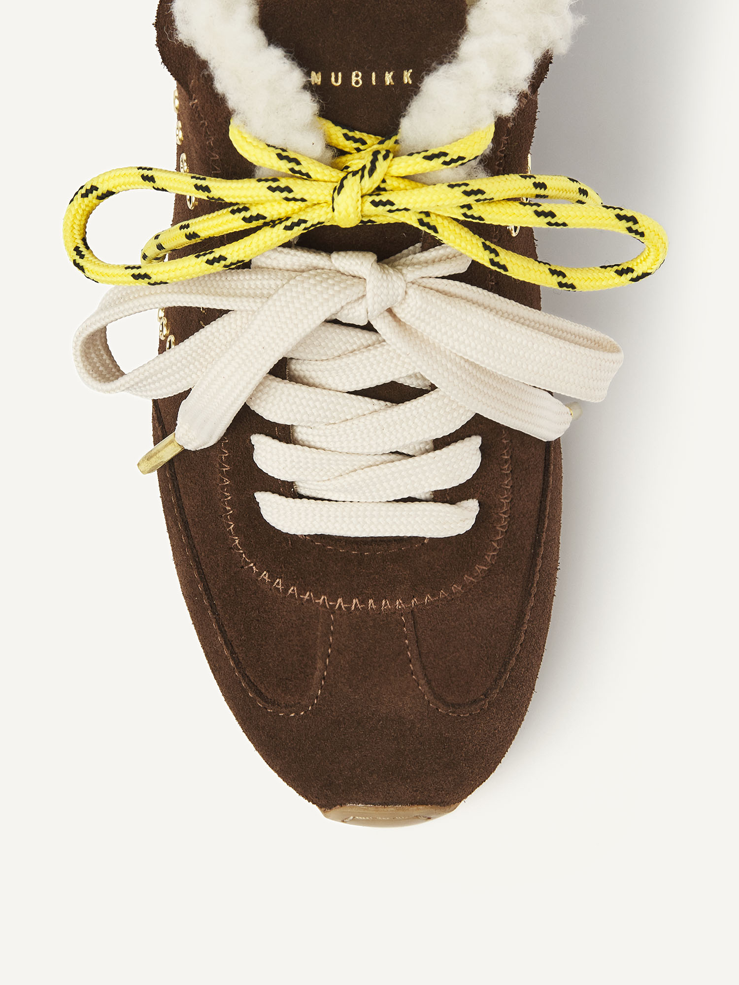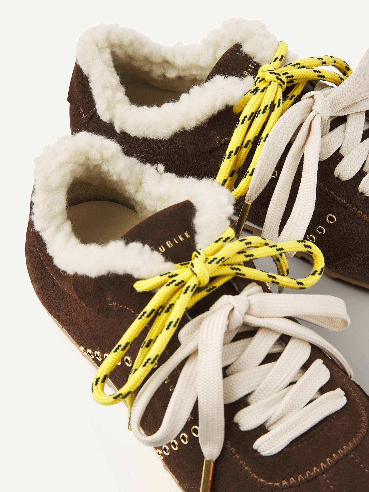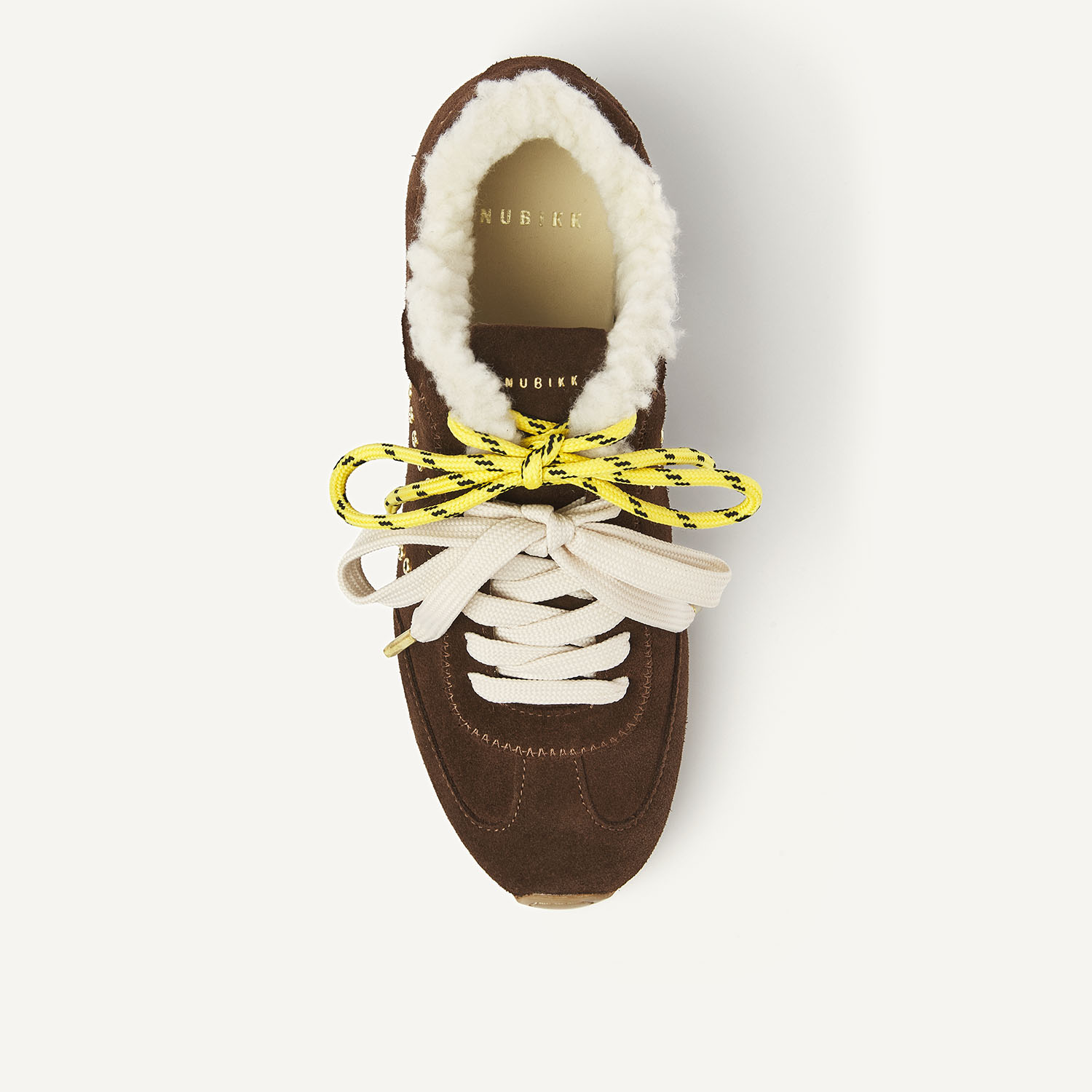 The Billy Lou in dark brown is a women’s sneaker made from premium suede, featuring stylish double laces and a soft faux fur lining. The shoe is finished with an extra comfortable, lightweight TPU sole for optimal wearing comfort.