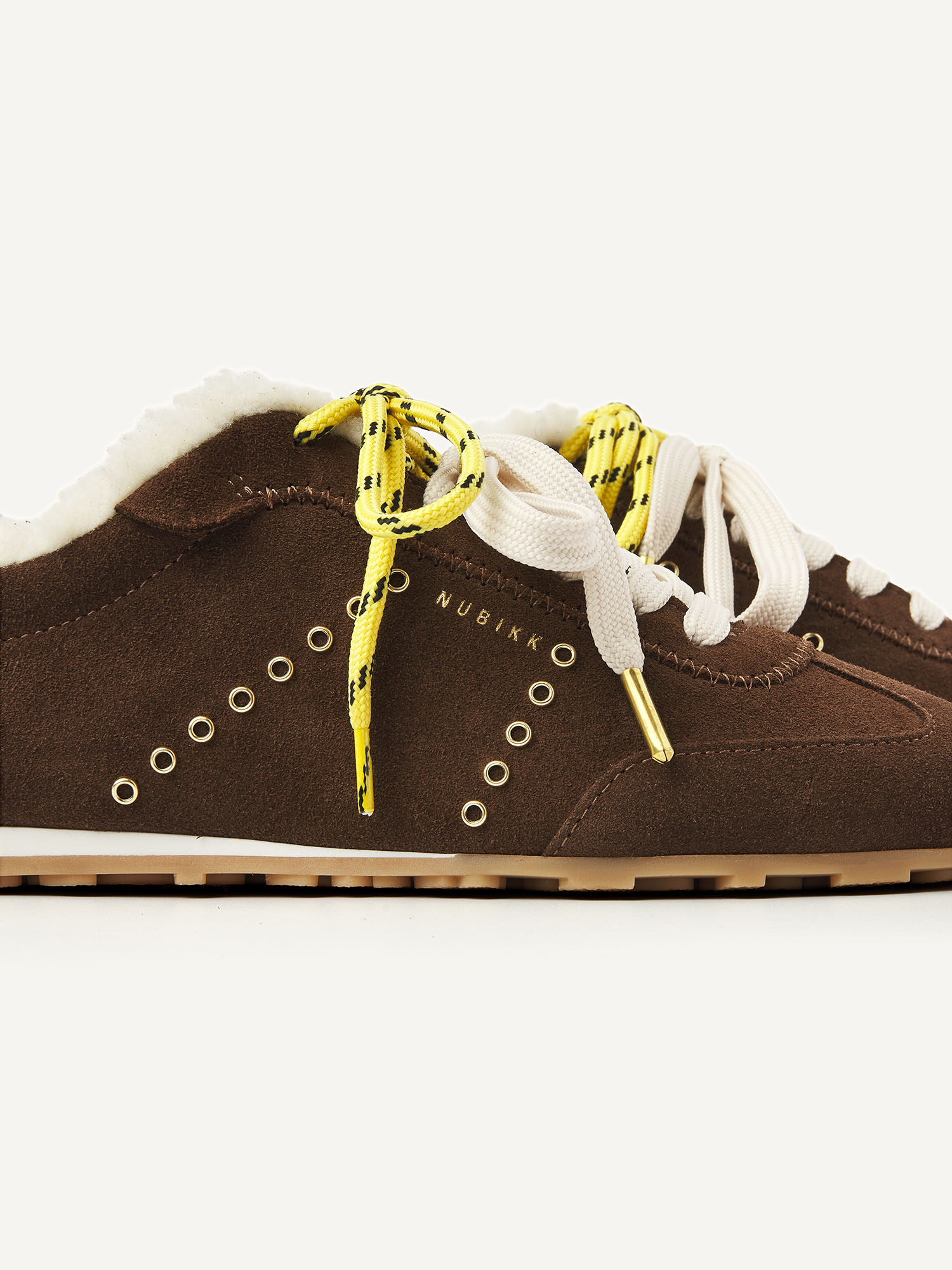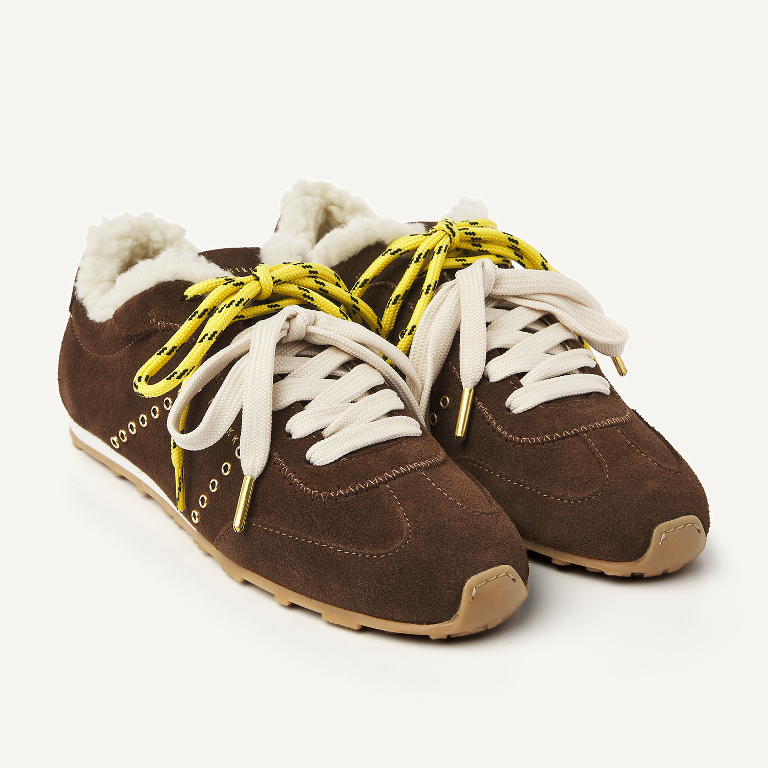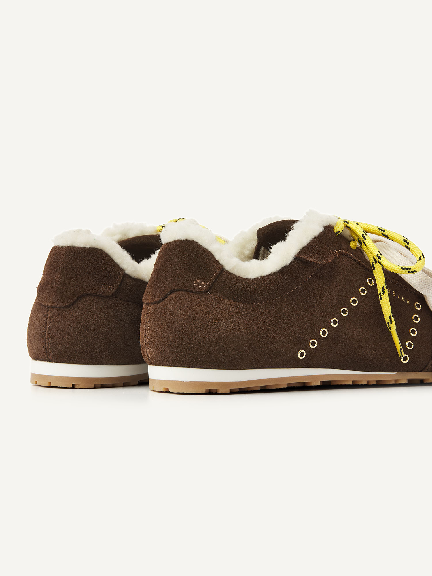 The Billy Lou in dark brown is a women’s sneaker made from premium suede, featuring stylish double laces and a soft faux fur lining. The shoe is finished with an extra comfortable, lightweight TPU sole for optimal wearing comfort.