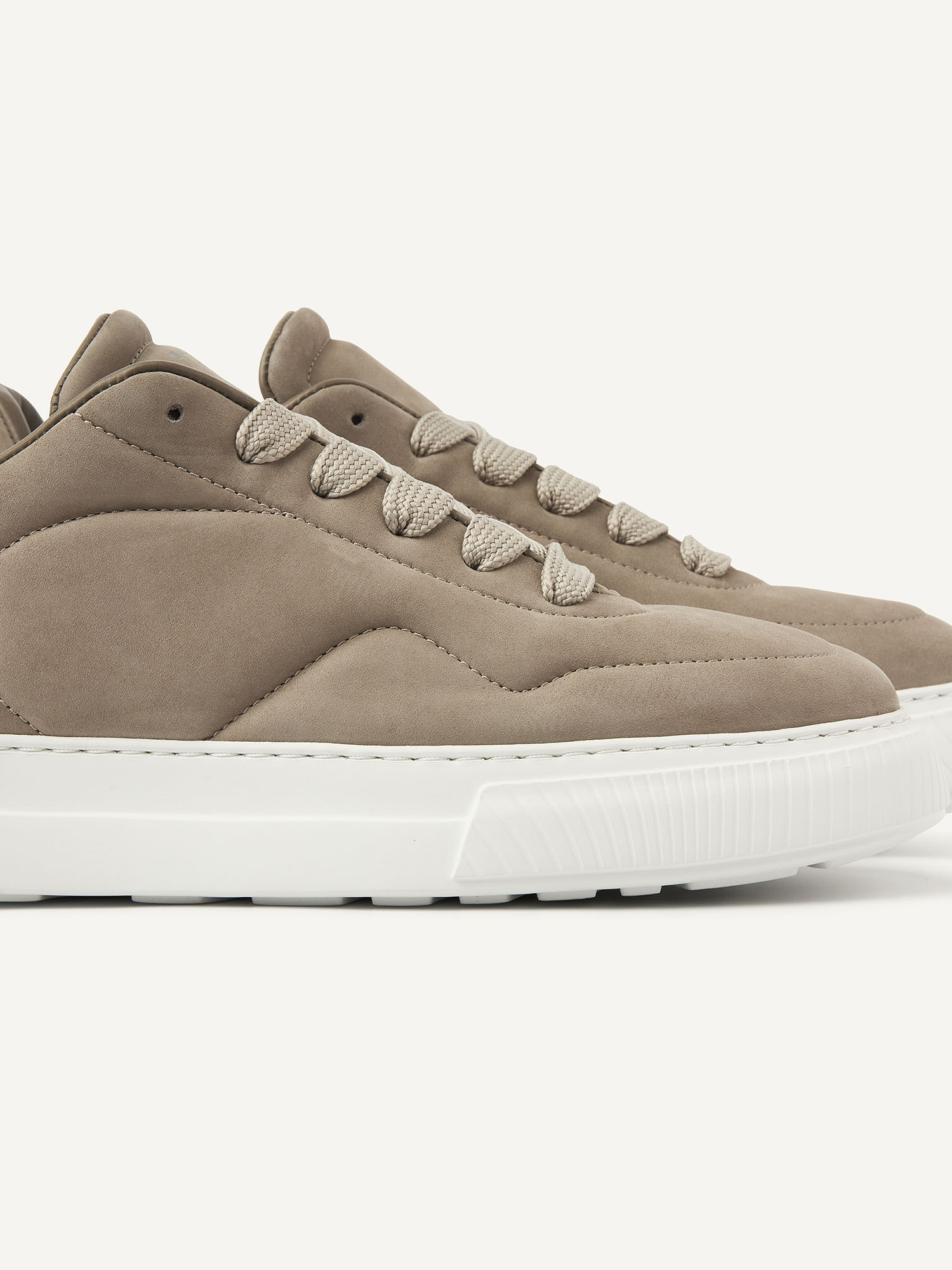 Discover the Caldera Rush in light grey nubuck. This chunky sneaker strikes a balance between sporty shapes and refined materials. The combination of a soft leather lining, thick cotton laces, and a lightweight EVA sole ensures long-lasting comfort. The removable insole makes the sneaker practical and wearable, day after day.