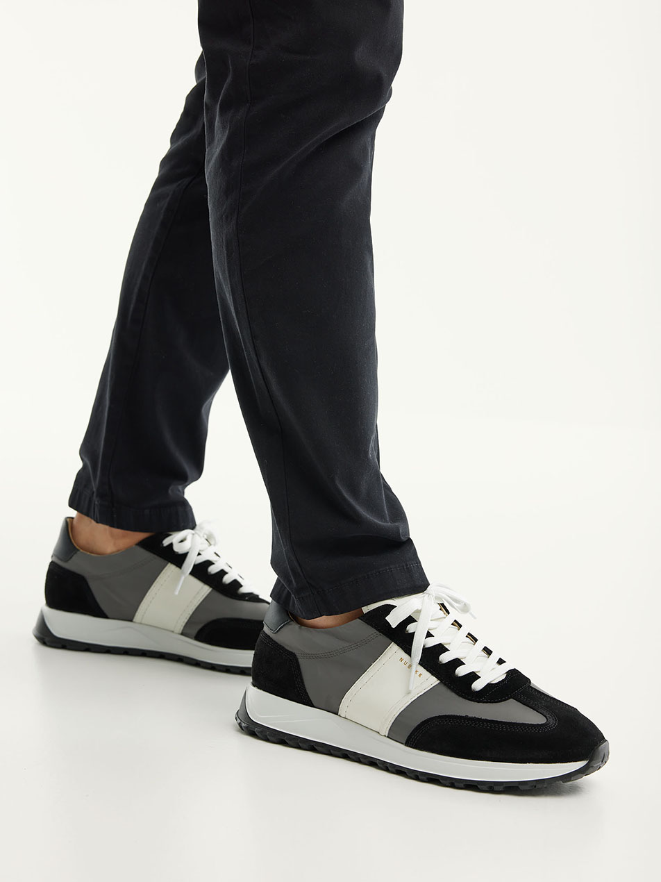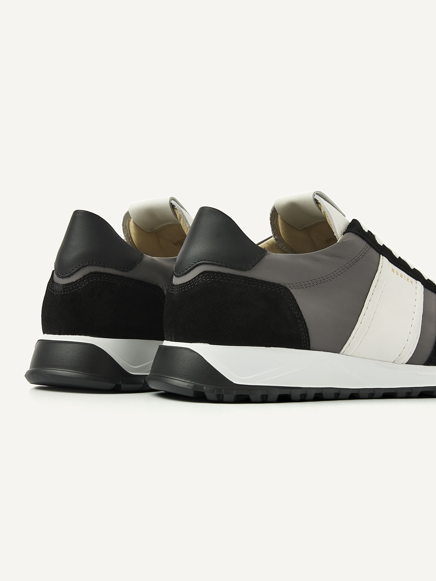 The black Glen Hendrix is the perfect blend of casual and dressed. Its minimalist design is enhanced by the deep black colour and clean lines, featuring a mix of suede and nylon. This dressed runner is fully leather-lined and fitted with a comfortable Ortholite® insole, combining style and comfort effortlessly.