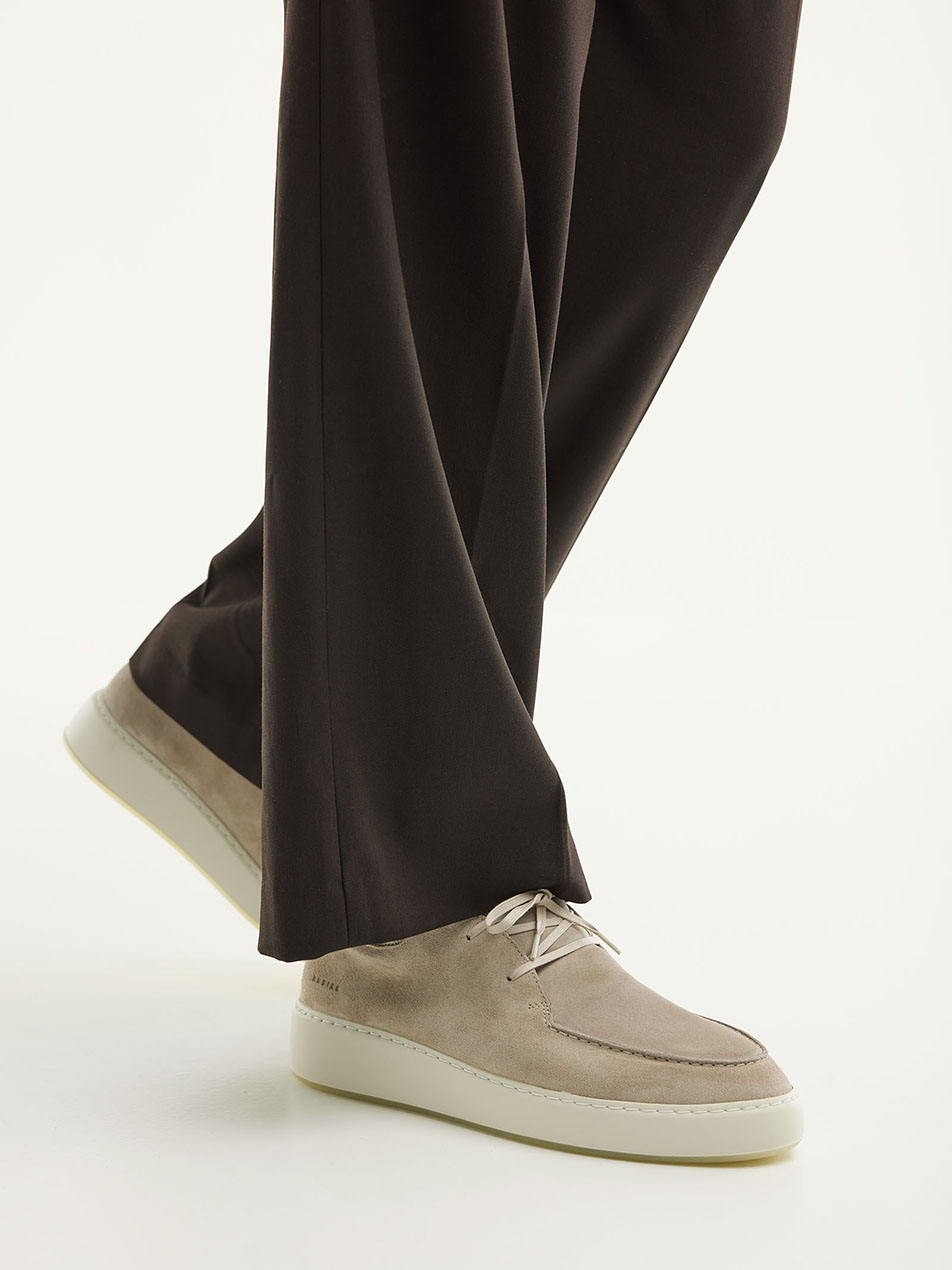 Introducing the Jiro Gio: a truly unique desert boot that exudes sophistication. Crafted from luxurious high-quality suede, it's a variation of the classic Jiro Suo. This mid-high desert boot is provided with a lightweight PU outsole and a padded back for ultimate comfort, ensuring you walk in style without compromising on ease. The mock stitch on the nose, padded back, and smooth leather lining enhances its elegance. Elevate your footwear collection with the Jiro Gio.