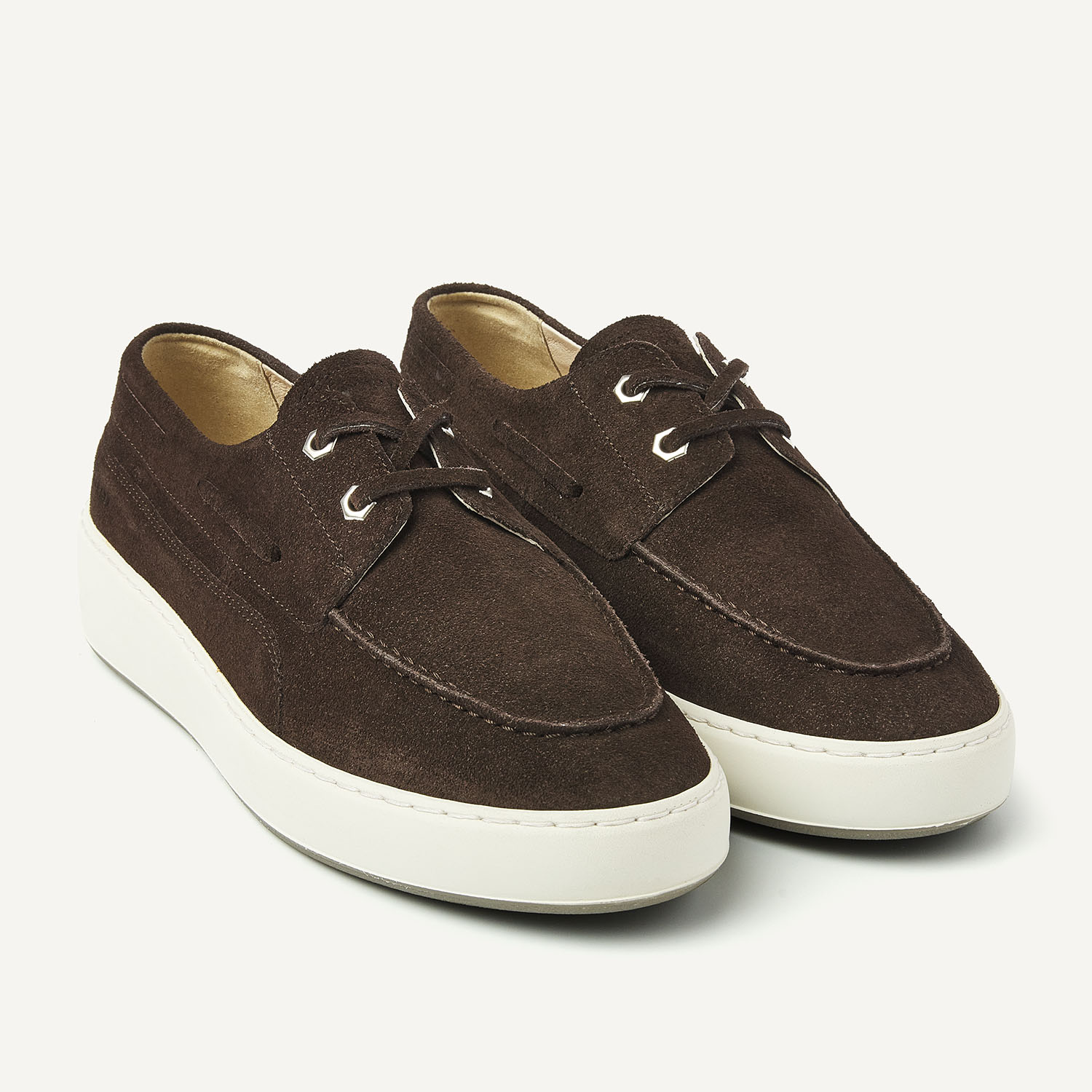 The Jiro Yacht in dark brown suede combines a rugged look with everyday comfort. The boat-inspired design with wraparound lacing meets the relaxed style of a loafer. The Jiro sole provides a sporty appearance and a lightweight feel. The burned olive outsole adds a modern finishing touch. Includes an extra square cotton lace.