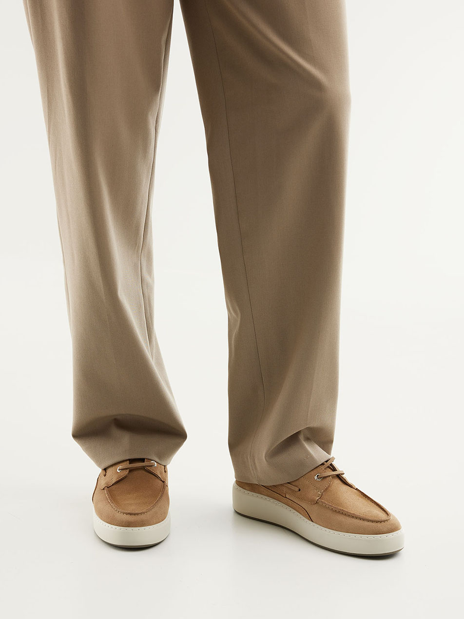 A modern boat shoe-inspired design as a continuation of the renowned Jiro loafer. Made from soft oak suede with a lace that wraps around for a subtle boat-inspired accent. The sporty Jiro sole provides a light and comfortable feel, featuring a burned olive outsole detail for a stylish touch. Comes with an extra square cotton lace in addition to the leather lace.