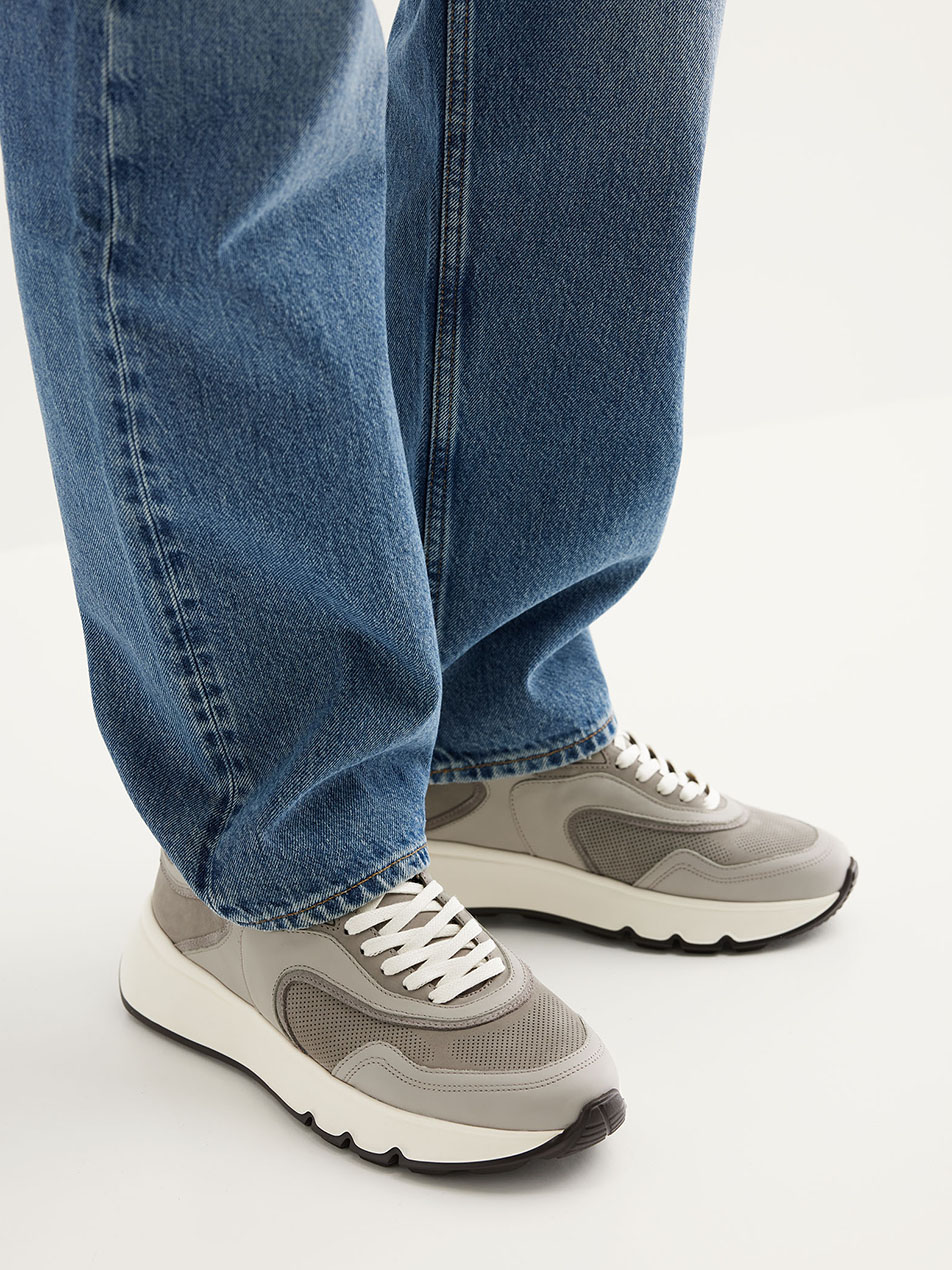 The Luca Noa is crafted from a combination of leather, suede, and mesh, creating a dynamic silhouette with depth. The layered construction and visible lines give the sneaker a modern, sporty look.