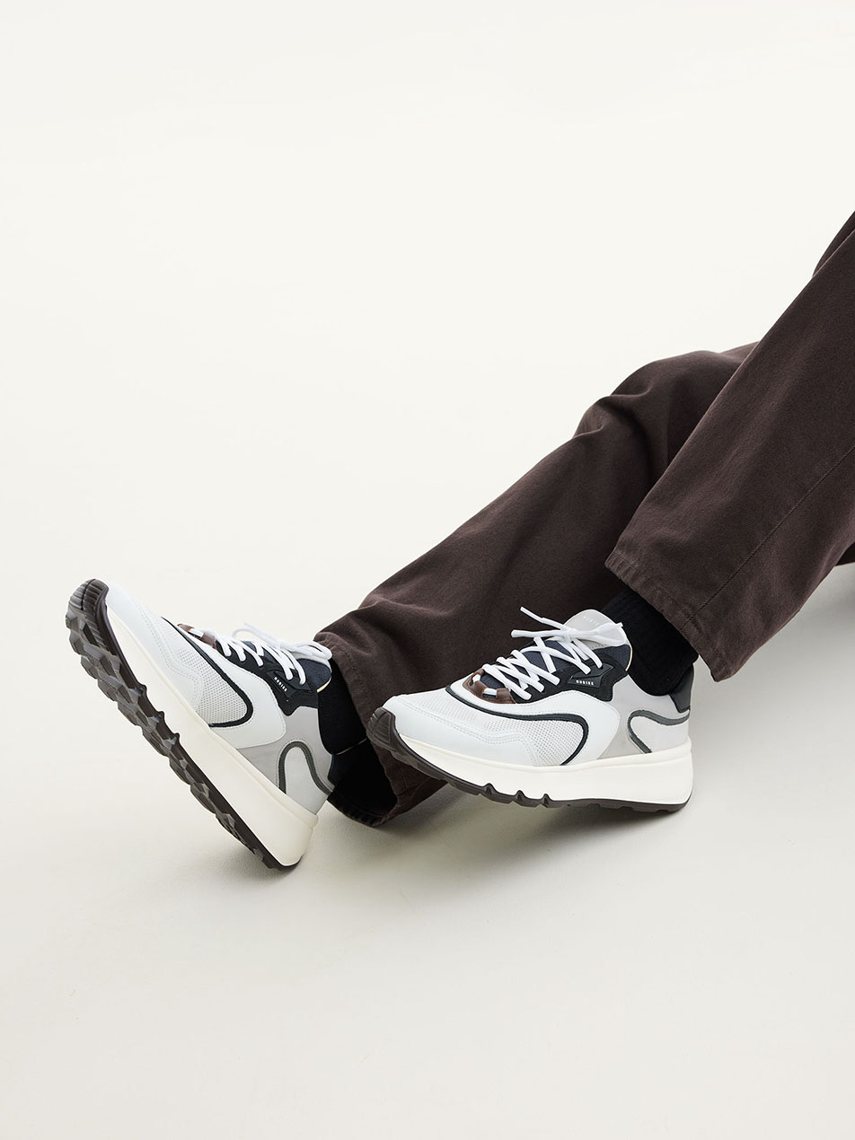 The Luca Noa is crafted from a combination of leather, suede, and mesh, creating a dynamic silhouette with depth. The layered construction and visible lines give the sneaker a modern, sporty look.