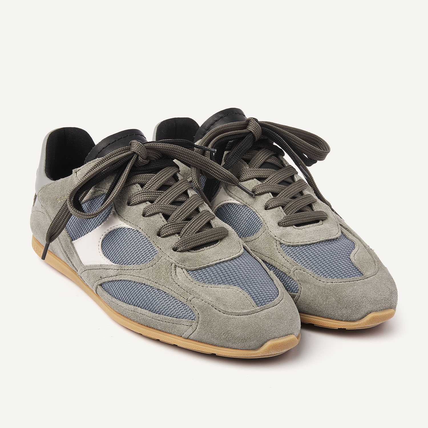 The Riley Morgan in grey is all about balance: sporty and clean at the same time. The mix of grey shades in leather, suede, and mesh creates a modern look that pairs easily with jeans or a tone-on-tone outfit. The double lace option and high-frequency logo on the side add an extra layer to the design. Ideal for those who love a minimalist sneaker with detail.