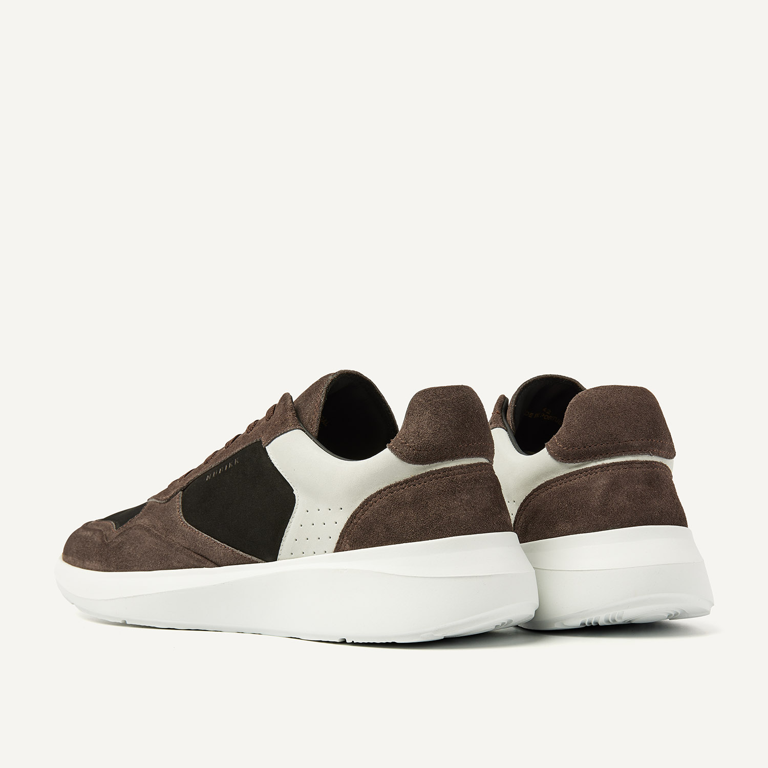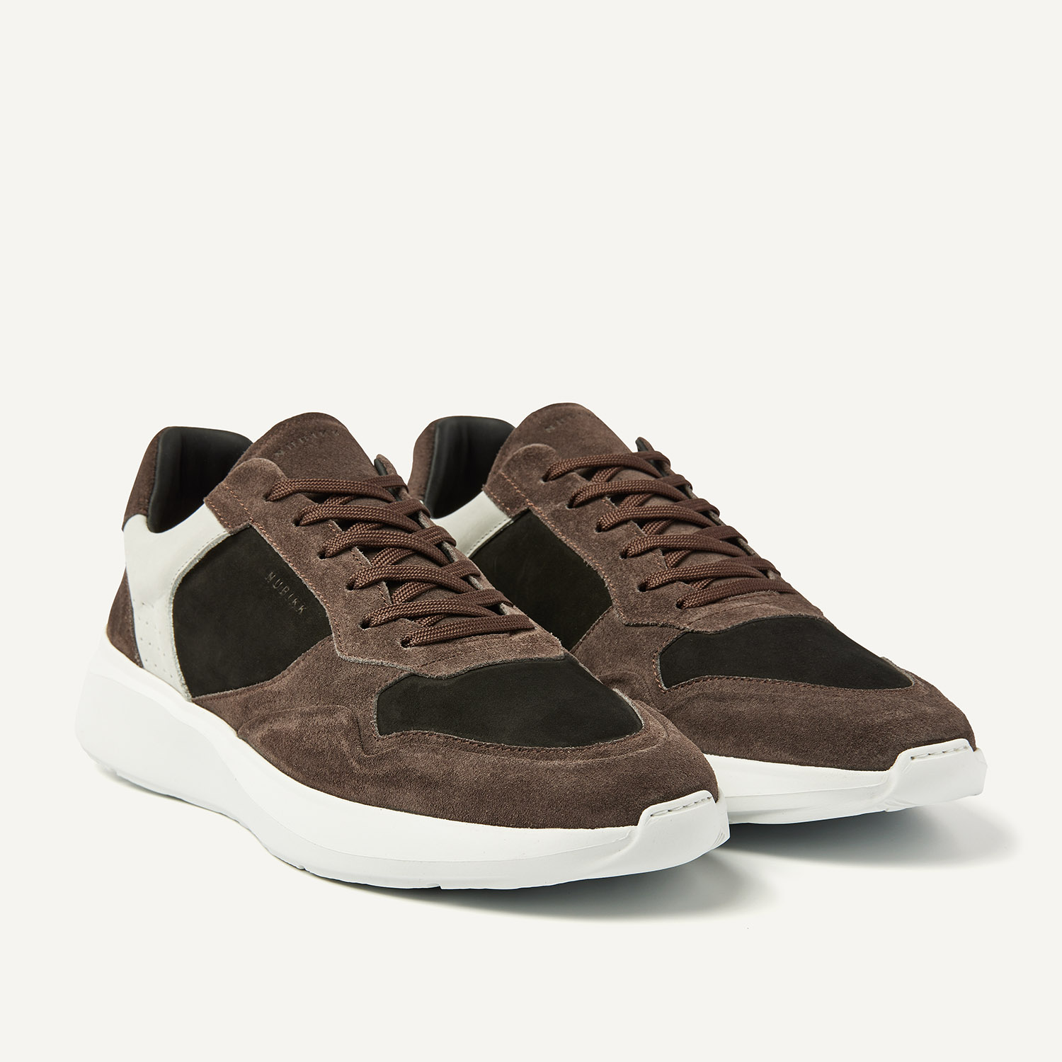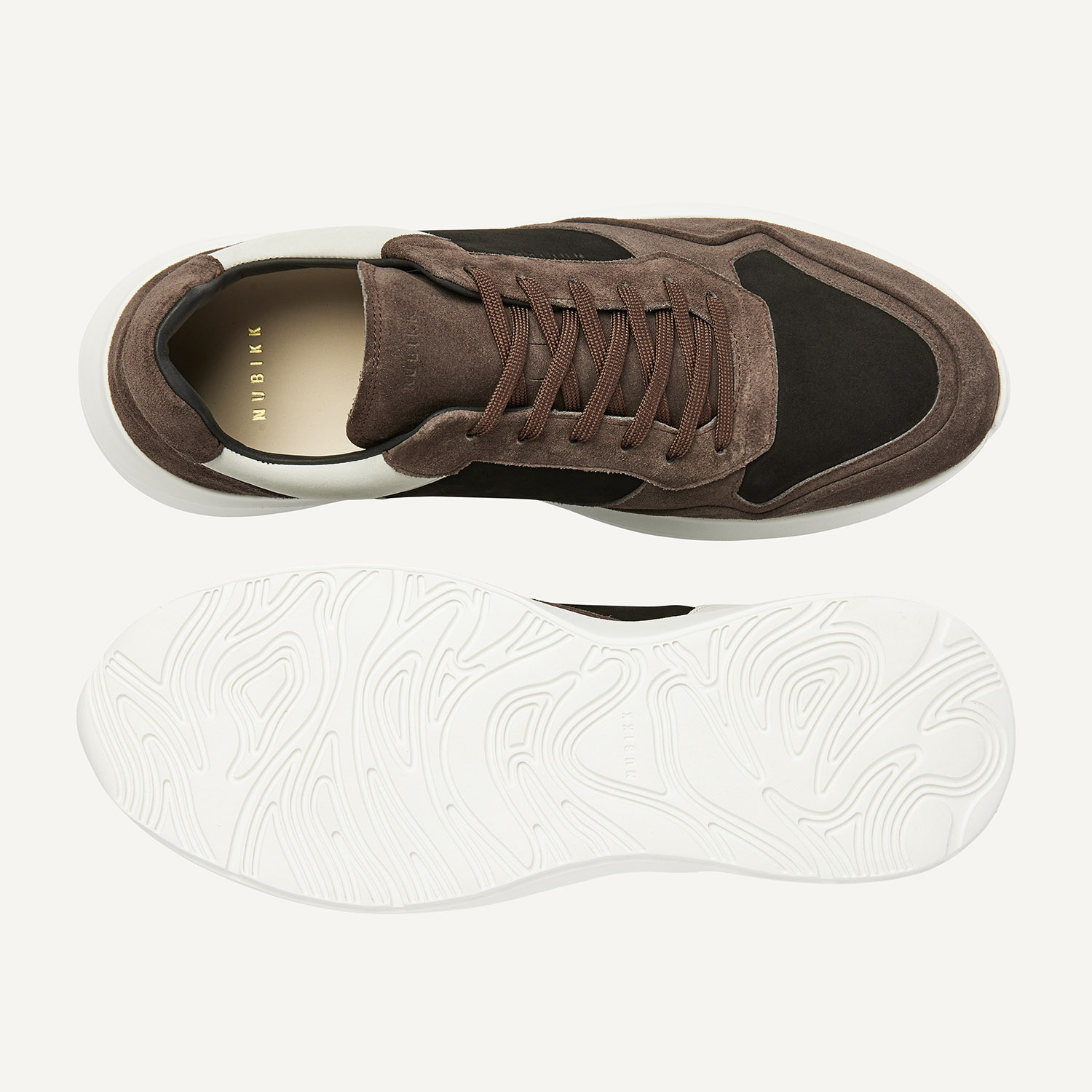 Discover the Rocky Road Wave in dark brown combi - a stylish blend of rich tones and sporty design. This unique colorway, with its runner-shaped silhouette, brings a touch of sophistication to any outfit. Crafted with care, it features a thinner sporty toe and a folded stitch on the nose. The supple suede, nubuck, and lightweight EVA sole ensure high comfort, making this sneaker a refined choice for your daily endeavors.