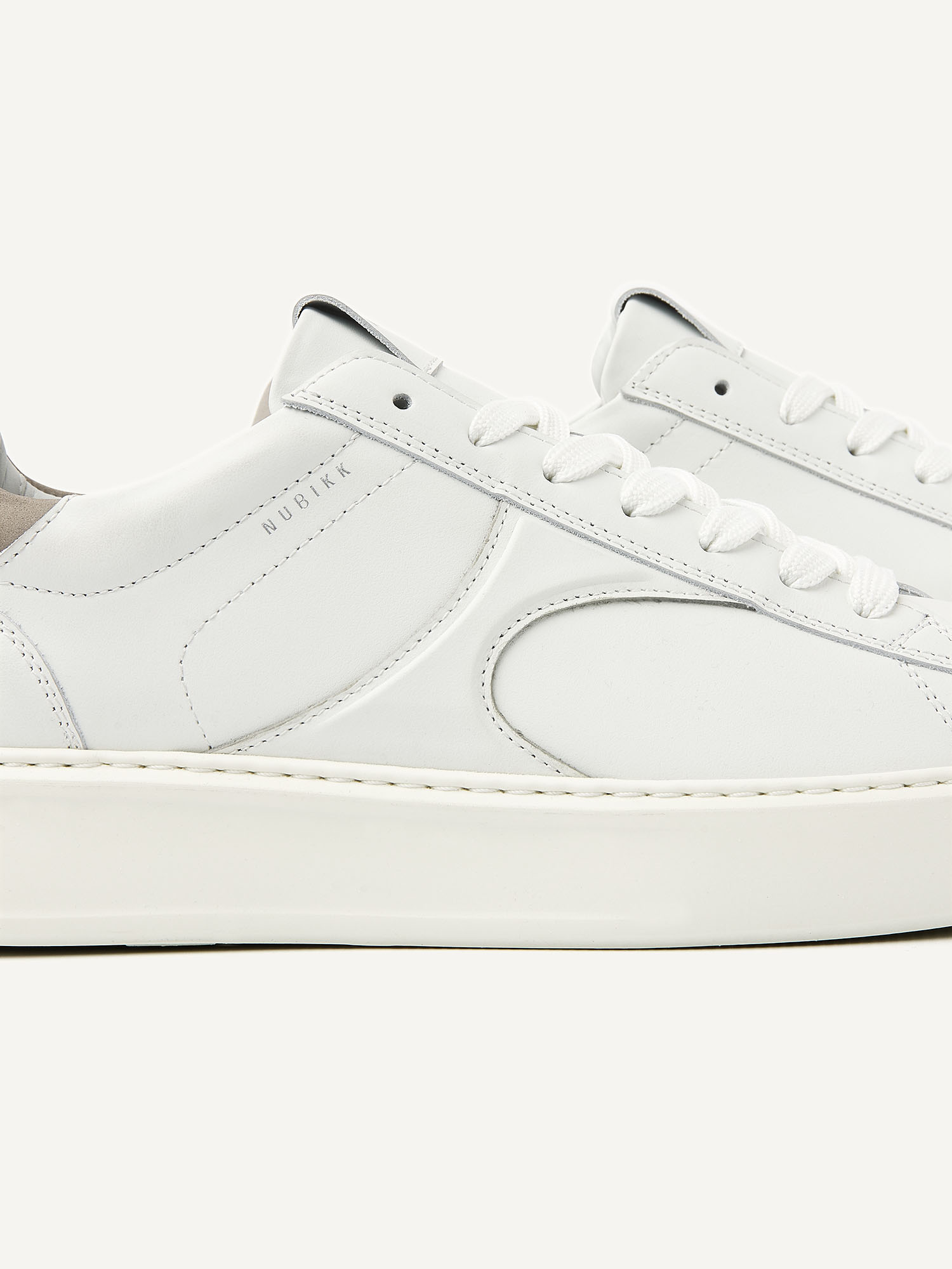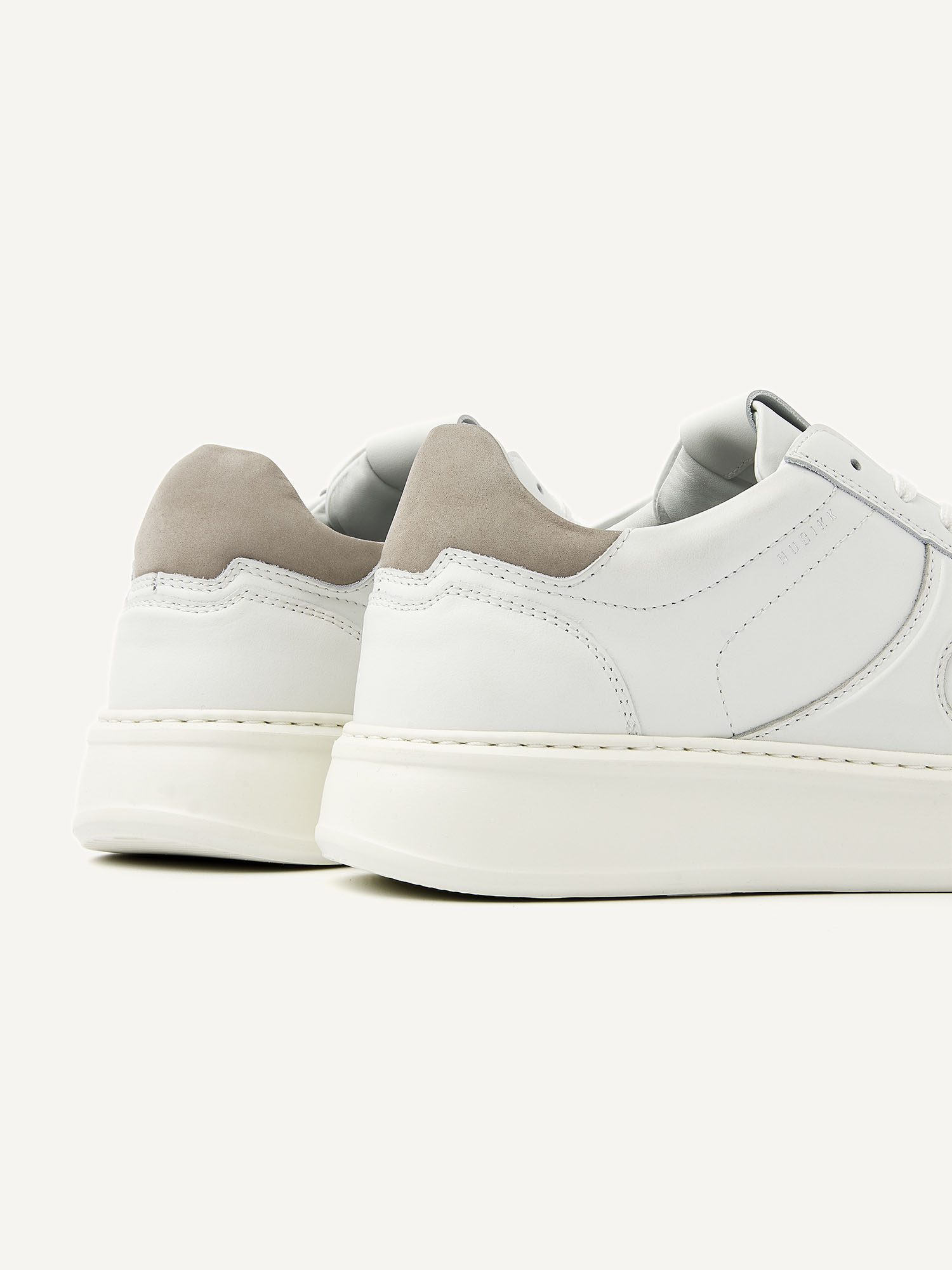 The Vick Cosmo in white combi offers a fresh, clean look with a twist. The upper is made of white leather, combined with a nubuck detail on the heel in a soft beige hue. The silicone K accents on the side add depth to the shoe, while the Ortholite sole and leather lining provide high-level comfort.