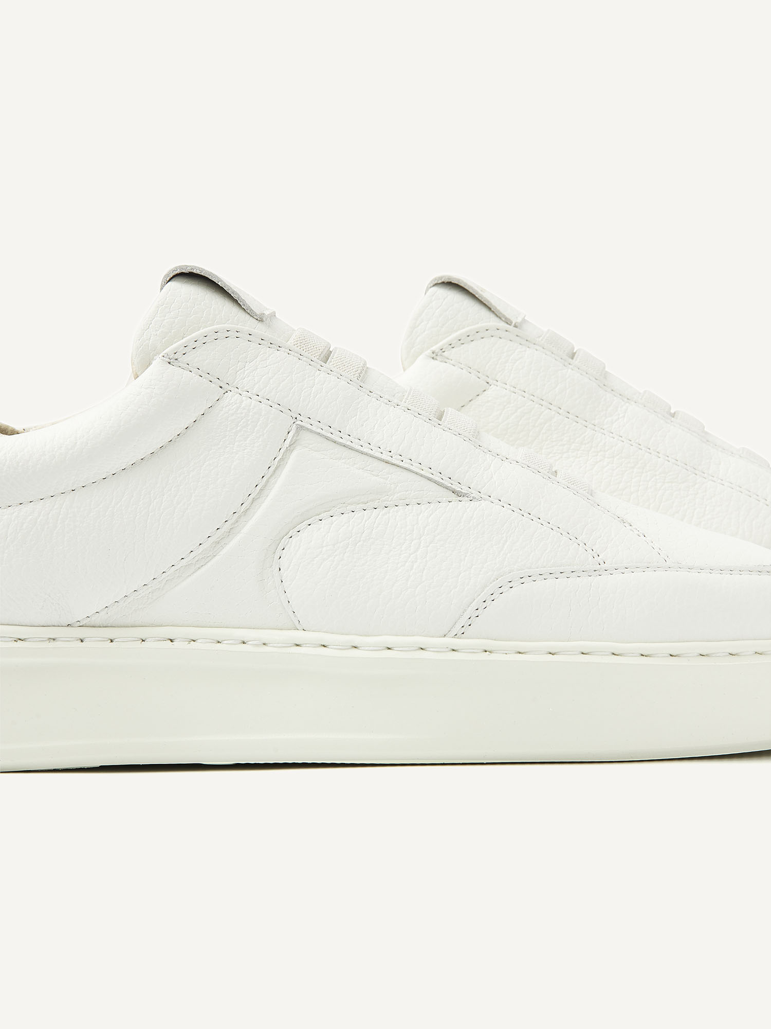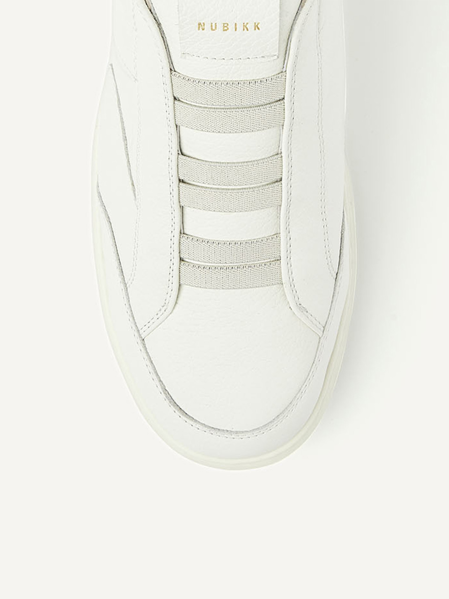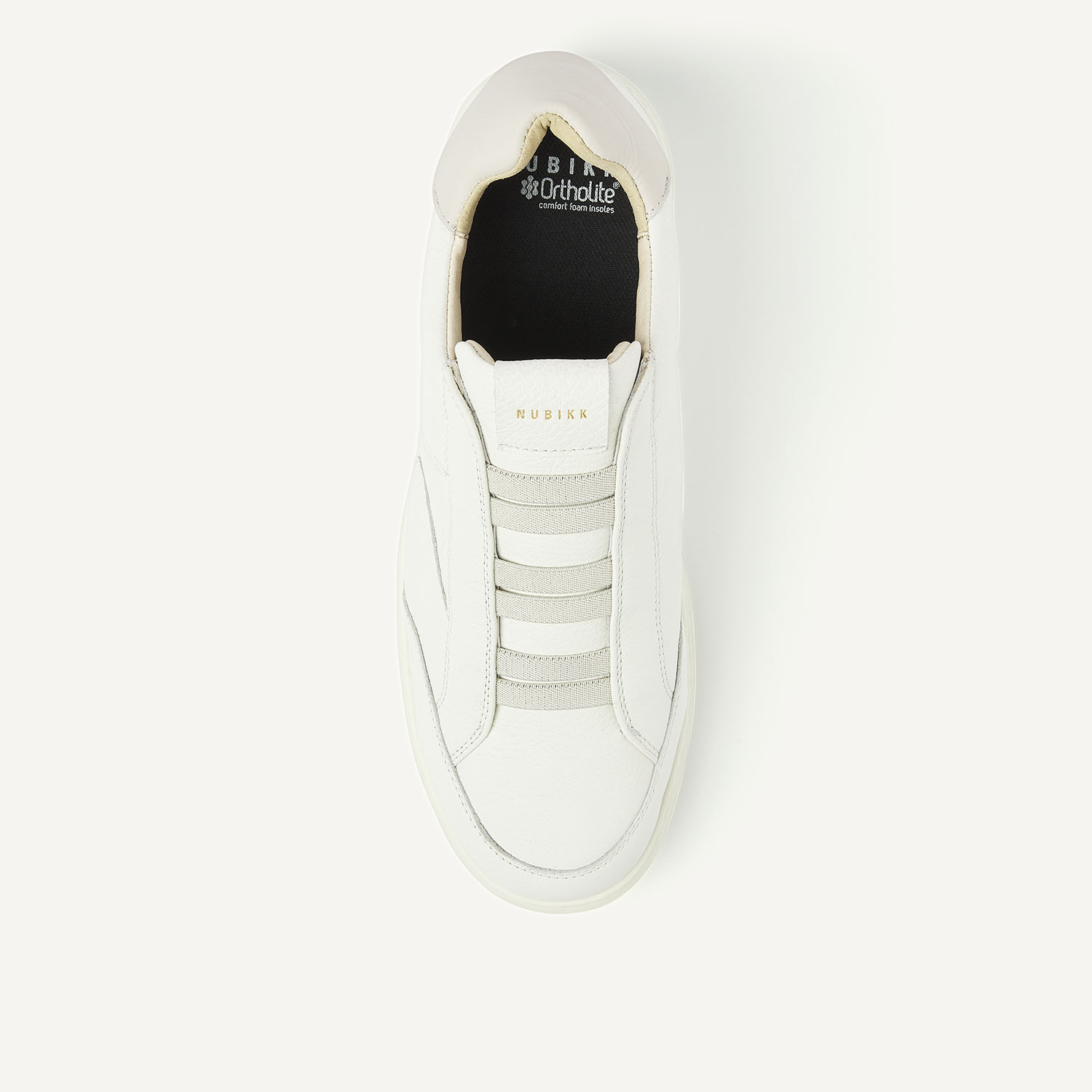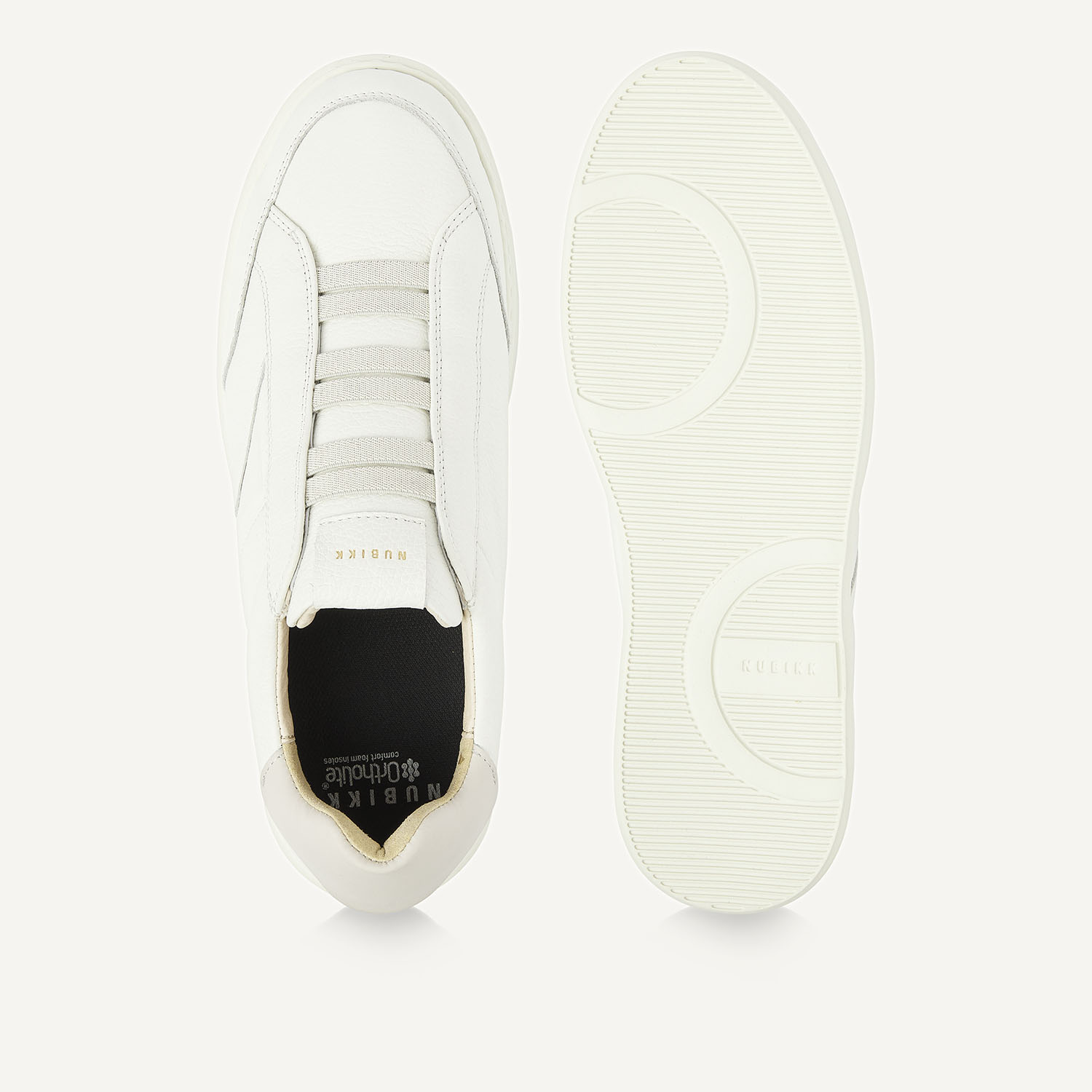 The Vick Ease features a clean and modern design with the same lines as the Vick Cosmo, but with an elastic closure. This allows you to slip the sneaker on easily without lacing. The premium tumbled leather in white provides a fresh, timeless look. The off-white sole creates a soft transition and offers lightweight, comfortable support with every step.