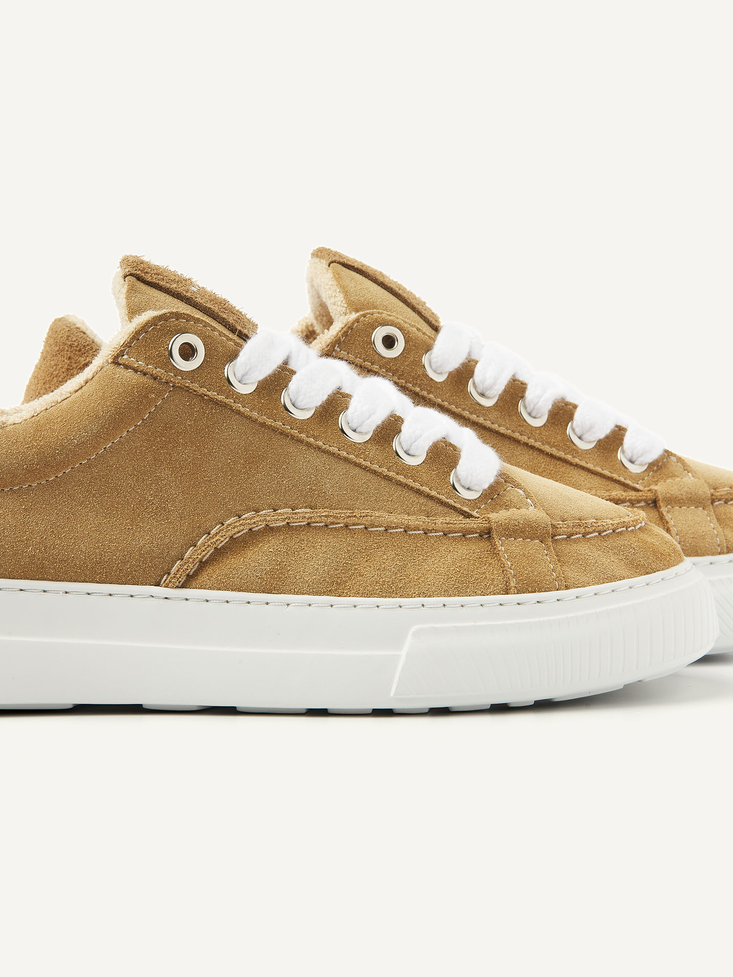 Der Caldera Tora aus Eichenwildleder kombiniert einen warmen, natürlichen Farbton mit einer frischen weißen Sohle für einen modernen Look. Das weiche Wildleder und die leichte EVA-Sohle sorgen bei jedem Schritt für Komfort, während das Frotteefutter zusätzliche Weichheit bietet. Dieser Sneaker ist ausschließlich online über unseren Webshop erhältlich.