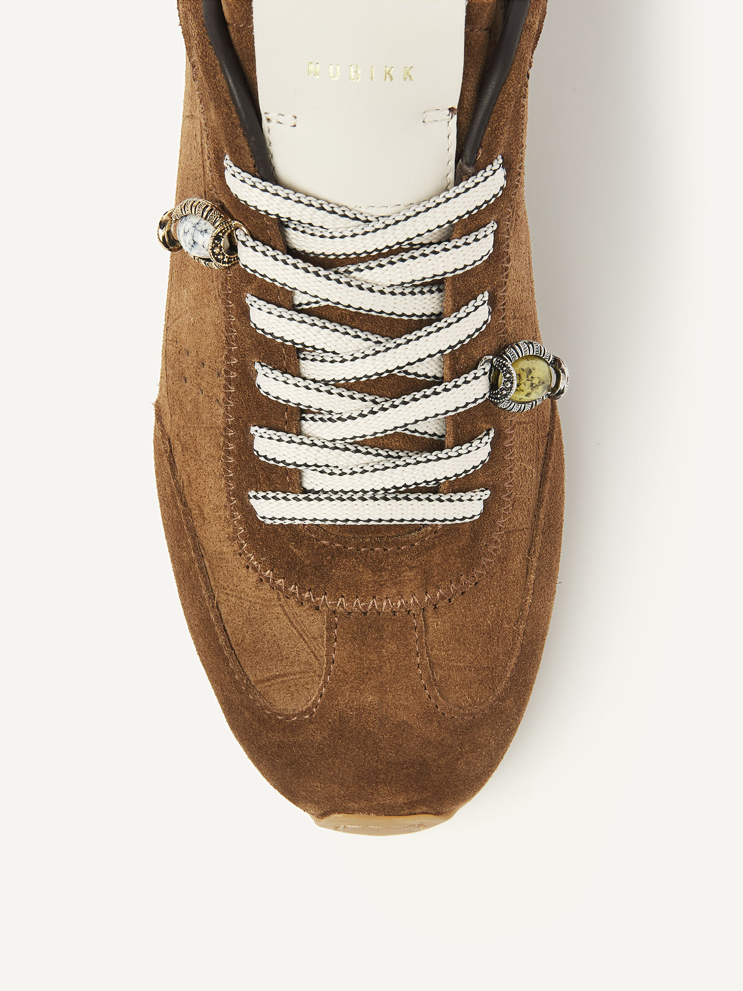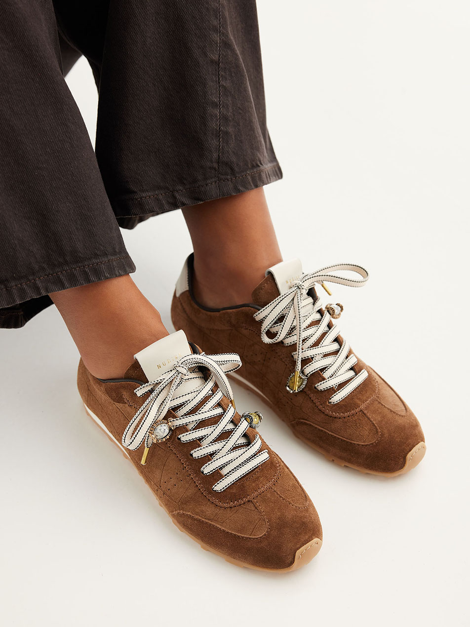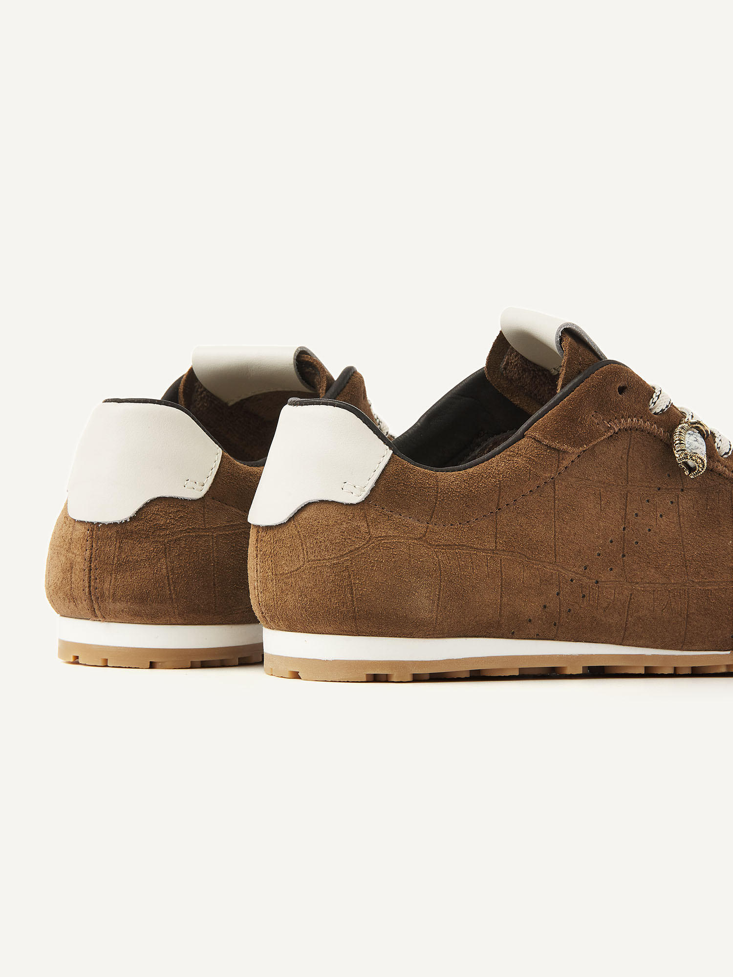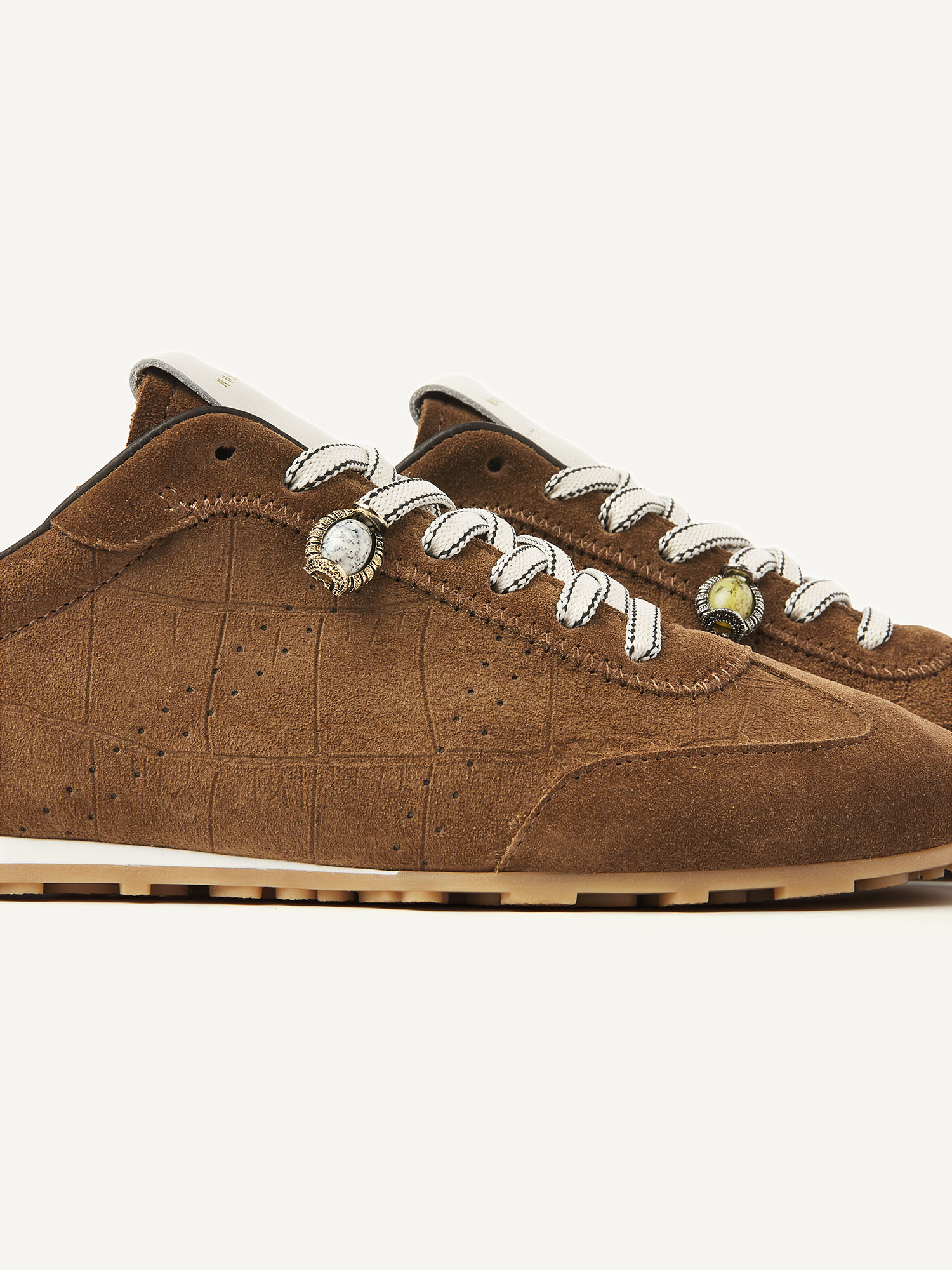 Der Billy Lou in braunem Croco-Suède vereint klassische Handwerkskunst mit modernem Twist. Das weiche Wildleder ist mit einer dezenten Croco-Struktur versehen, die Tiefe und Textur verleiht. Der Schnürsenkel mit feiner Linie und abnehmbaren Anhängern verleiht dem Schuh eine verspielte zusätzliche Note. Der warme Braunton macht diesen Sneaker zu einem vielseitigen Modell für jede Jahreszeit.