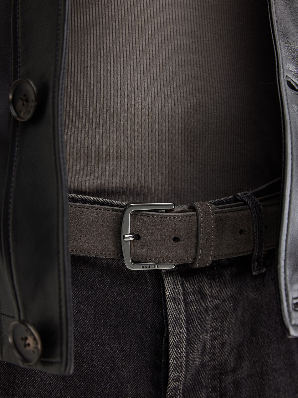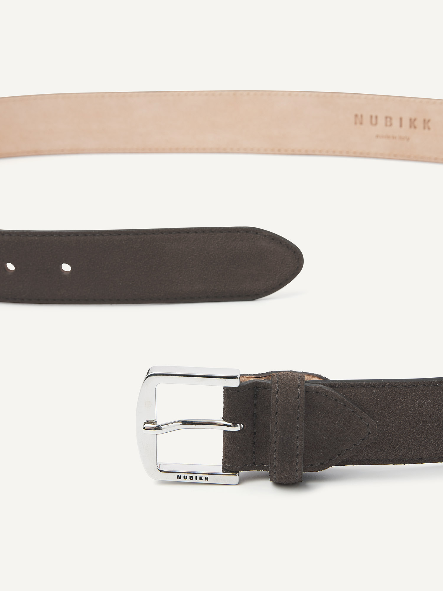 Der James Belt aus dunkelgrauem Veloursleder ist ein zeitloser Gürtel mit einer weichen, luxuriösen Ausstrahlung. Die silberfarbene Schnalle verleiht ihm einen modernen Look, der zu jedem Outfit passt. Gefertigt aus geschmeidigem Veloursleder und sorgfältig verarbeitet für eine angenehme Passform. Trage ihn zu Jeans oder Stoffhosen für einen eleganten, aber lässigen Stil.