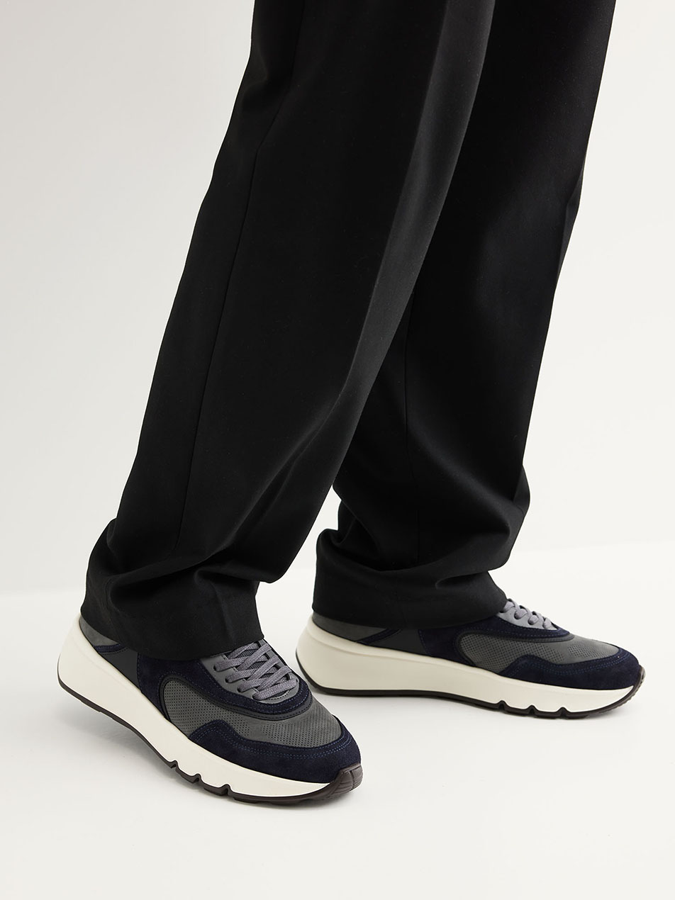 Du suchst etwas mit mehr Charakter? Der Luca Noa in Schwarz mit Blau kombiniert sportliche Energie mit einem stilvollen Silhouettendesign. Diese Variante besteht aus Veloursleder, Nubuk, Leder und Mesh – das blaue Detail sorgt für einen auffälligen Akzent. Die leichte EVA-Sohle und die elastische Zunge ermöglichen ein einfaches Hineinschlüpfen – dein neuer Alltagsfavorit.