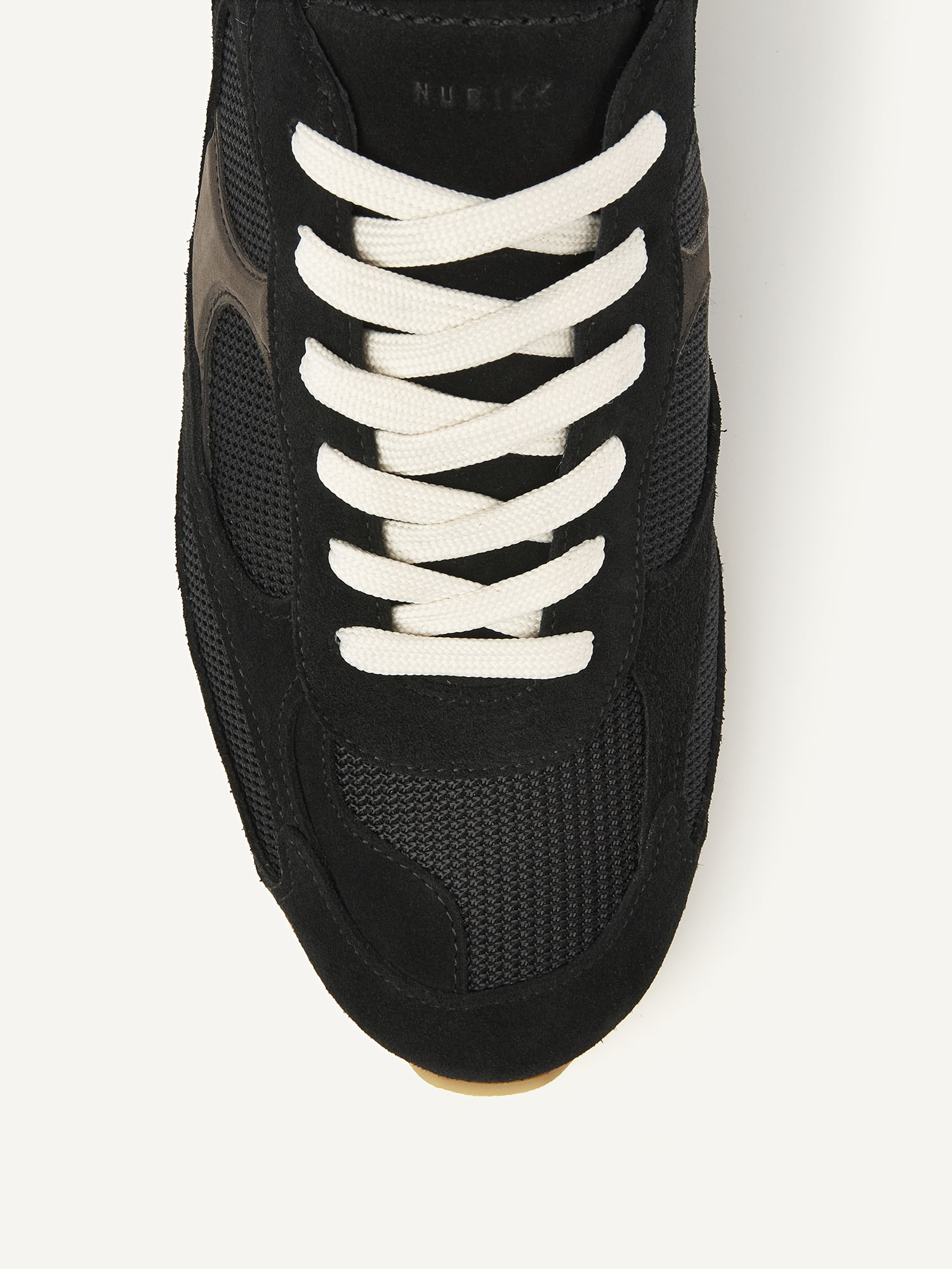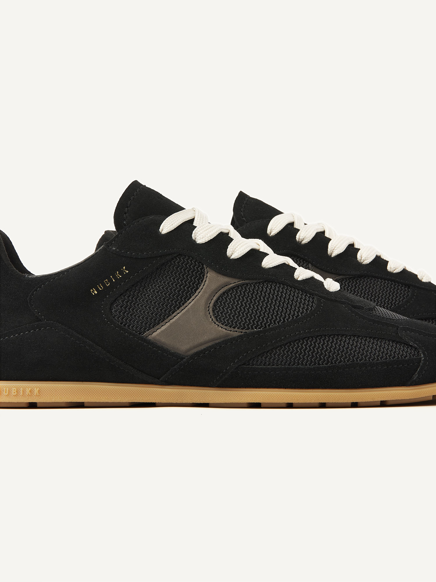 Der Riley Morgan in Schwarz bringt Sportlichkeit in einen klassischen Retro Schuh. Die Kombination aus schwarzem und weißem Leder mit Mesh verleiht dem Sneaker einen geschichteten Look mit Charakter. Dank der Gummisohle und der herausnehmbaren Innensohle bietet der Schuh langanhaltenden Komfort. Die doppelten Schnürsenkel im Schuh sind optional. Die schwarze Farbe mit hellen Kontrasten macht dieses Modell leicht kombinierbar mit jedem Casual- oder Smart-Casual-Outfit.