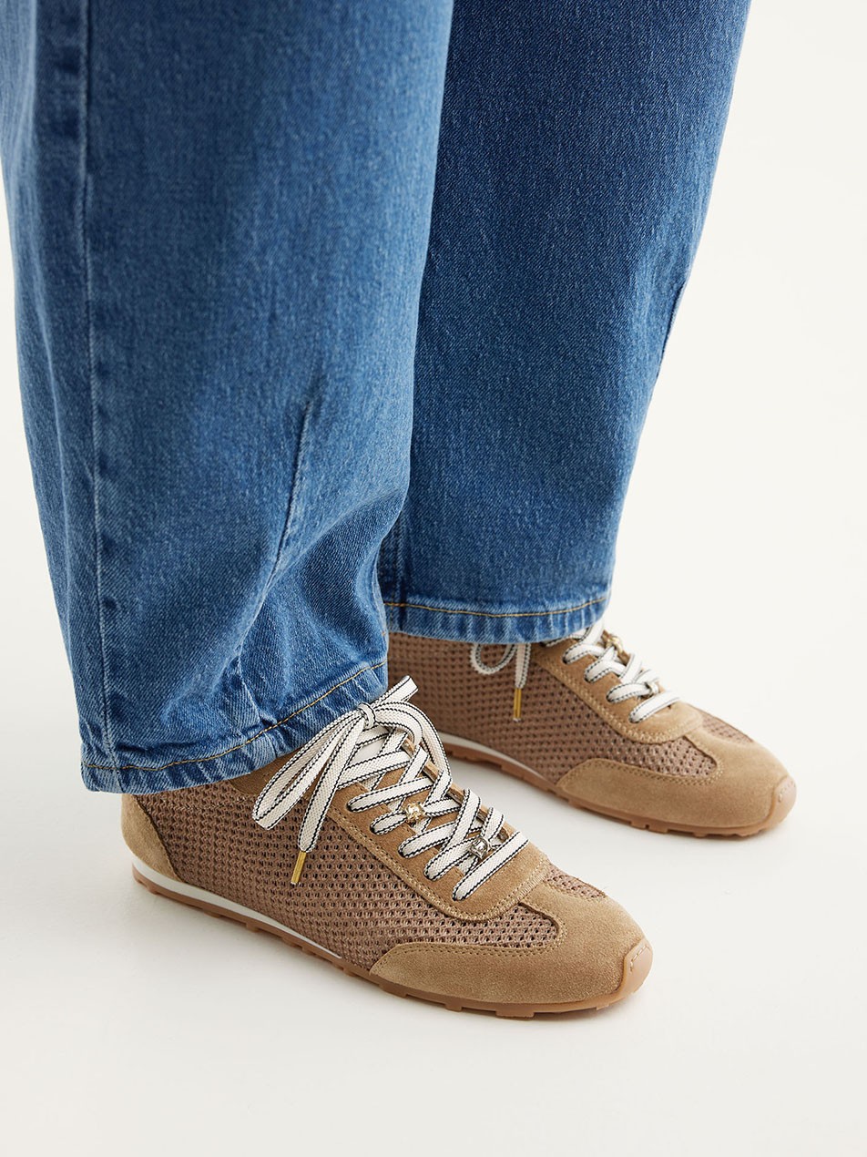 Las Billy Lou combinan piel y ante de alta calidad e incorporan elegantes cordones de senderismo y nylon con extremos de cordones dorados. La zapatilla cuenta con una cómoda suela de TPU, forro de rizo y plantilla extraíble para mayor comodidad.