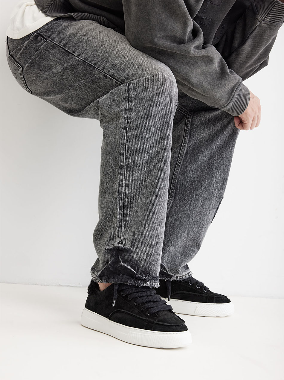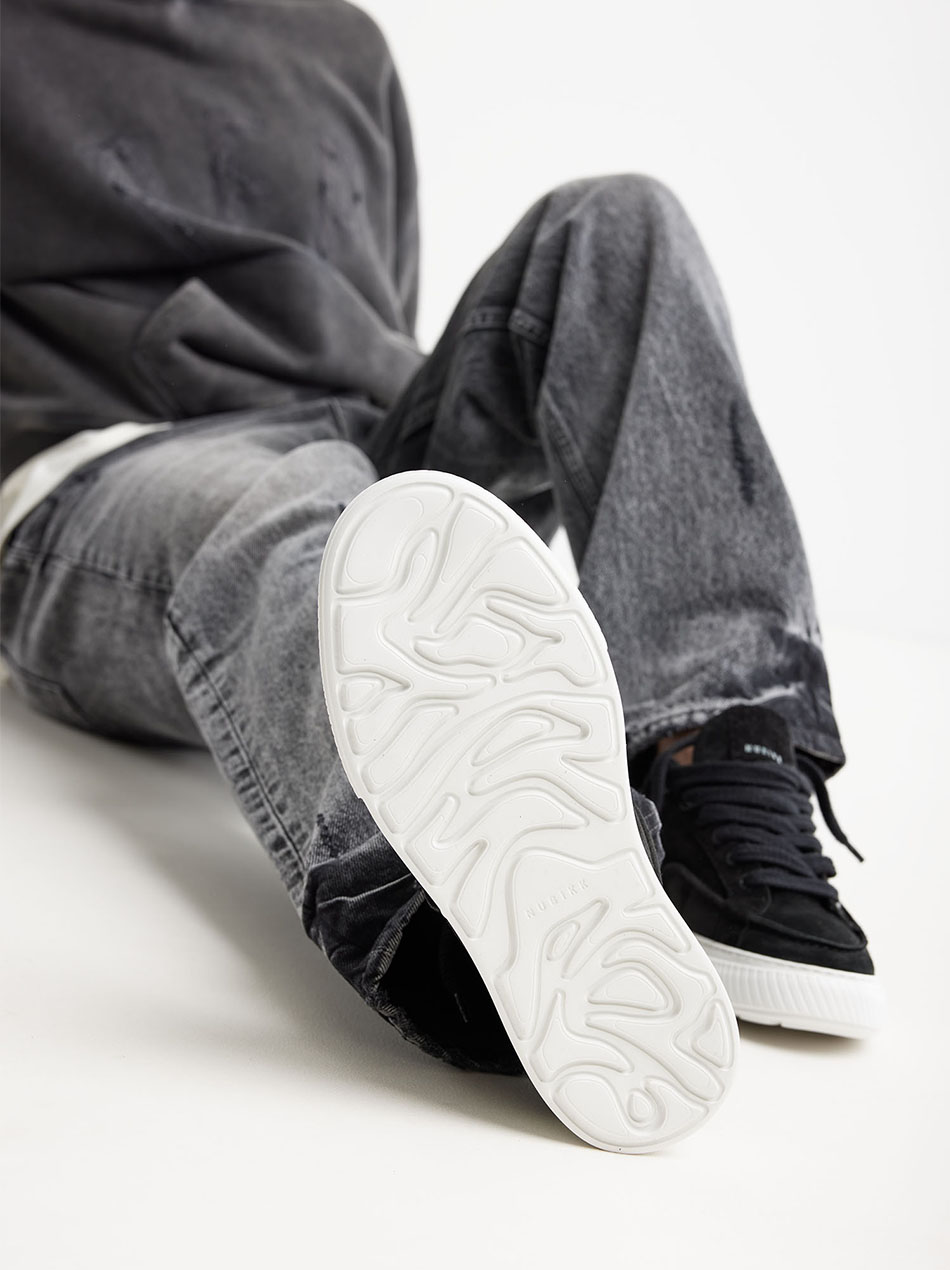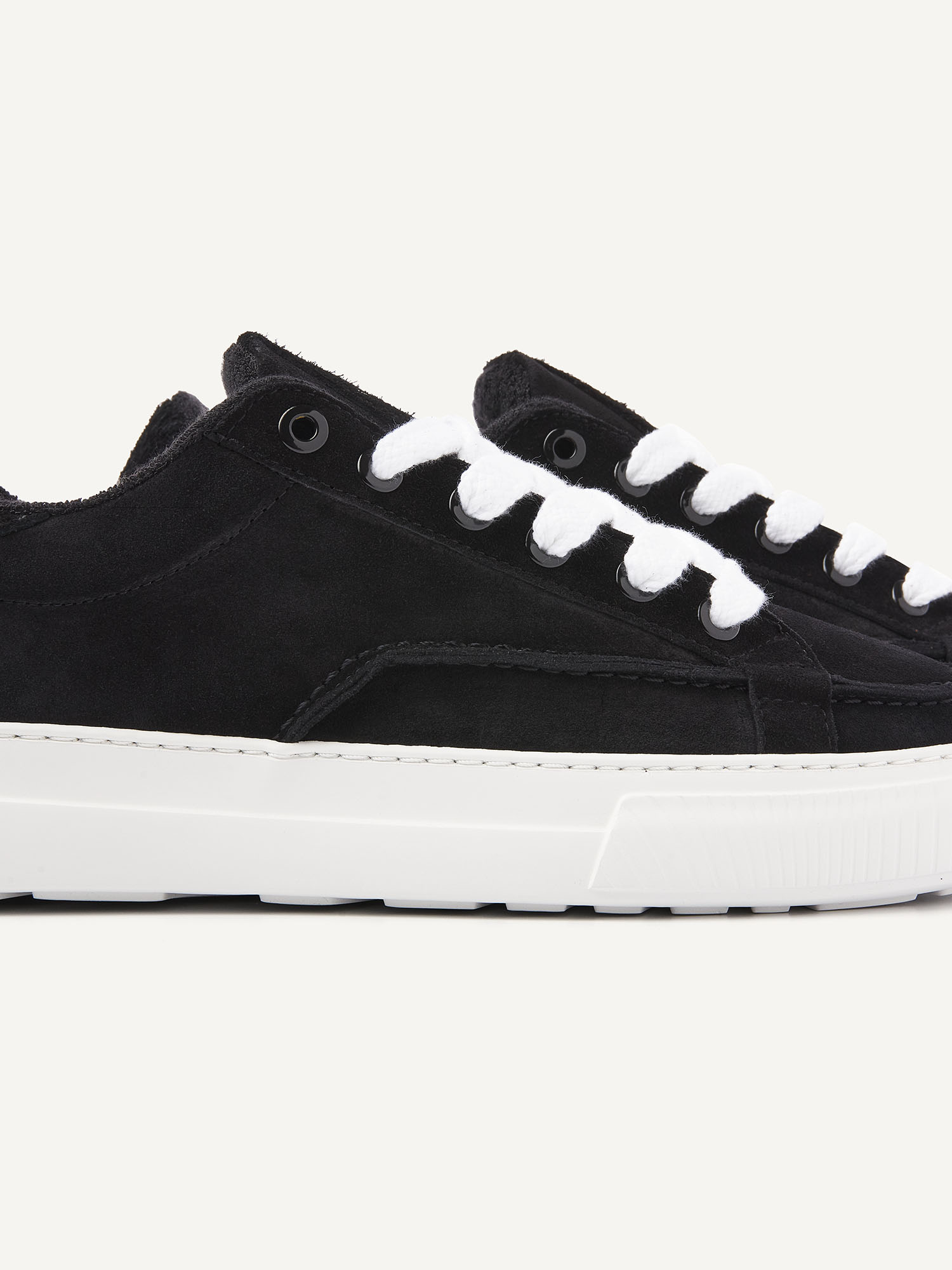 Presentamos las Caldera Tora en ante negro: una zapatilla inspirada en el skate con una apariencia urbana y robusta. Esta zapatilla baja para hombre cuenta con una costura simulada precisa en la punta, ojales negros a juego y detalles de ante negro resistente. Hechas a mano con ante negro de alta calidad y mejoradas con un forro de toalla súper suave y cómodo. Las zapatillas Caldera Tora para hombre garantizan un máximo confort con su suela ligera. Las Caldera Tora vienen con lacets blancos adicionales.