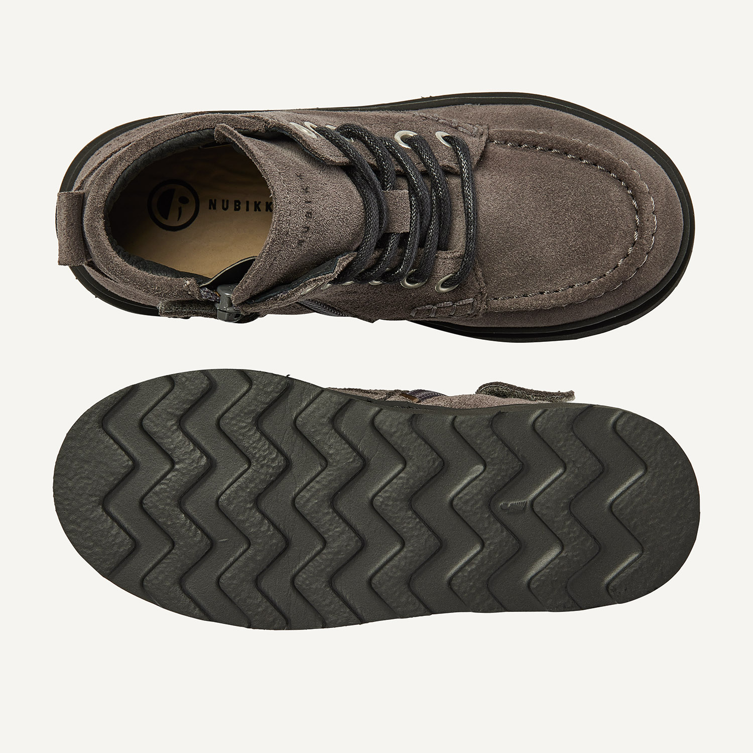 Conozca las botines Jonah Polar JR de NUBIKK en gris oscuro, el calzado perfecto para los pequeños aventureros con grandes sueños. Fabricadas en suave ante gris oscuro, estas botines ofrecen la mezcla perfecta de estilo y practicidad. Las Jonah Polar JR cuentan con cordones y una práctica cremallera lateral, lo que las hace fáciles de poner y quitar. Perfectas para niños siempre en movimiento. Con un diseño elegante y una suela ligera, estas botines proporcionan comodidad durante todo el día, ya sea para explorar el parque o emprender una nueva aventura.