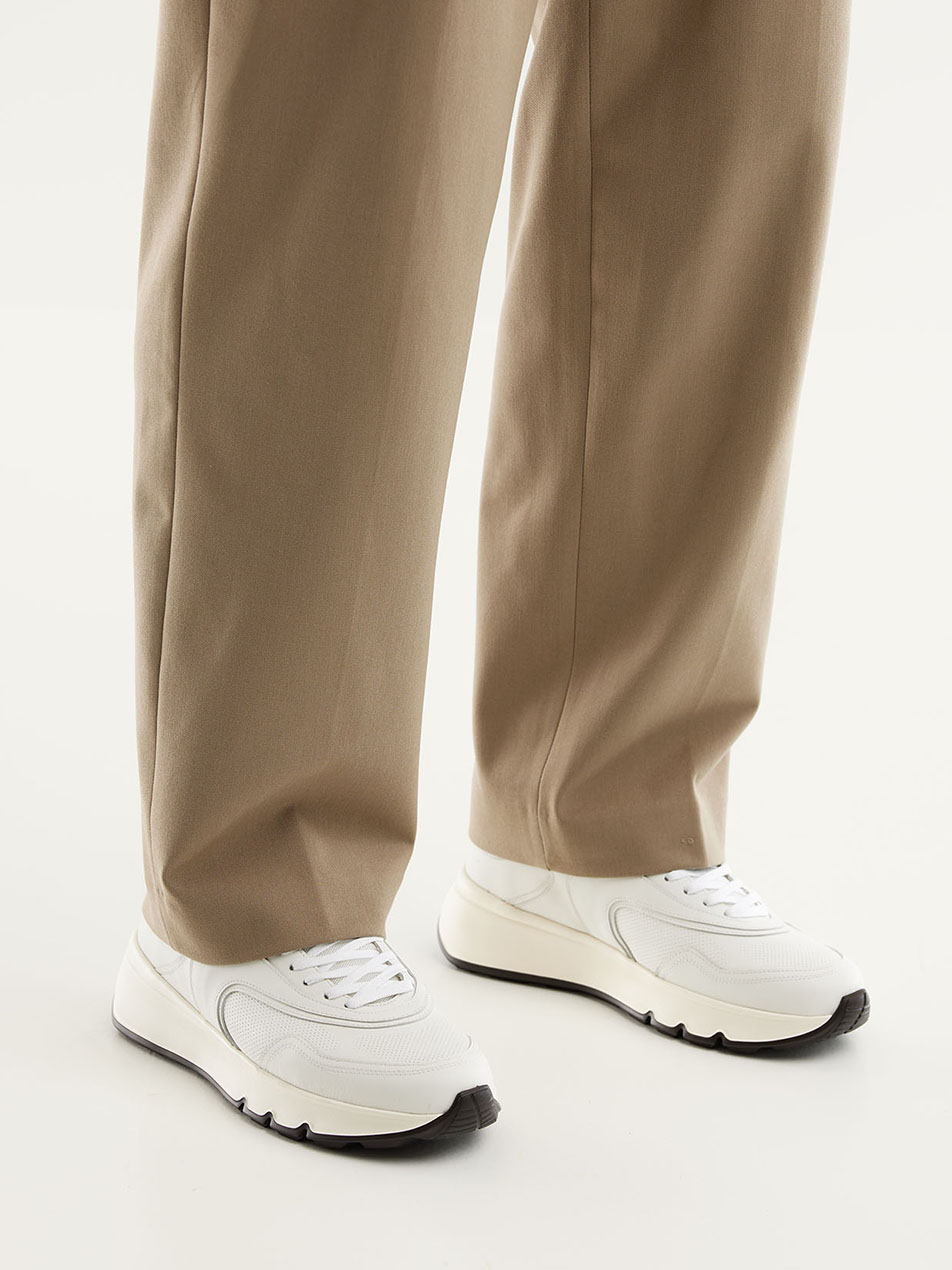 La Luca Noa está confeccionada con una combinación de cuero, ante y malla, lo que crea una silueta dinámica con profundidad. Su diseño en capas y las líneas visibles le aportan un estilo moderno y deportivo.