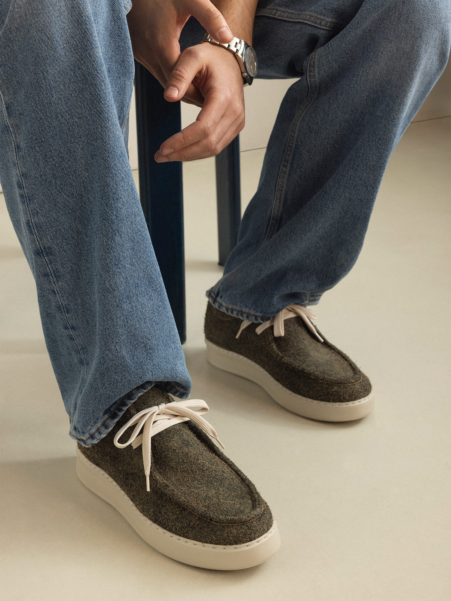El Vick Ryan en ante hairy gris oscuro combina una silueta clásica de mocasín con una nueva textura de ante rugosa. El material cepillado y resistente crea un efecto peludo que le da al diseño un aspecto contemporáneo y lujoso. Los cordones de nylon beige aportan un contraste suave. La suela ligera hace que el zapato sea cómodo desde el primer momento.