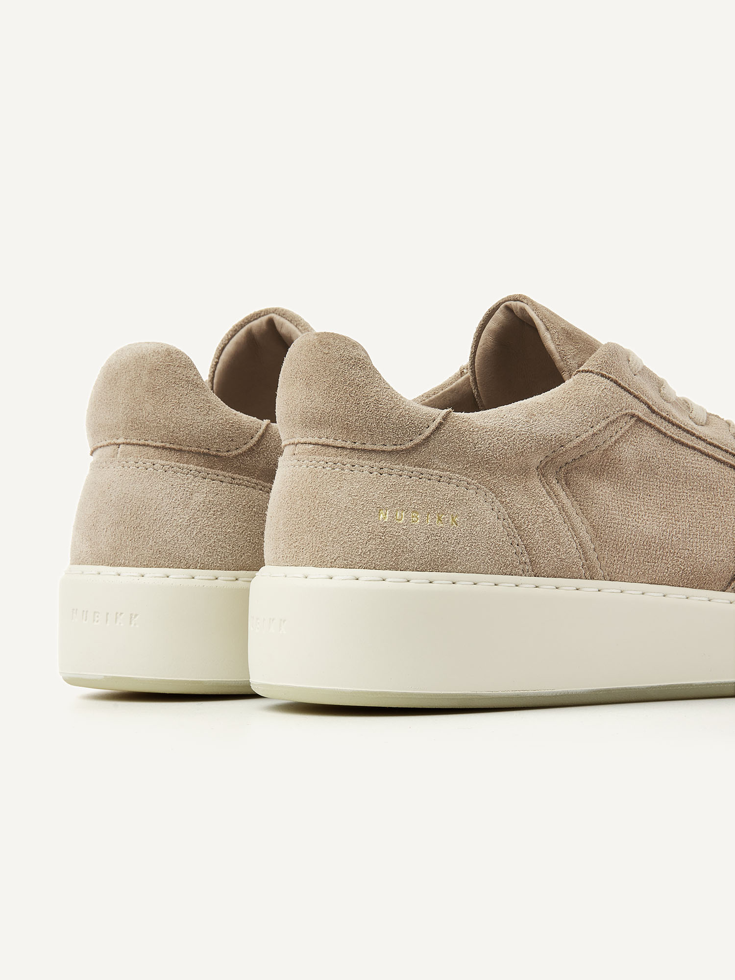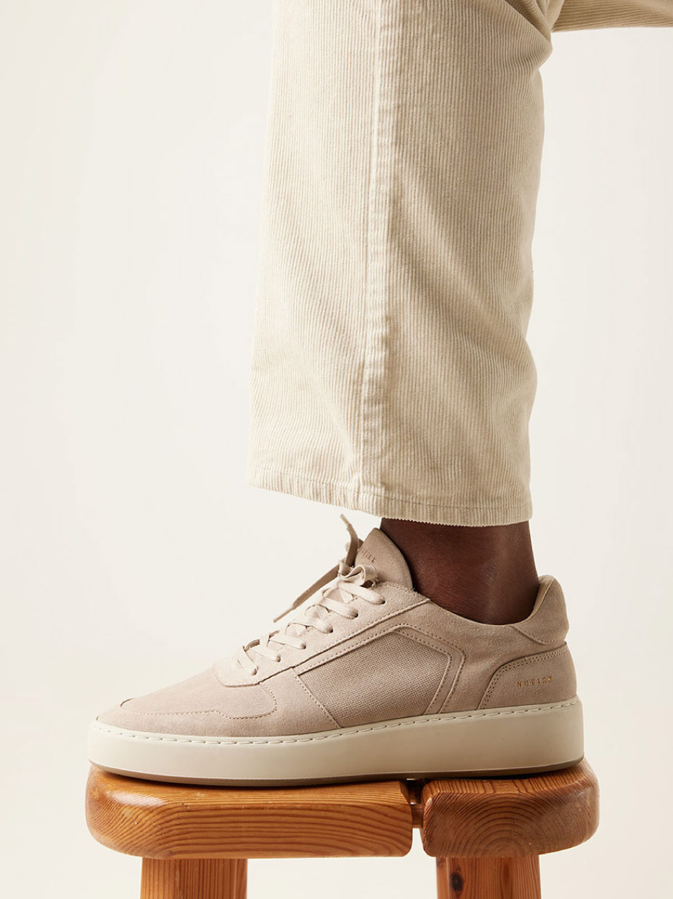 El Jiro Luca en beige cuenta con una suela ligera de PU y un talón acolchado, lo que te permite caminar con estilo sin renunciar a la comodidad. Los detalles únicos son lo que hace que el Jiro Luca sea especial. El patrón de bloques en el ante, el talón acolchado y el forro de cuero liso son ejemplos de ello.