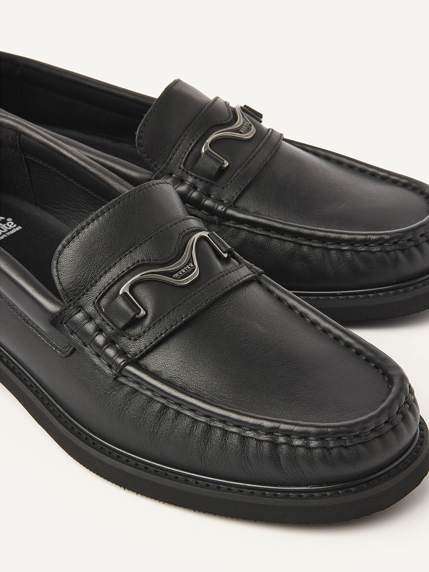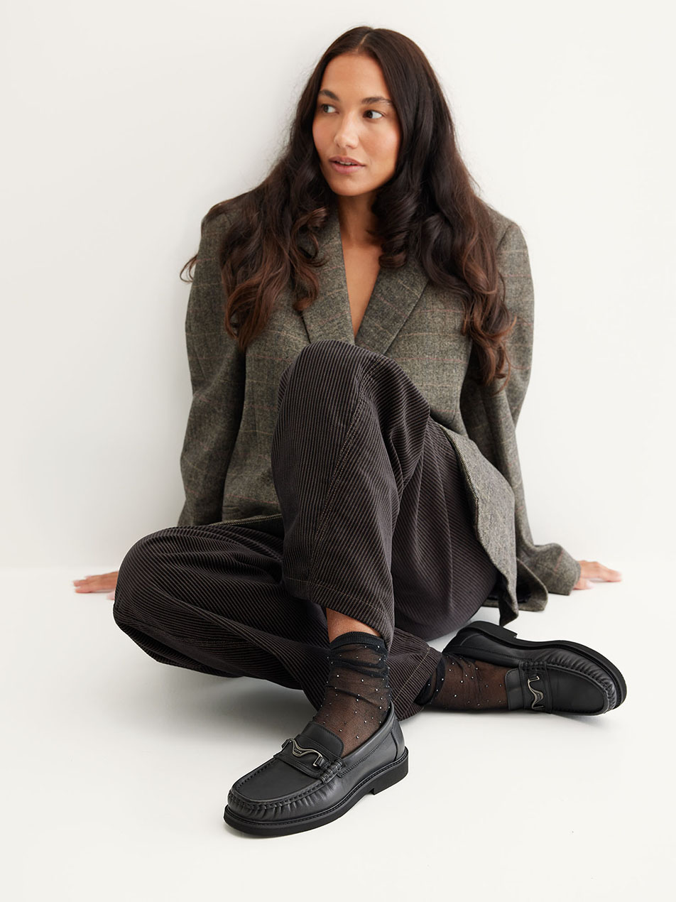 Le Jaimy Gatsby est un loafer moderne pour femmes, fabriqué en cuir noir de haute qualité. La couture mocassin marquée et le détail emblématique en métal NUBIKK sur le cou-de-pied confèrent à ce modèle une allure luxueuse et élégante.