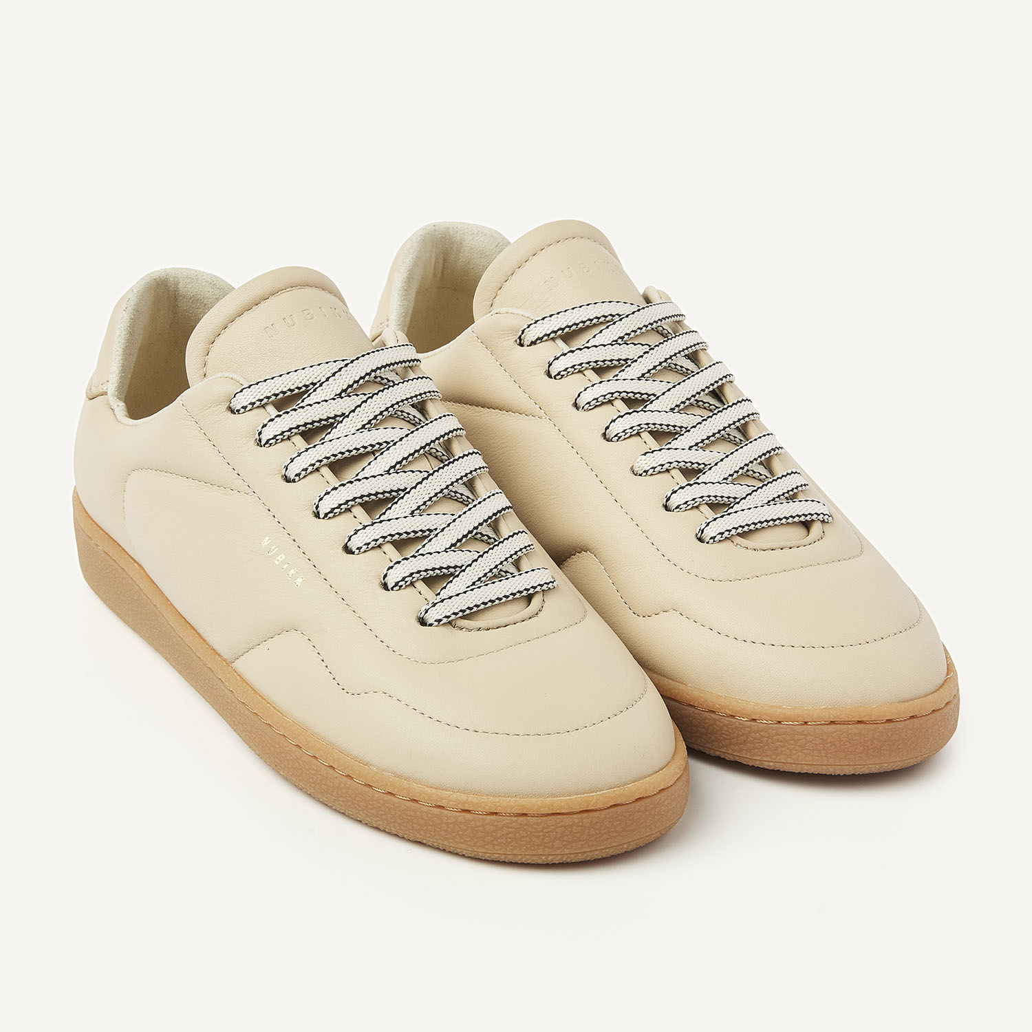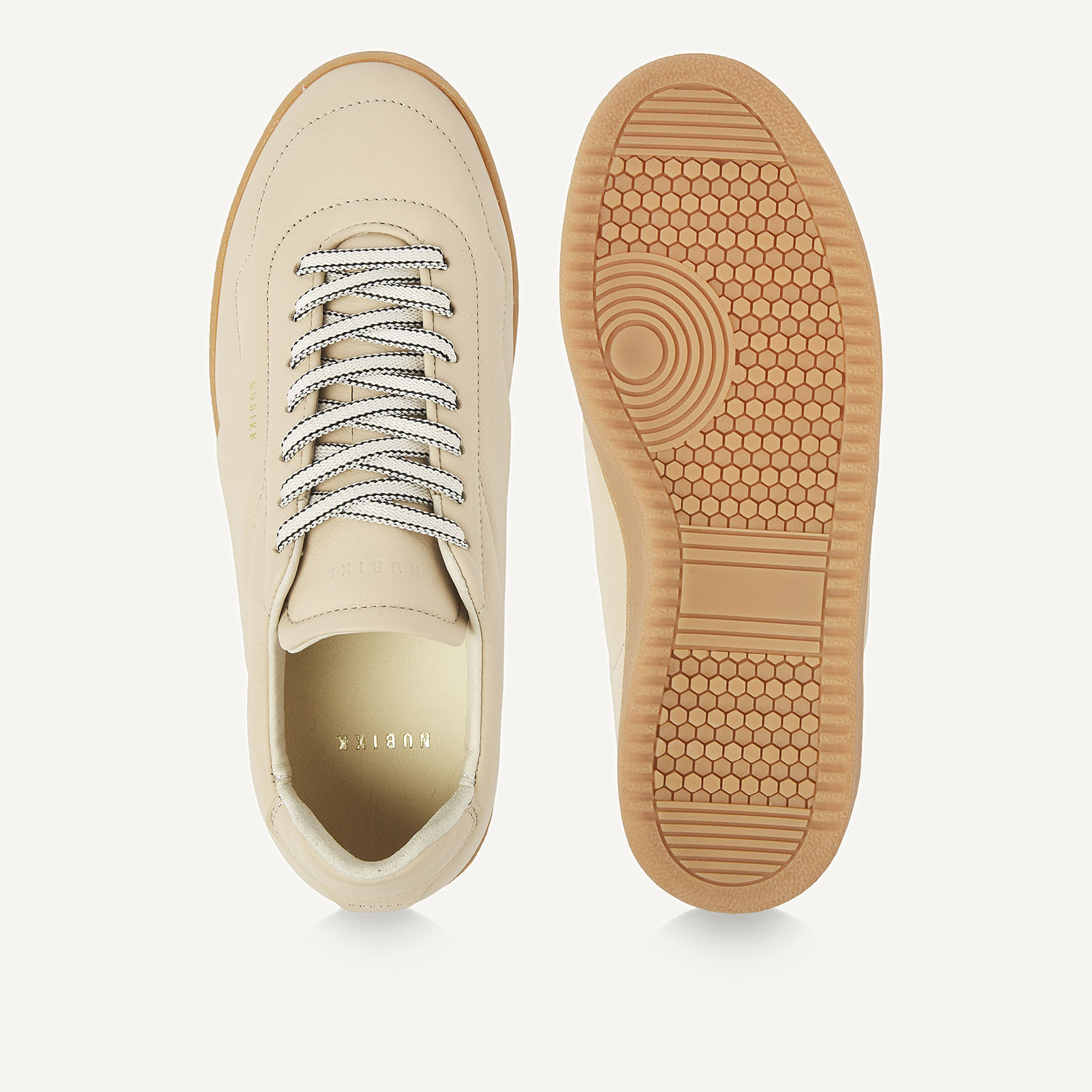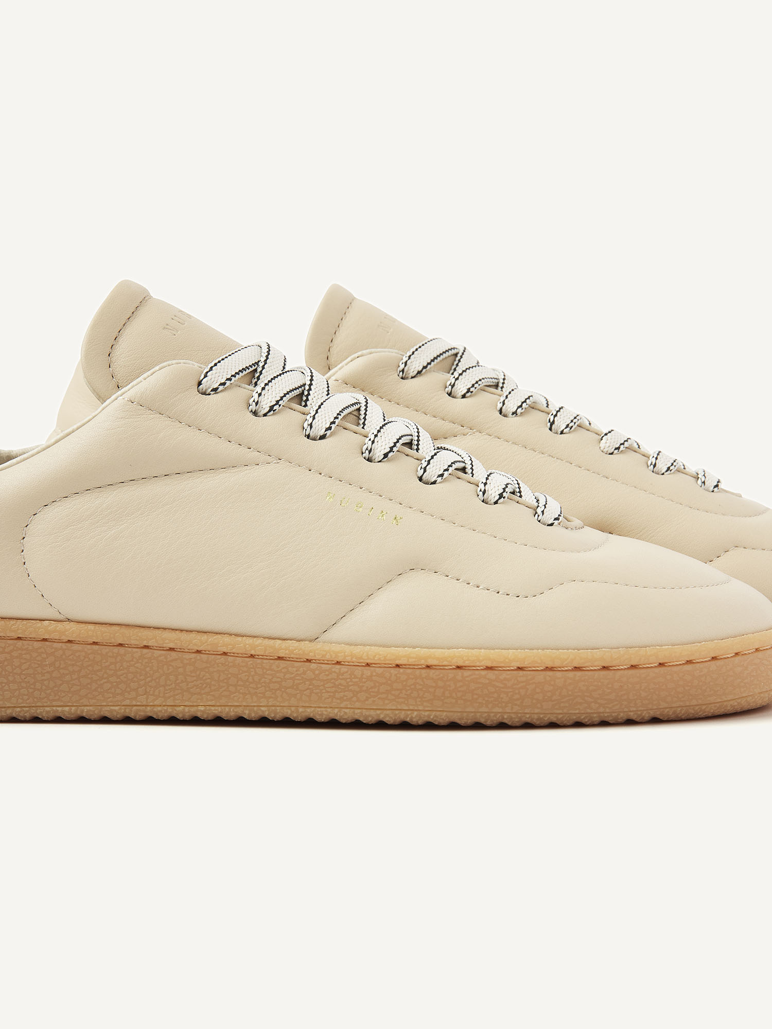 La version beige du Ray Rush combine un look épuré avec le confort doux de la tige matelassée. La semelle légère couleur miel apporte un aspect frais et naturel, facile à assortir avec toutes les tenues. Cette version est livrée avec deux lacets pour varier le style : un lacet en coton beige avec embout métallique et un lacet beige avec une fine ligne noire.