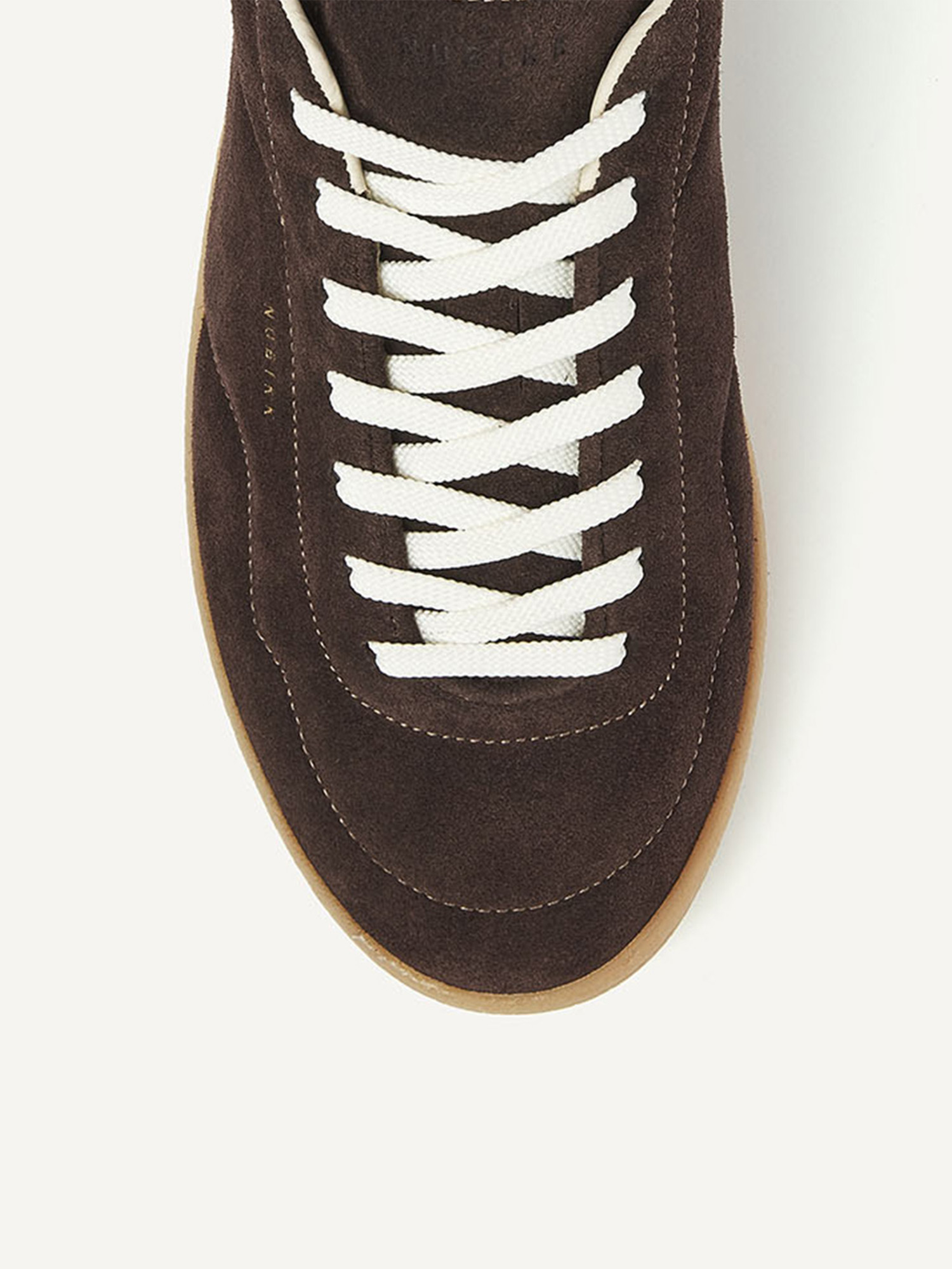 Le Ray Rush en brun foncé s’inspire du Caldera Rush et affiche un look sportif grâce à son design matelassé. Le suède brun foncé apporte une allure riche et intemporelle qui s’accorde facilement avec vos tenues quotidiennes. La semelle couleur miel offre un contraste chaleureux et un confort léger au quotidien.