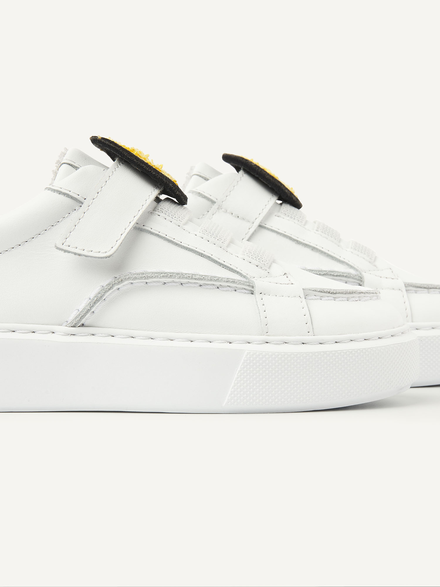 La version en cuir blanc de la Vince Caldera est un classique moderne pour les enfants. Fabriquée en cuir blanc souple avec des lacets élastiques et un look chunky rappelant la Caldera adulte. Légère, entièrement doublée et dotée d’une semelle intérieure en cuir: le parfait mélange de confort et de style.