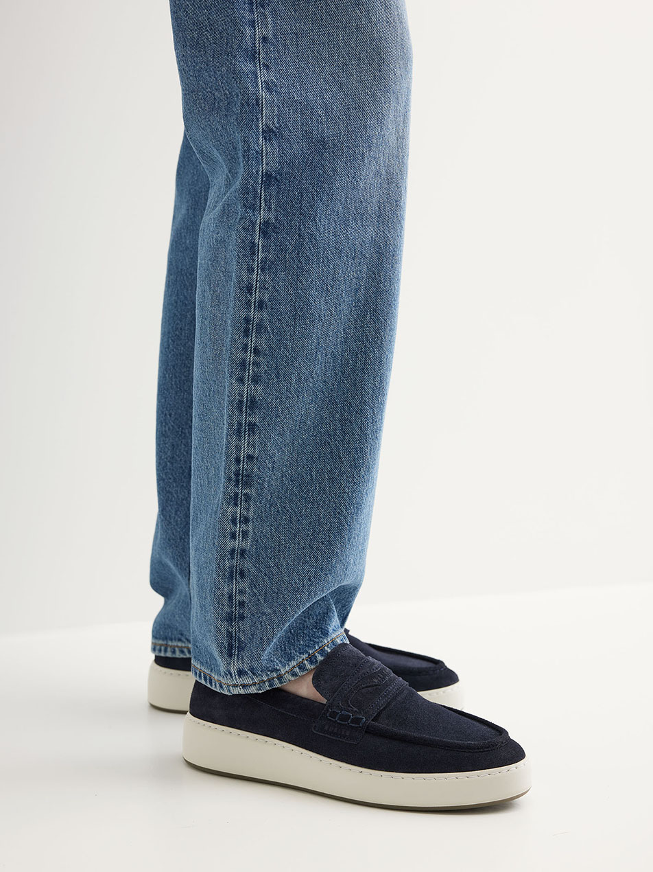 Le Jiro Gatsby en daim bleu foncé est un loafer moderne offrant un haut niveau de confort. La bride, inspirée de l’Ethan Gatsby, apporte un détail reconnaissable, tandis que la semelle Jiro assure une base confortable et contemporaine. Le daim bleu navy profond est subtilement contrasté par une semelle extérieure burned-olive. Doté d’une doublure en cuir et d’une semelle intérieure en cuir amovible pour un confort et un maintien durables.