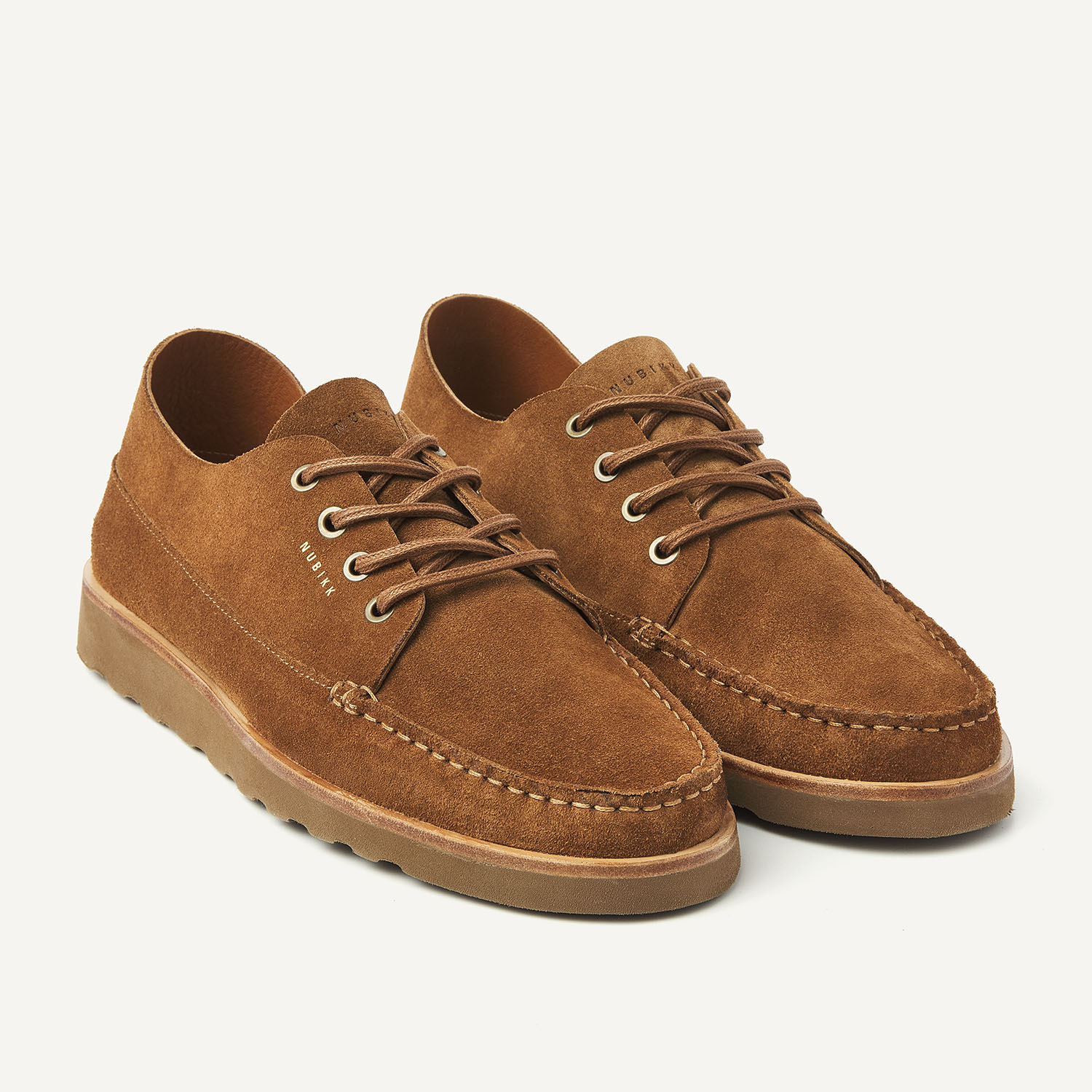 The Milo Macaw in cognac suede has a calm yet luxurious appearance and is handmade in Portugal. Its minimalist design with the signature mock stitch provides a refined look. Lightweight and comfortable from the very first step.