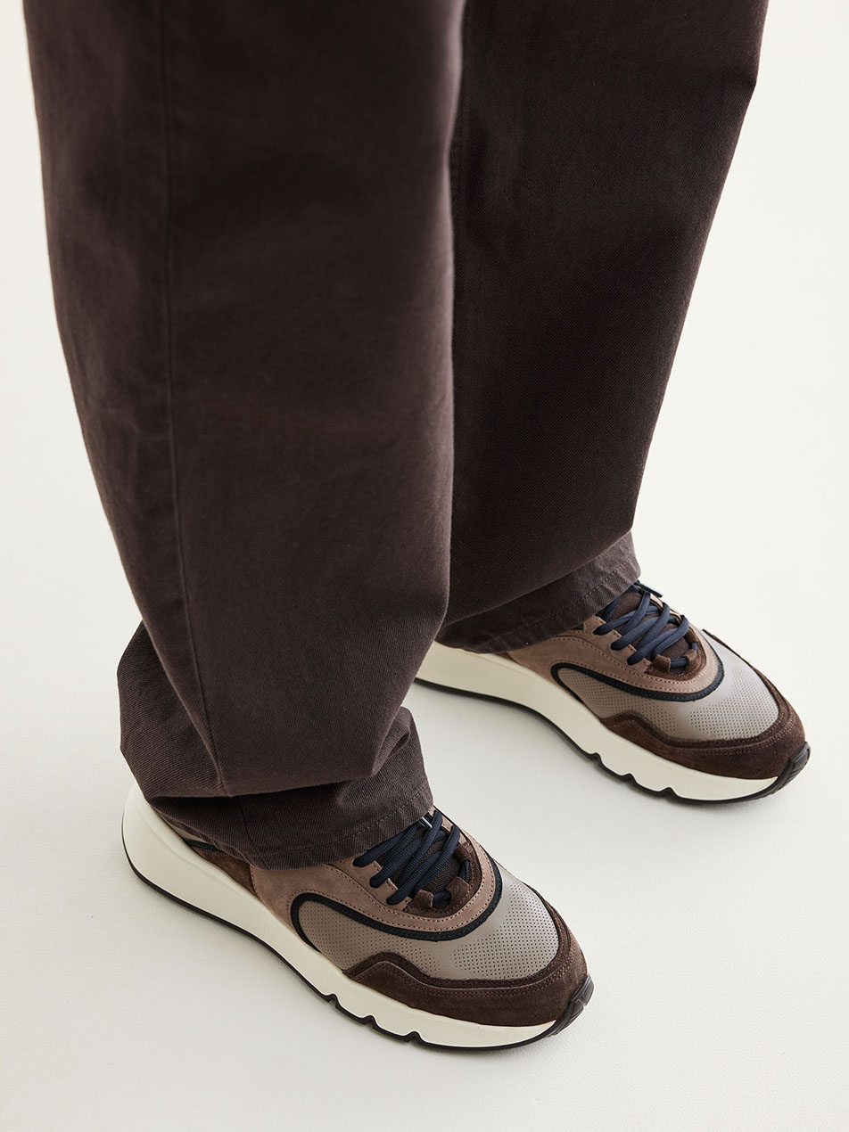 The Luca Noa is crafted from a combination of leather, suede, and mesh, creating a dynamic silhouette with depth. The layered construction and visible lines give the sneaker a modern, sporty look.