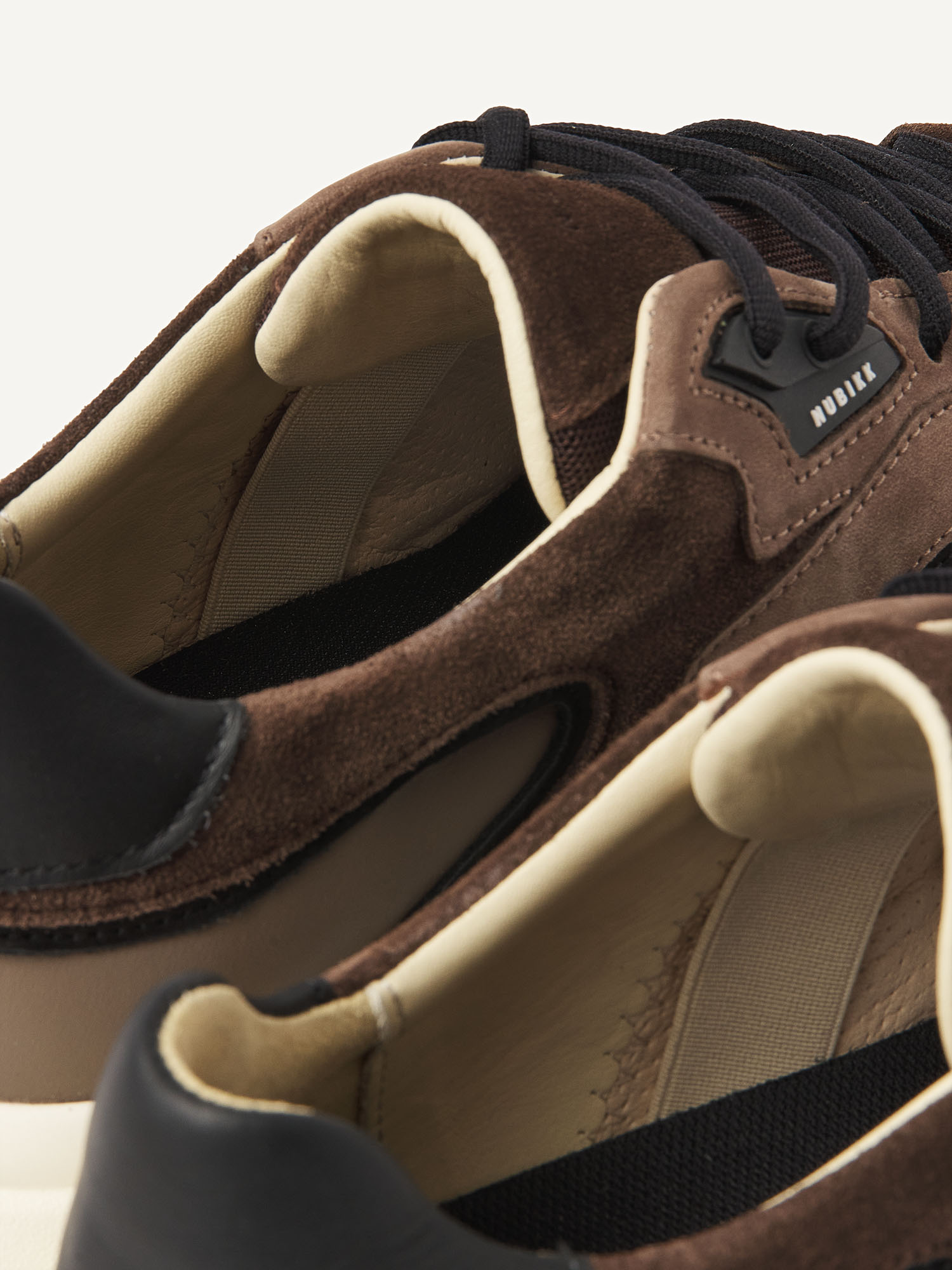 The Luca Noa in dark brown is a refined everyday sneaker made from a rich mix of nubuck, suede, leather, and mesh. The deep brown tones give the sneaker a warm, stylish look that pairs effortlessly with both casual and smart outfits. Thanks to the elastic inserts on the inside of the tongue, you can slip them on easily—no need to tie the laces. Finished with a lightweight EVA sole and Ortholite insole for ultimate comfort.