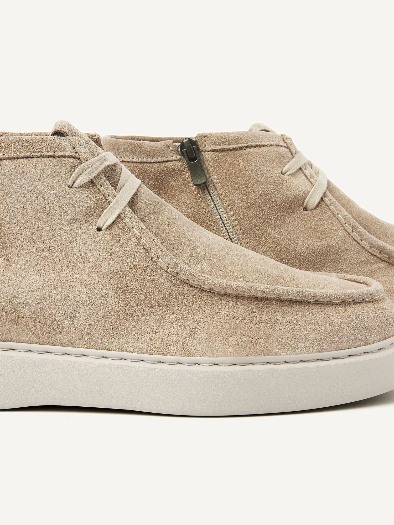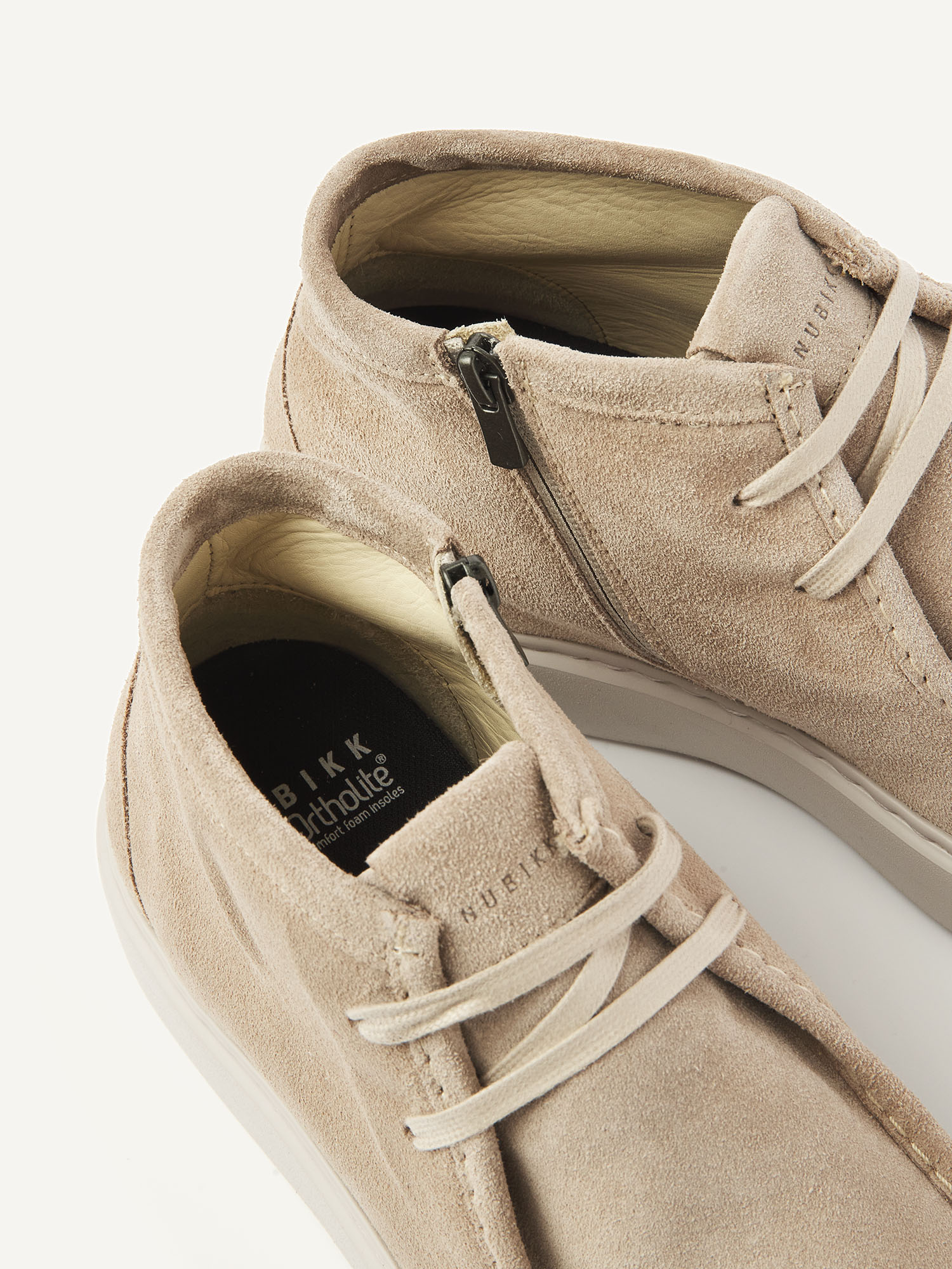The Steve Ryan Mid in beige suede combines a soft, natural hue with the bold character of a mid-top design. The contrasting light sole adds a fresh and modern look, while the supple suede ensures a comfortable fit. Perfect for those who appreciate clean design with a subtle twist.