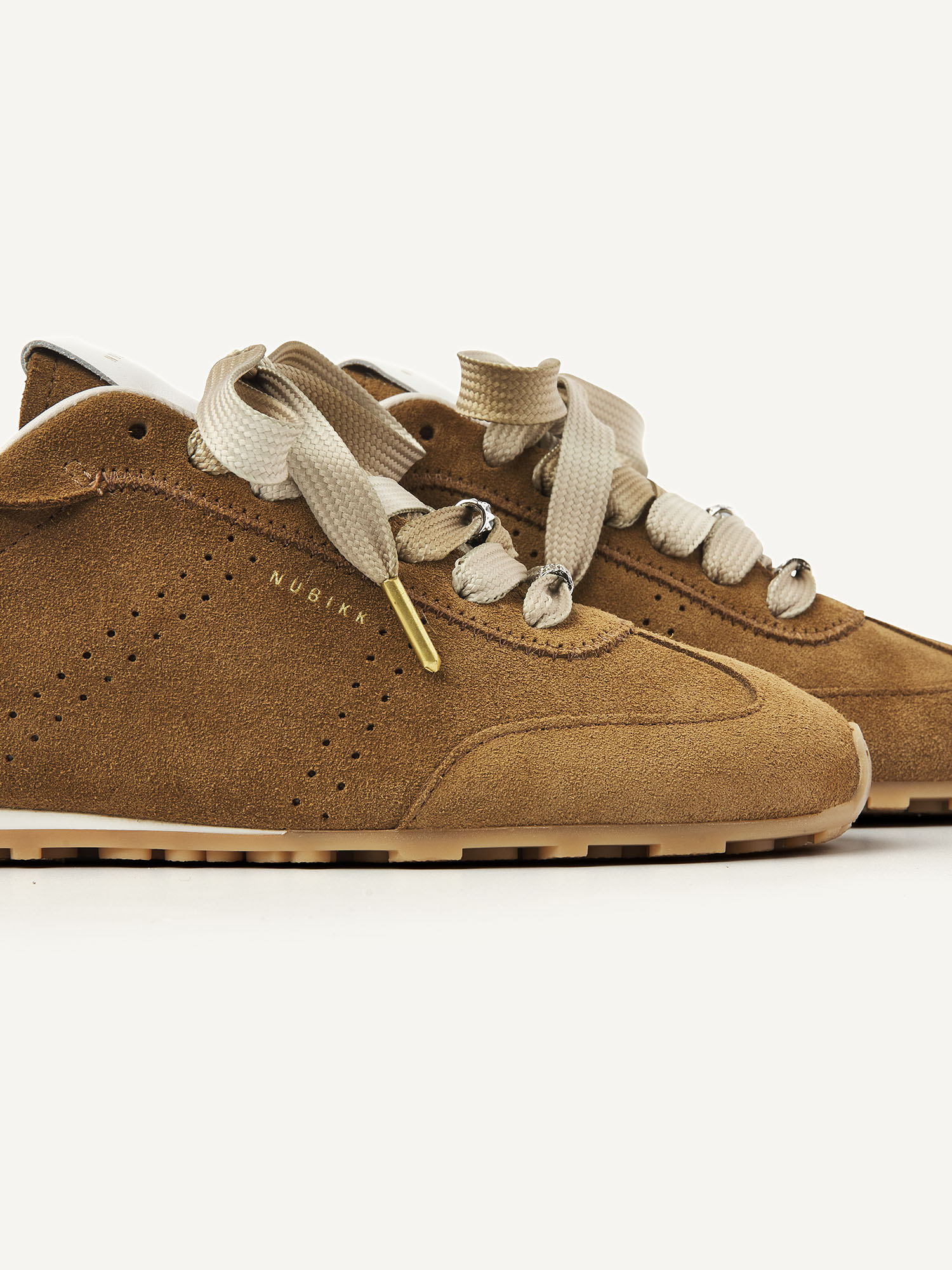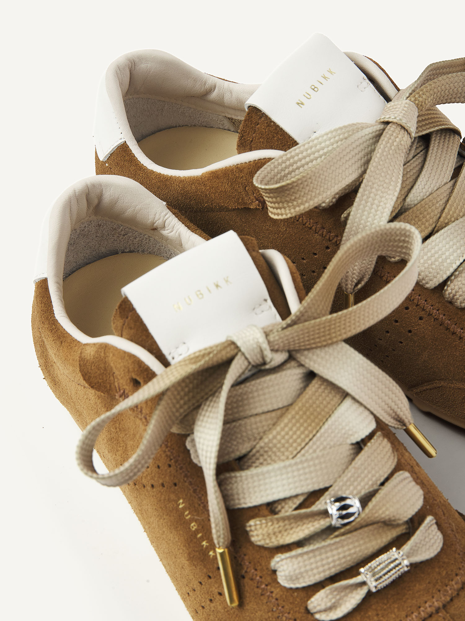 De geliefde Billy Lou sneaker is terug in een nieuwe look! Het cognackleurige suède en de lichte zool zorgen voor comfortabel draagplezier. De veters met een subtiel dip-dye effect en kralen geven de sneaker een vrouwelijke touch. Naast de dip-dye veters wordt de sneaker geleverd met de originele witte en oranje veters, zodat je eenvoudig van stijl kunt wisselen.