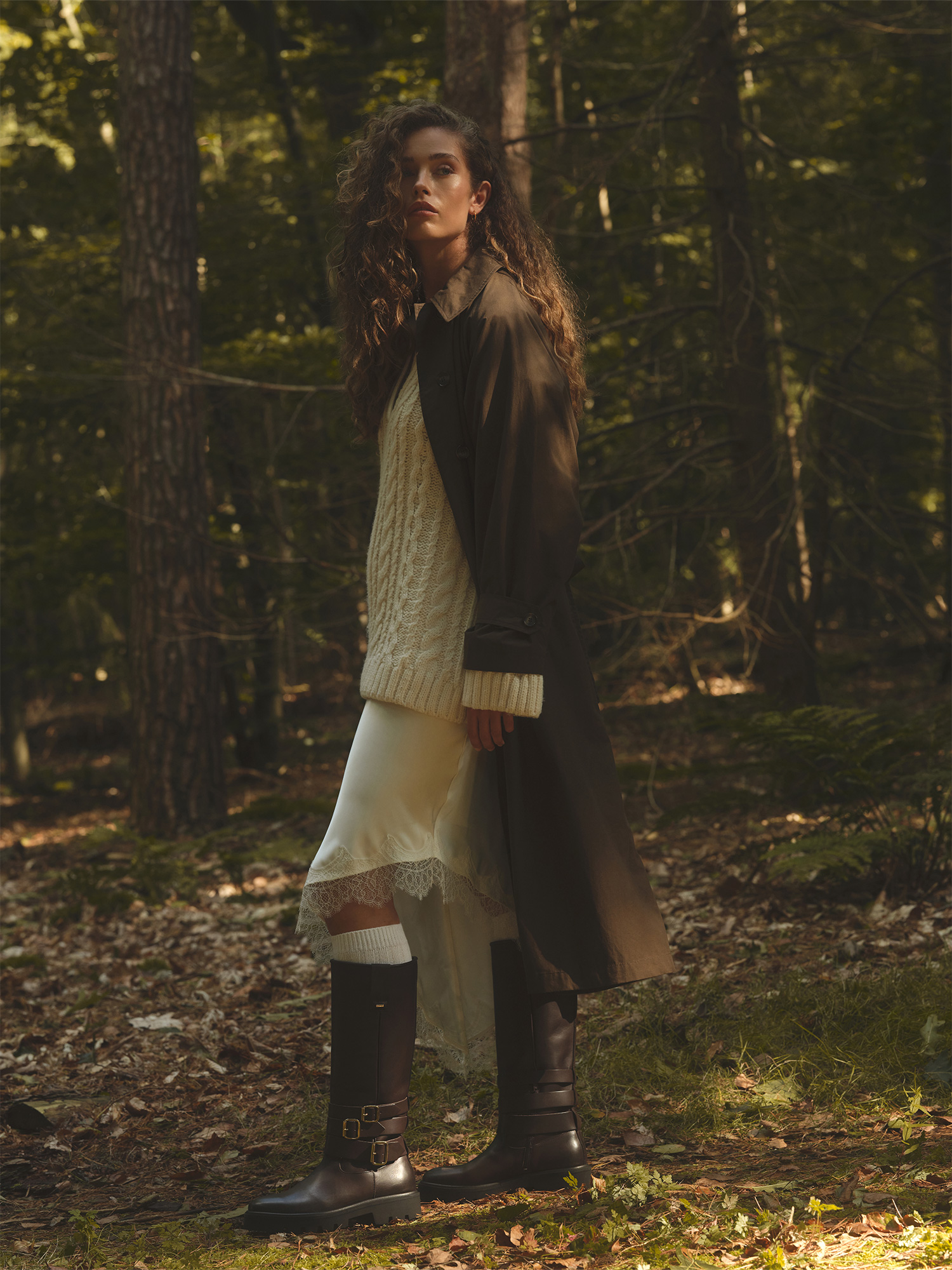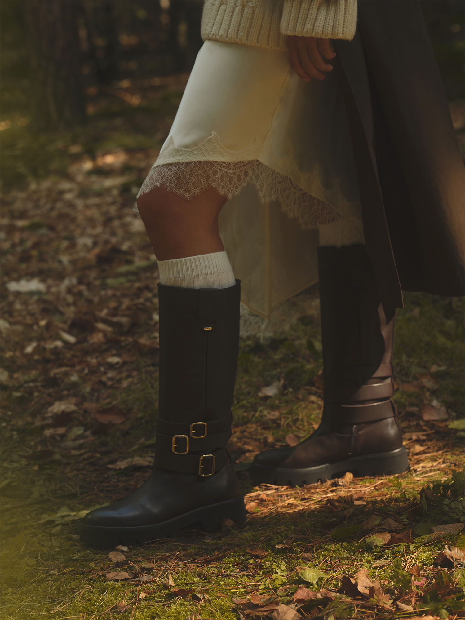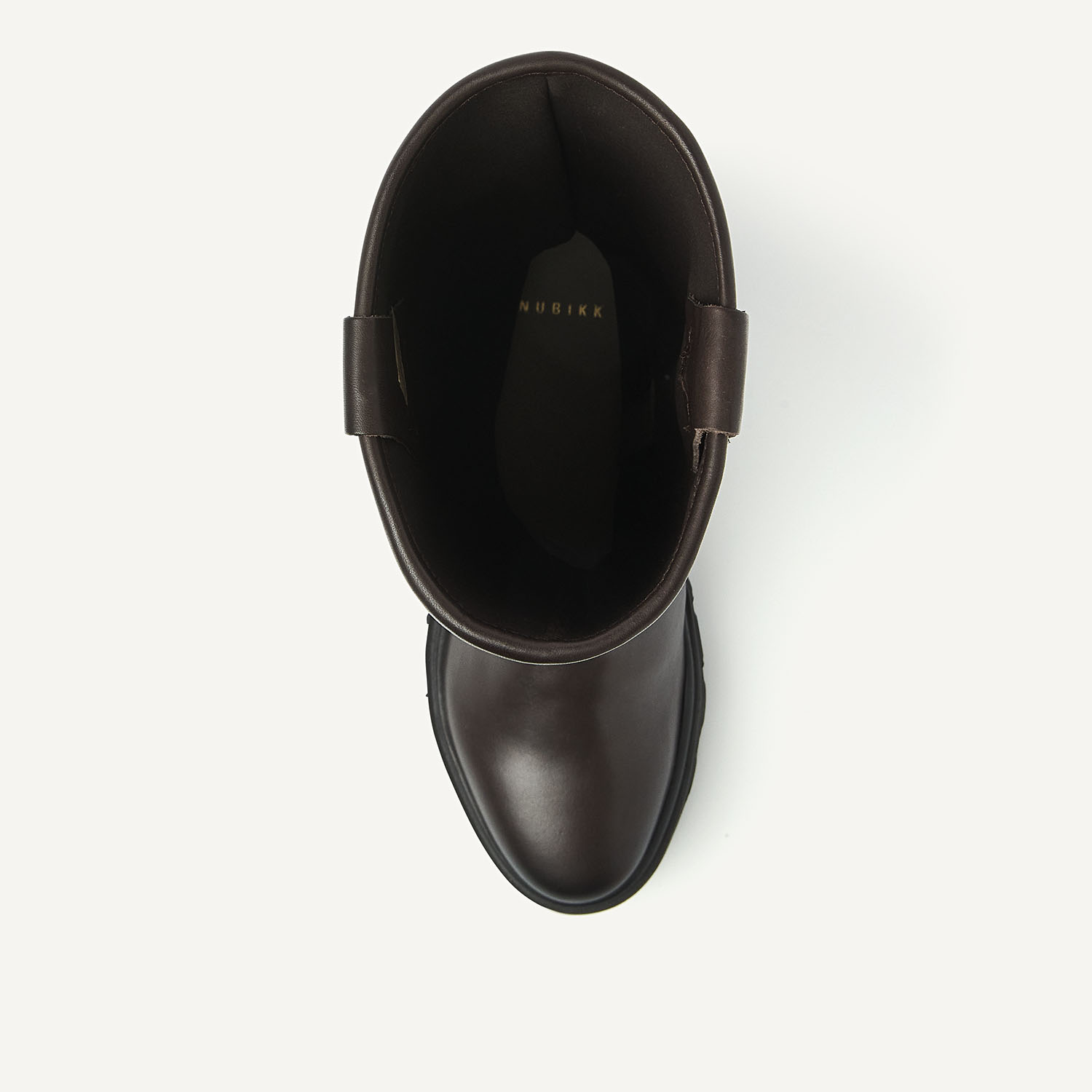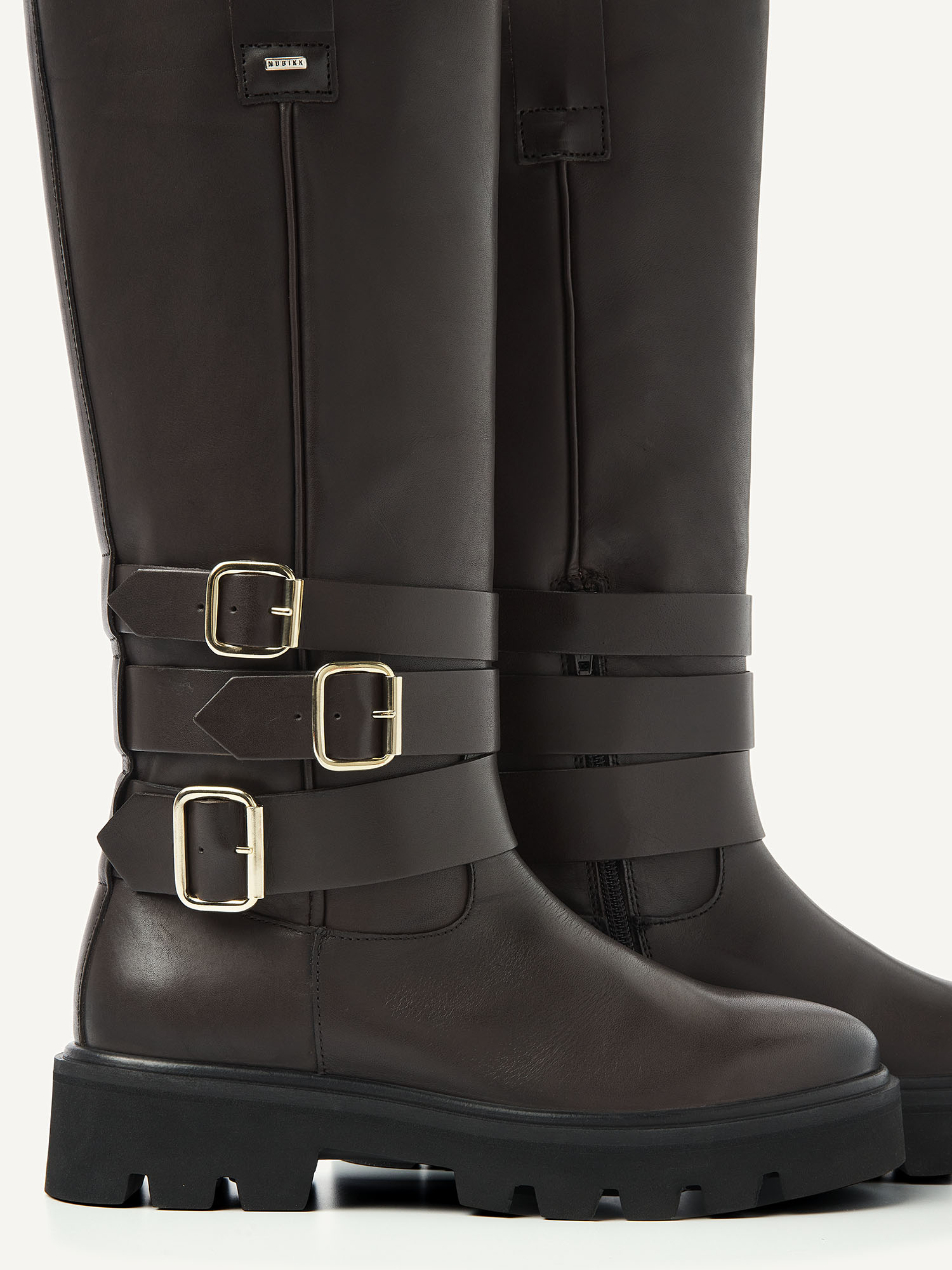 De Frankie Lynn van NUBIKK is een statement boot die elegantie en kracht combineert. Het diepe donkerbruine leer geeft de laars een luxe uitstraling, terwijl de platina buckles en afneembare riempjes zorgen voor een edgy touch. De grove EVA-zool maakt ‘m comfortabel én opvallend. Sluit de laars eenvoudig met de rits aan de binnenzijde.