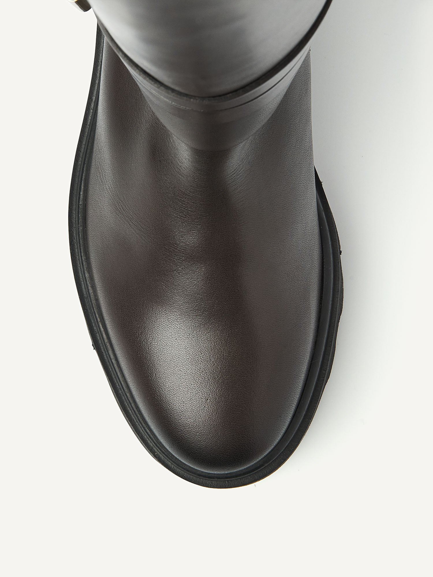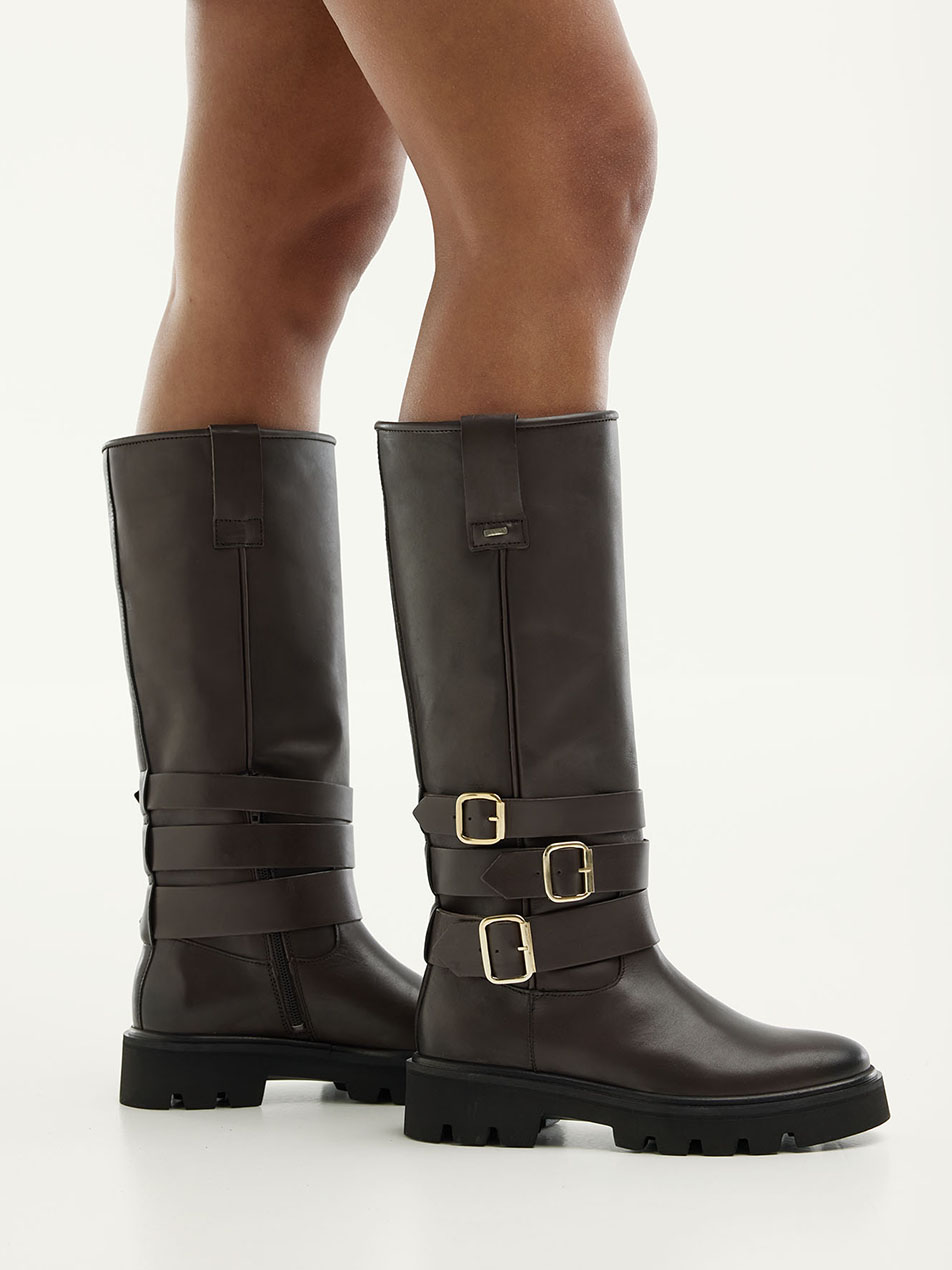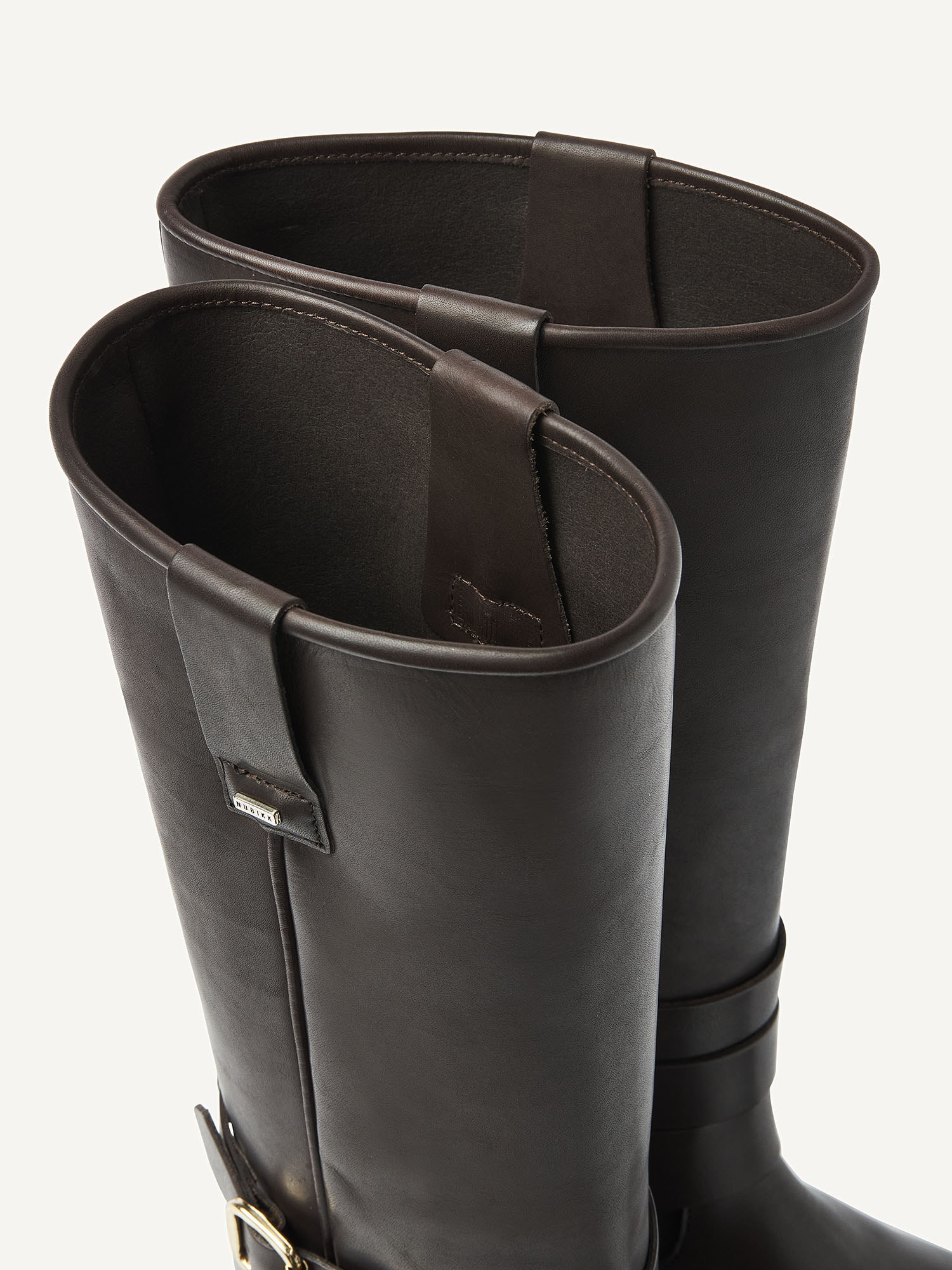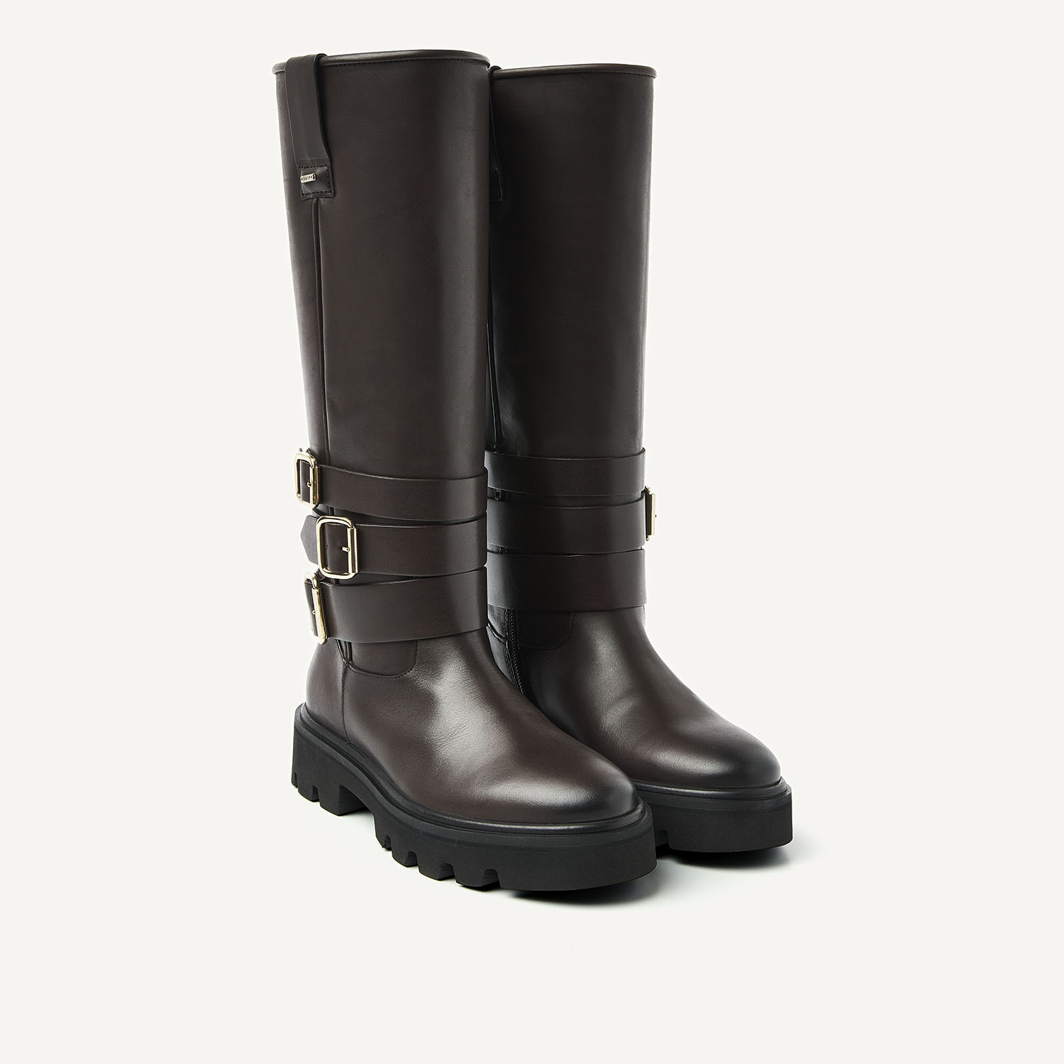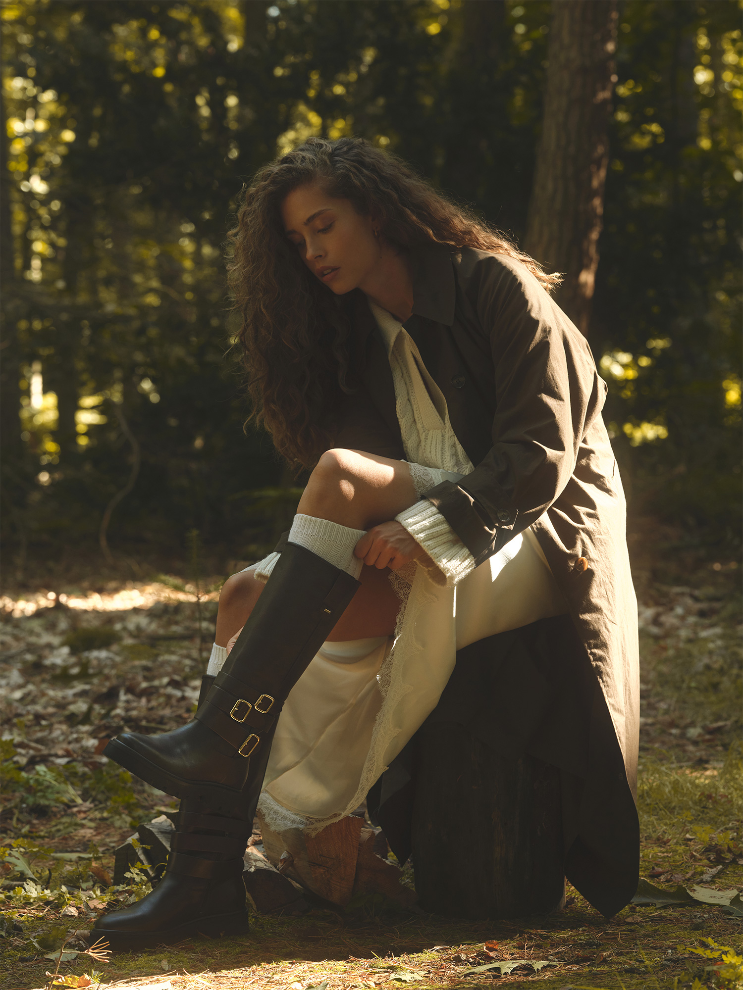 De Frankie Lynn van NUBIKK is een statement boot die elegantie en kracht combineert. Het diepe donkerbruine leer geeft de laars een luxe uitstraling, terwijl de platina buckles en afneembare riempjes zorgen voor een edgy touch. De grove EVA-zool maakt ‘m comfortabel én opvallend. Sluit de laars eenvoudig met de rits aan de binnenzijde.
