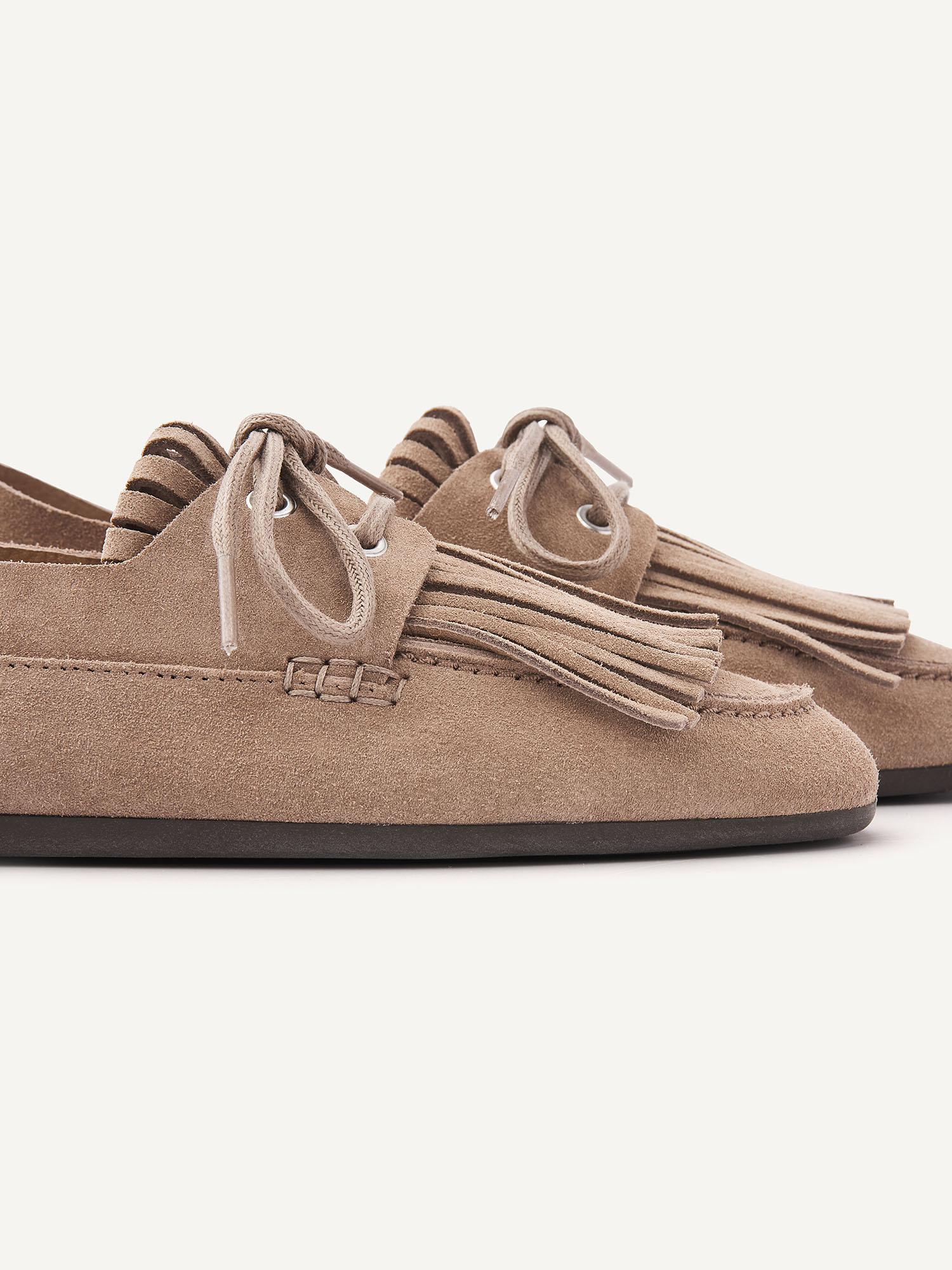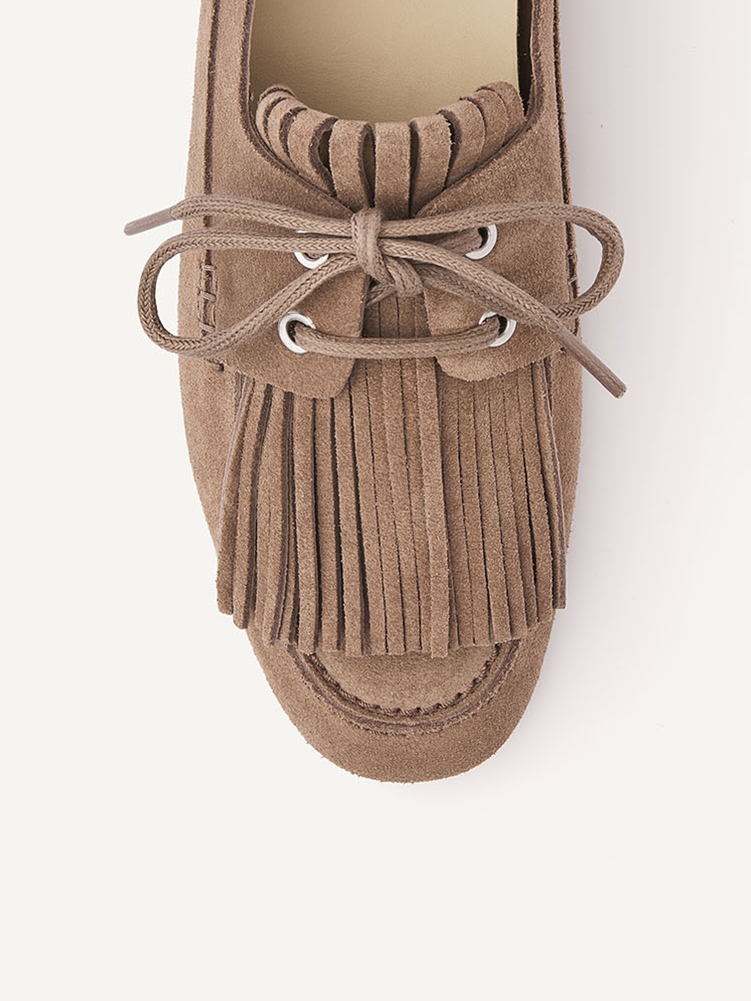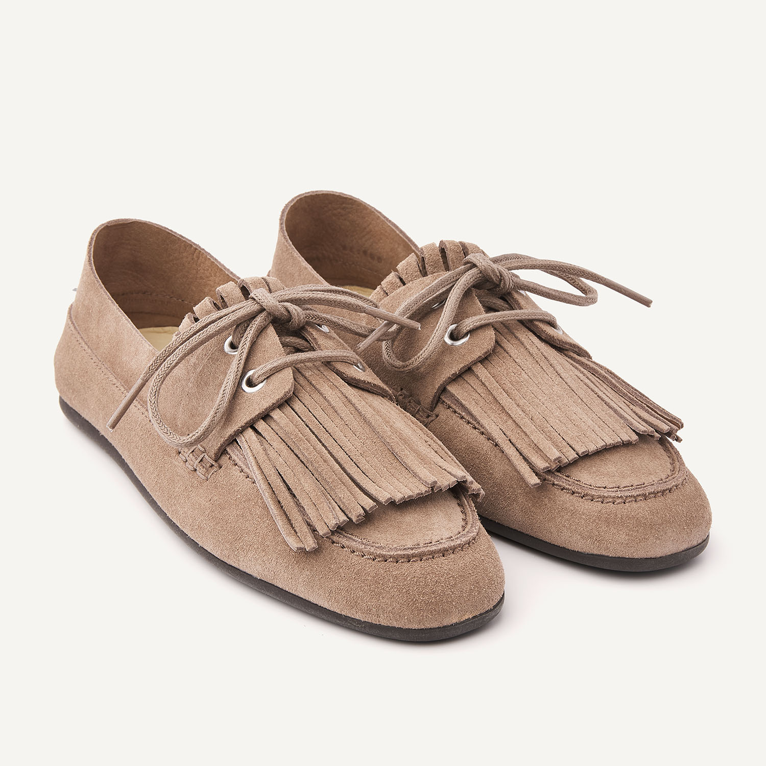 De Joan Macaw in taupe suède combineert een minimalistisch design met een zomerse uitstraling. Het soepele enkel-laagse suède vormt zich moeiteloos naar de voet en biedt een licht en comfortabel gevoel. De fringed details en de vierkante katoenen veter zorgen voor een subtiel statement. Met een flexibele rubberen zool en een uitneembare insole is dit een ideale instapper voor dagelijks gemak.