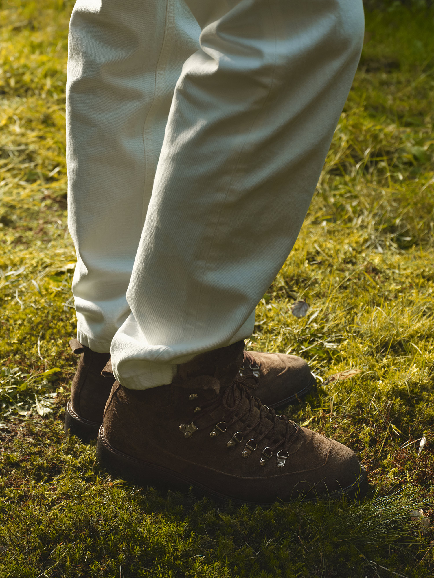 De Logan Chad boots zijn handgemaakt in Portugal en hebben een robuust, door wandelen geïnspireerd ontwerp. Voorzien van een leren lus aan de achterkant, een extra laag leer op de zijpanelen, een gepolsterde kraag en D-ring veterogen, bieden deze boots zowel duurzaamheid als stijl.