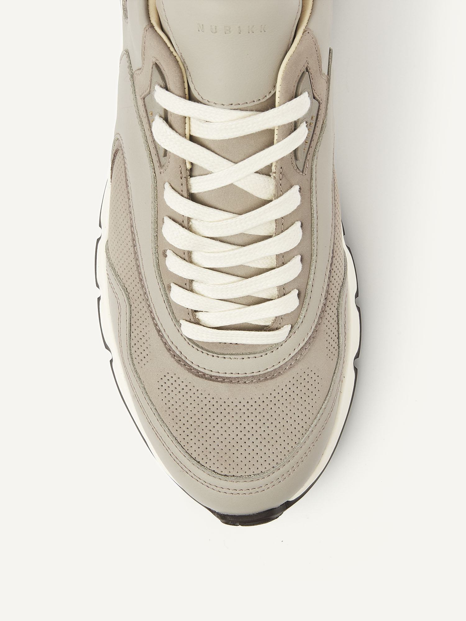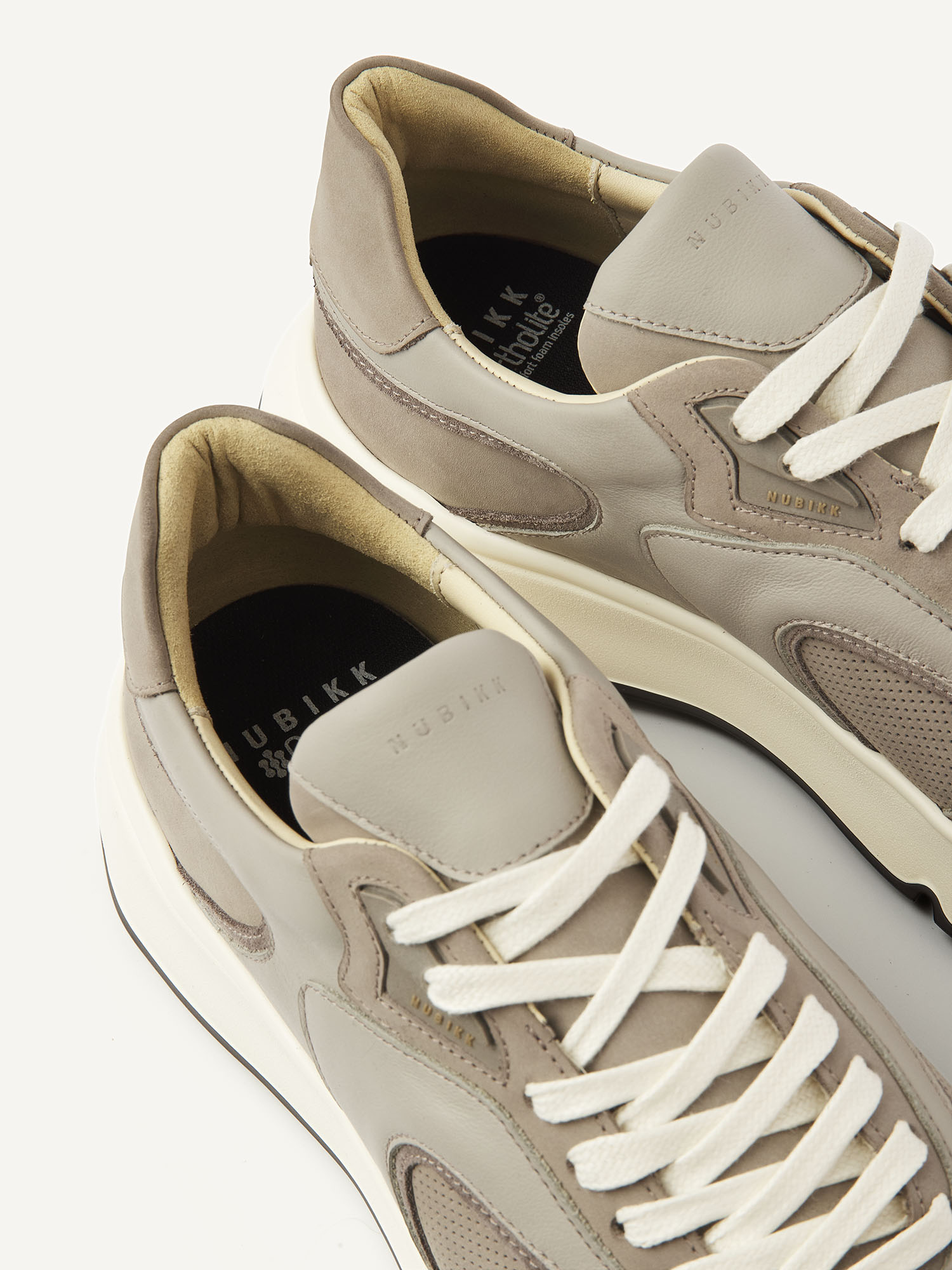 De Luca Noa is opgebouwd uit een combinatie van leer, suède en mesh, wat zorgt voor een dynamisch silhouet met diepgang. De gelaagde afwerking en zichtbare belijning geven de sneaker een moderne, sportieve uitstraling.