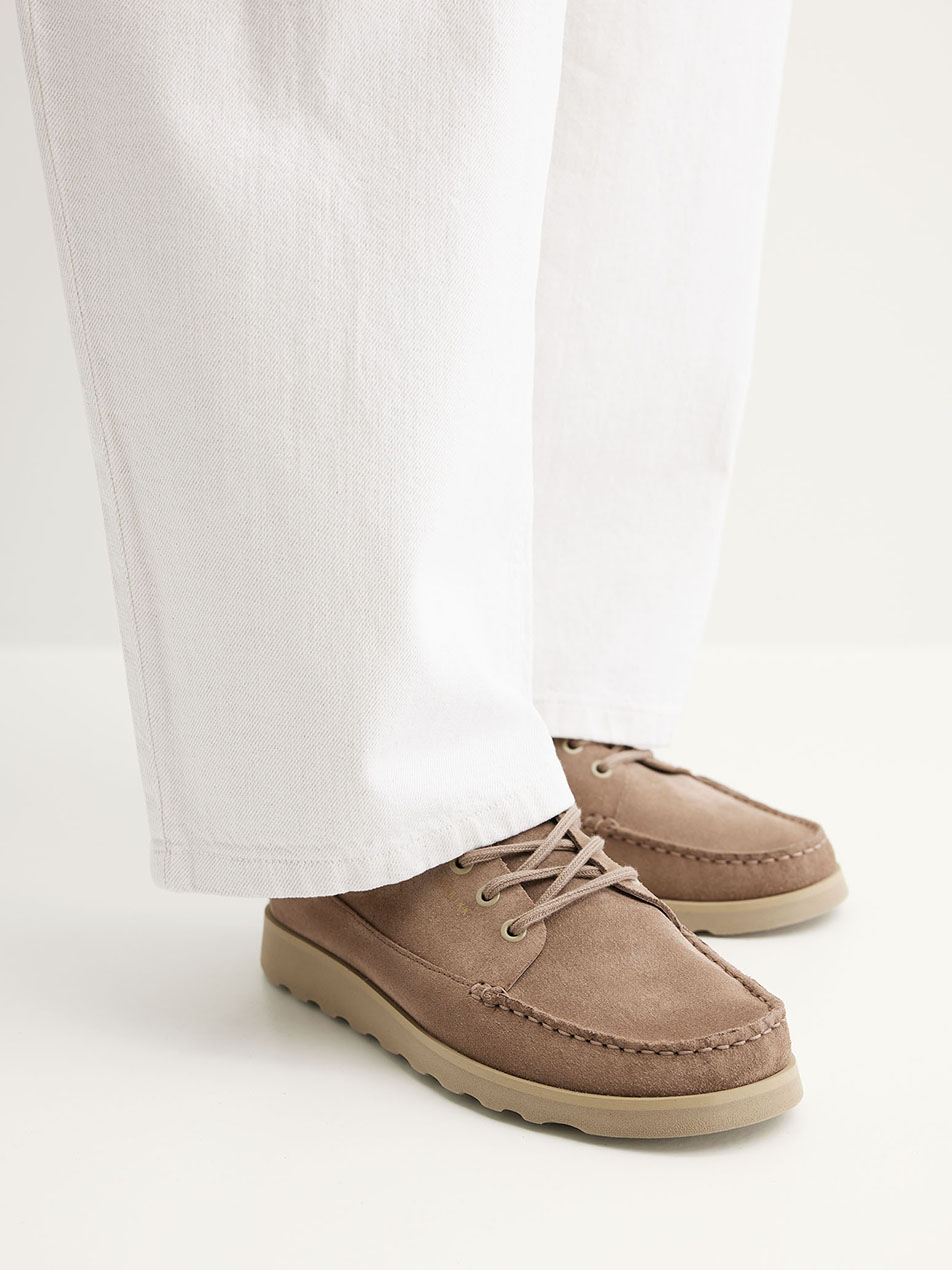 De vernieuwde Milo Macaw in taupe suede heeft een rustige, moderne look die zich makkelijk laat combineren. Gemaakt door Portugese vakmensen met oog voor detail, en afgewerkt met onze kenmerkende mock stitch voor een luxe uitstraling. De Milo Macaw is licht van gewicht, waardoor ze comfortabel lopen vanaf de eerste stap.