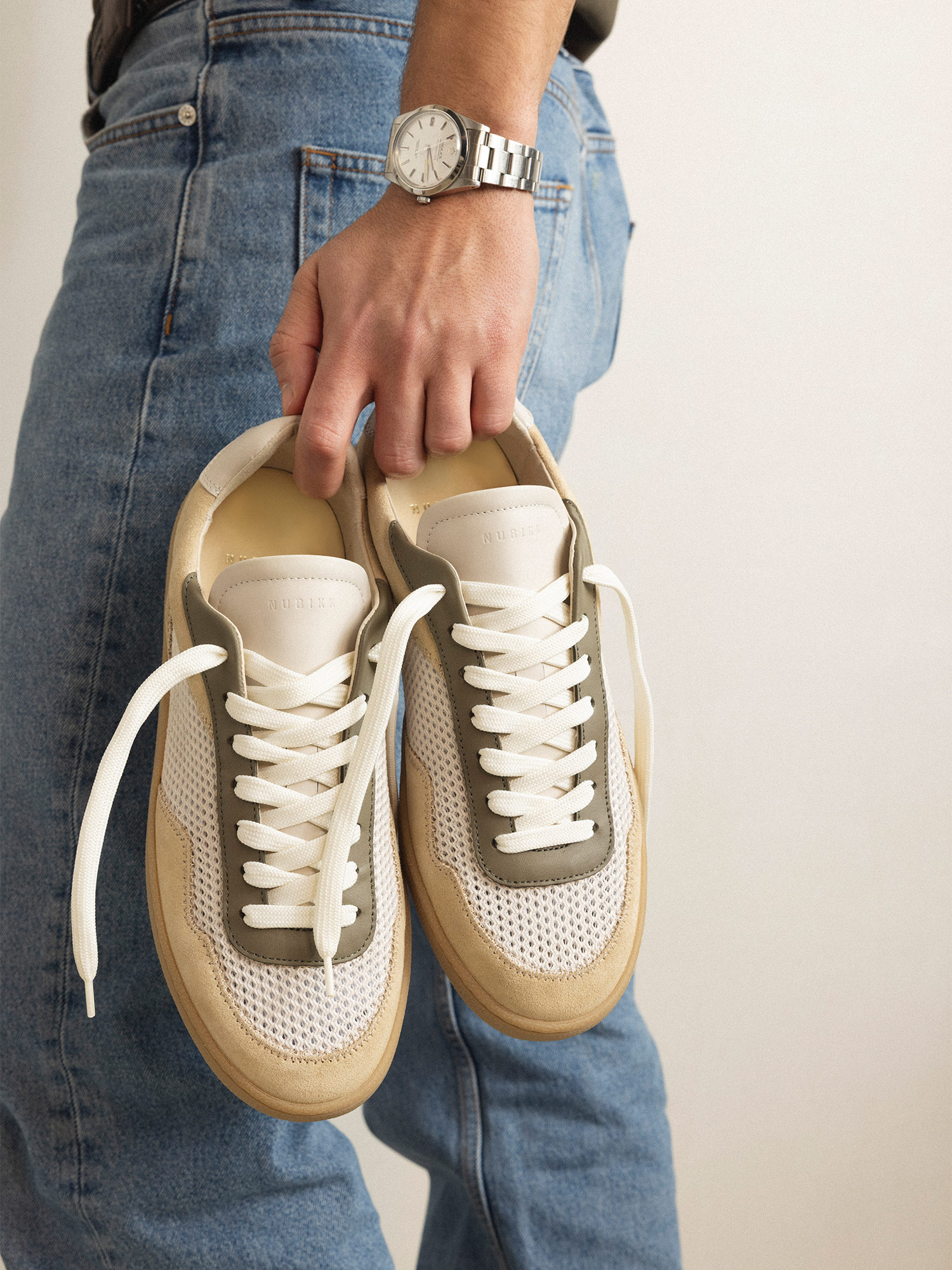 De Ray Joss in lichtgroen brengt sportiviteit en elegantie samen. De combinatie van suède, leer en ademend mesh creëert een rijke, gelaagde look. De zigzag-detaillering over het mesh geeft het ontwerp een subtiele, maar opvallende signature touch. De sneaker komt met een off-white nylon veter en gummi-kleurige zool. Perfect voor dagelijks gebruik dankzij de ademende materialen en de flexibele zool.