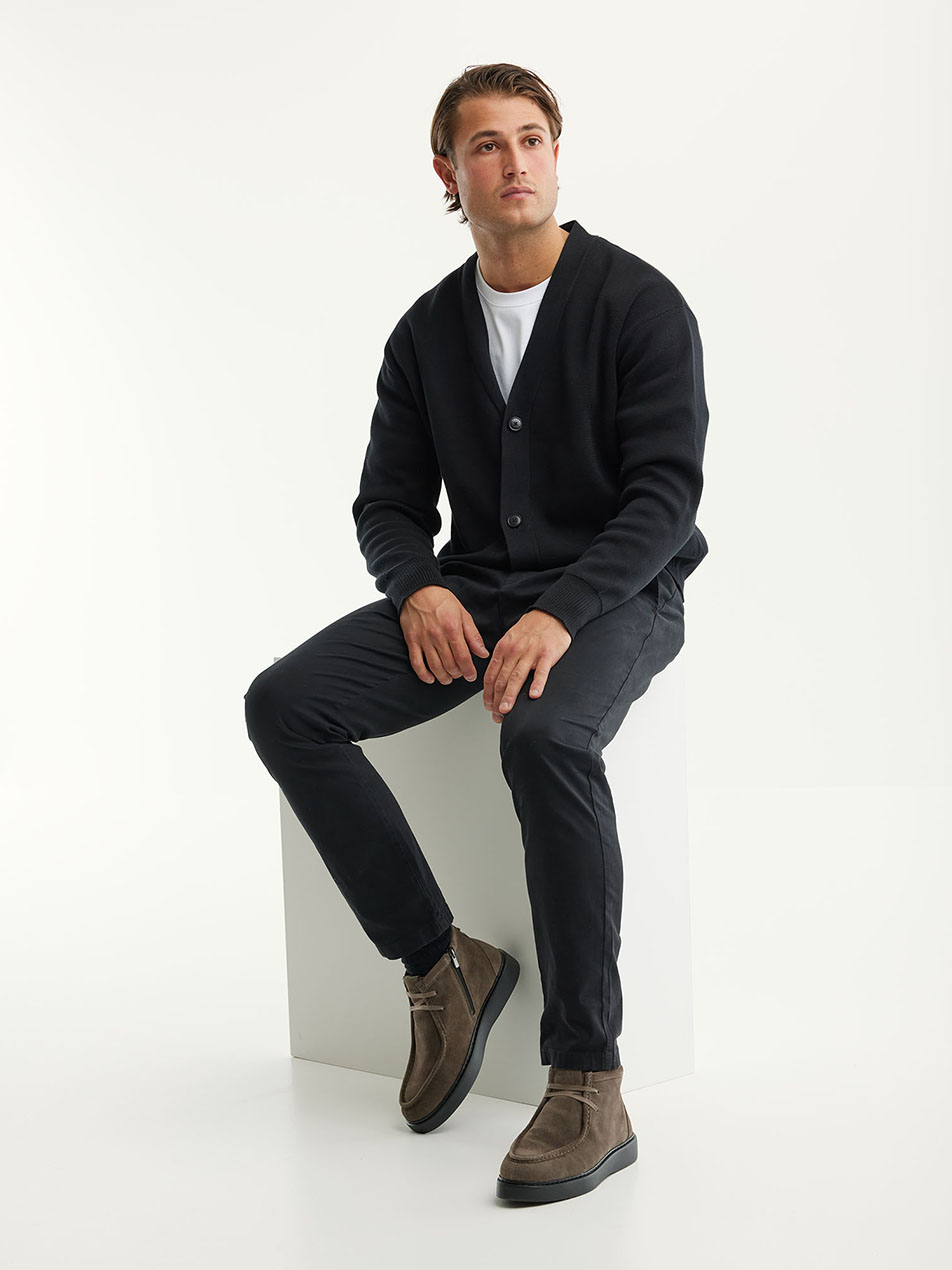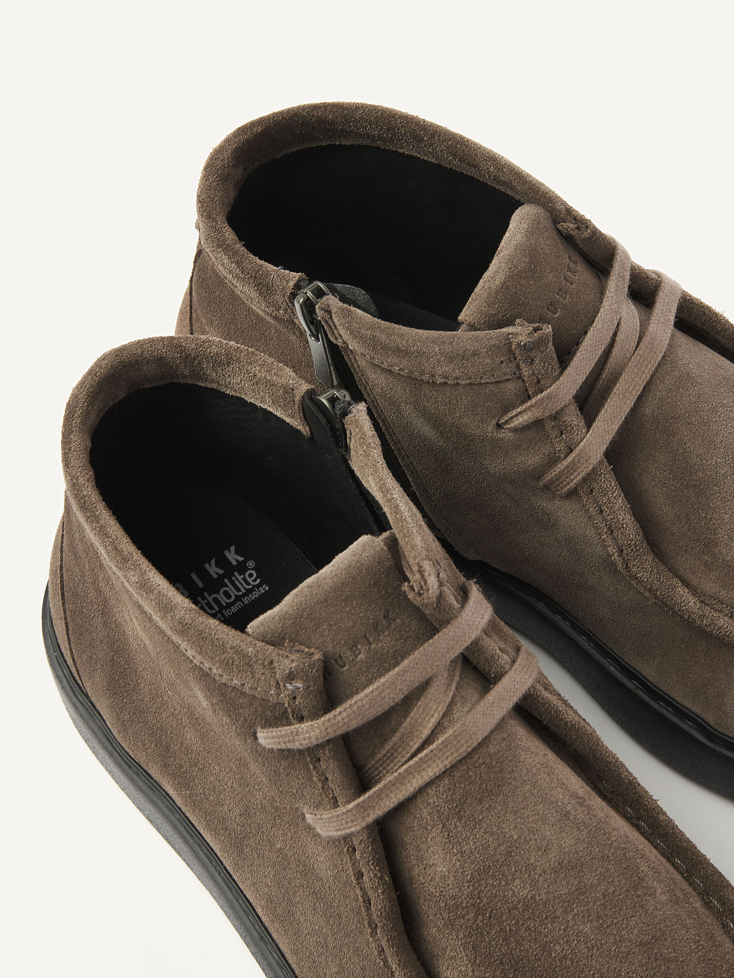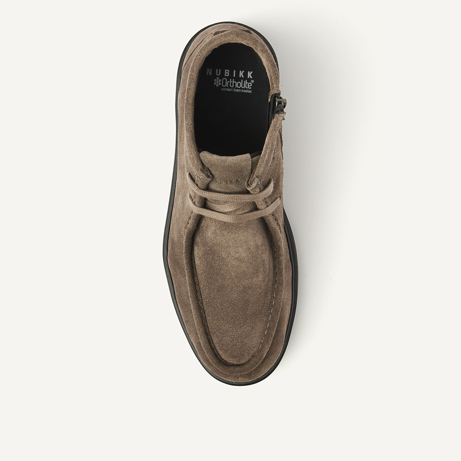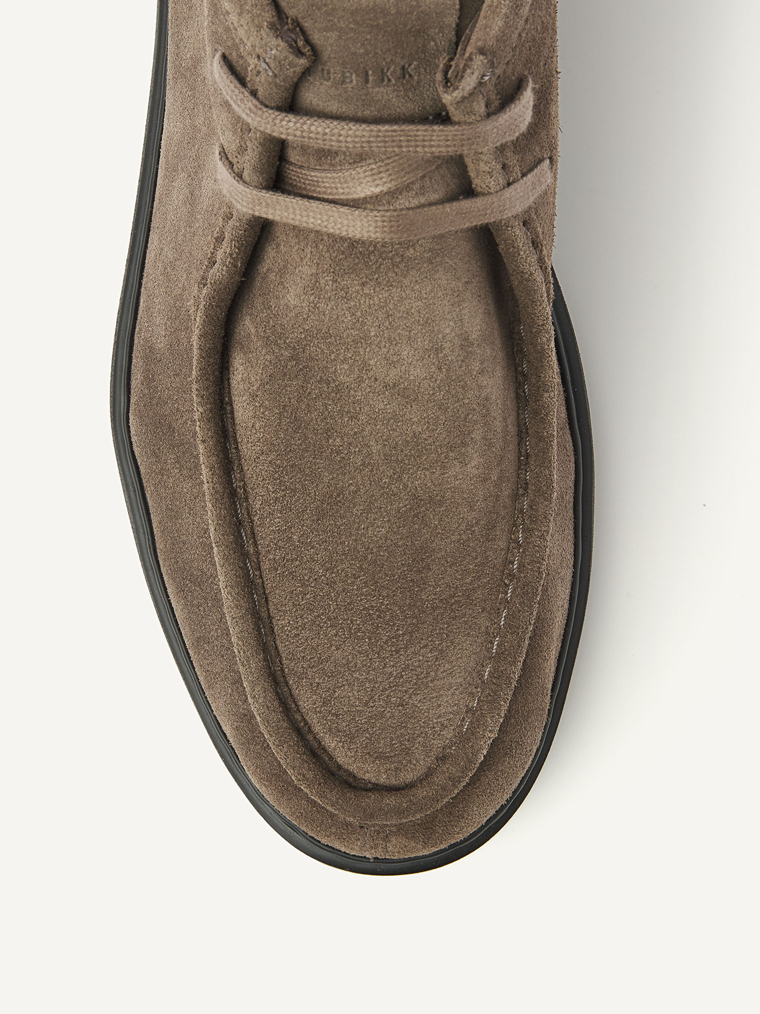 De Steve Ryan Mid in dark grey suède is een eigentijdse interpretatie van de klassieke desert boot. Gemaakt van hoogwaardig suède en voorzien van een zwarte zool, biedt deze schoen een perfecte balans tussen stijl en comfort. De minimalistische belijning en mid-top silhouet geven een moderne twist aan een tijdloze look. Combineer met een jeans of chino voor een verfijnde casual outfit.