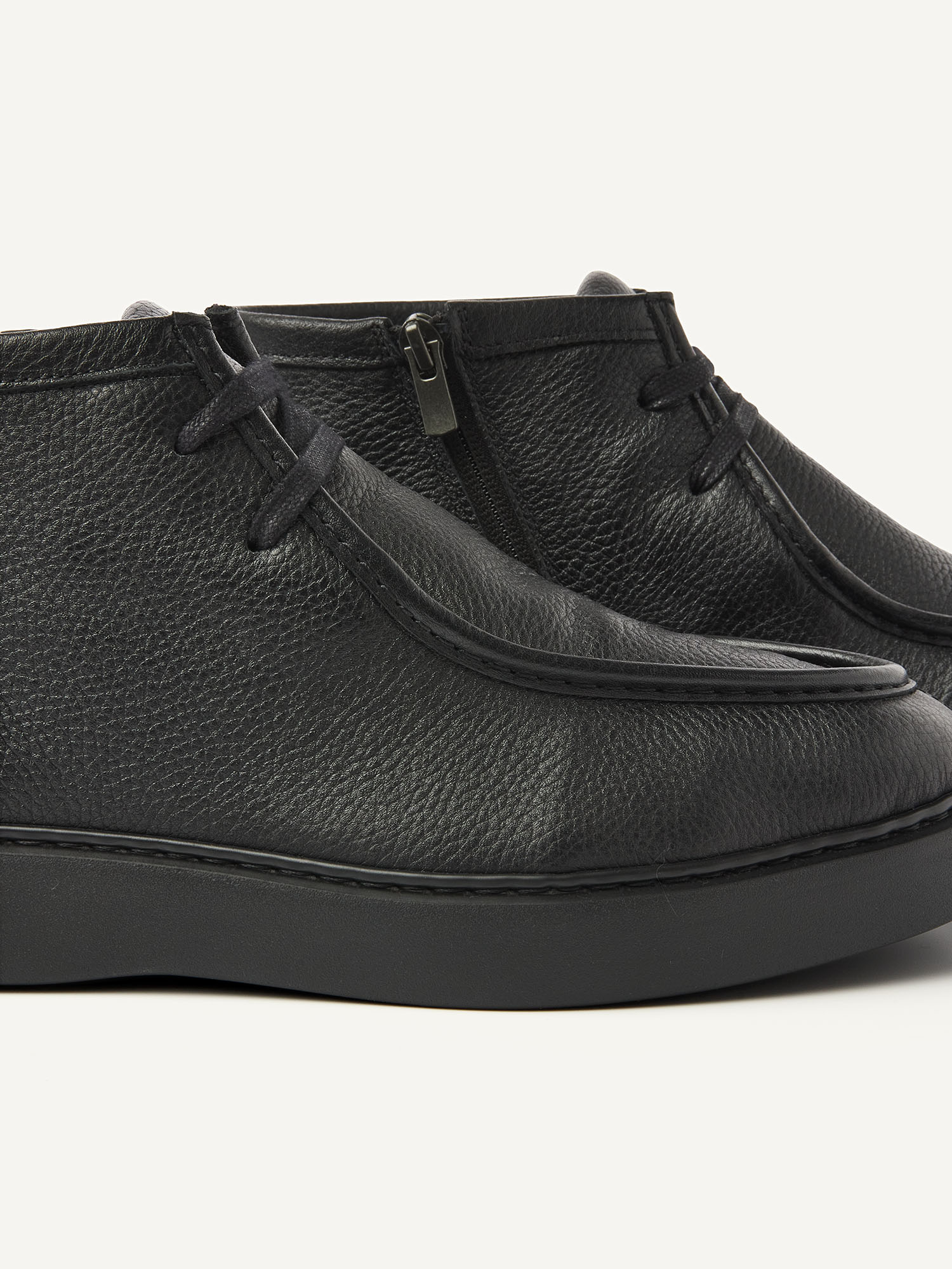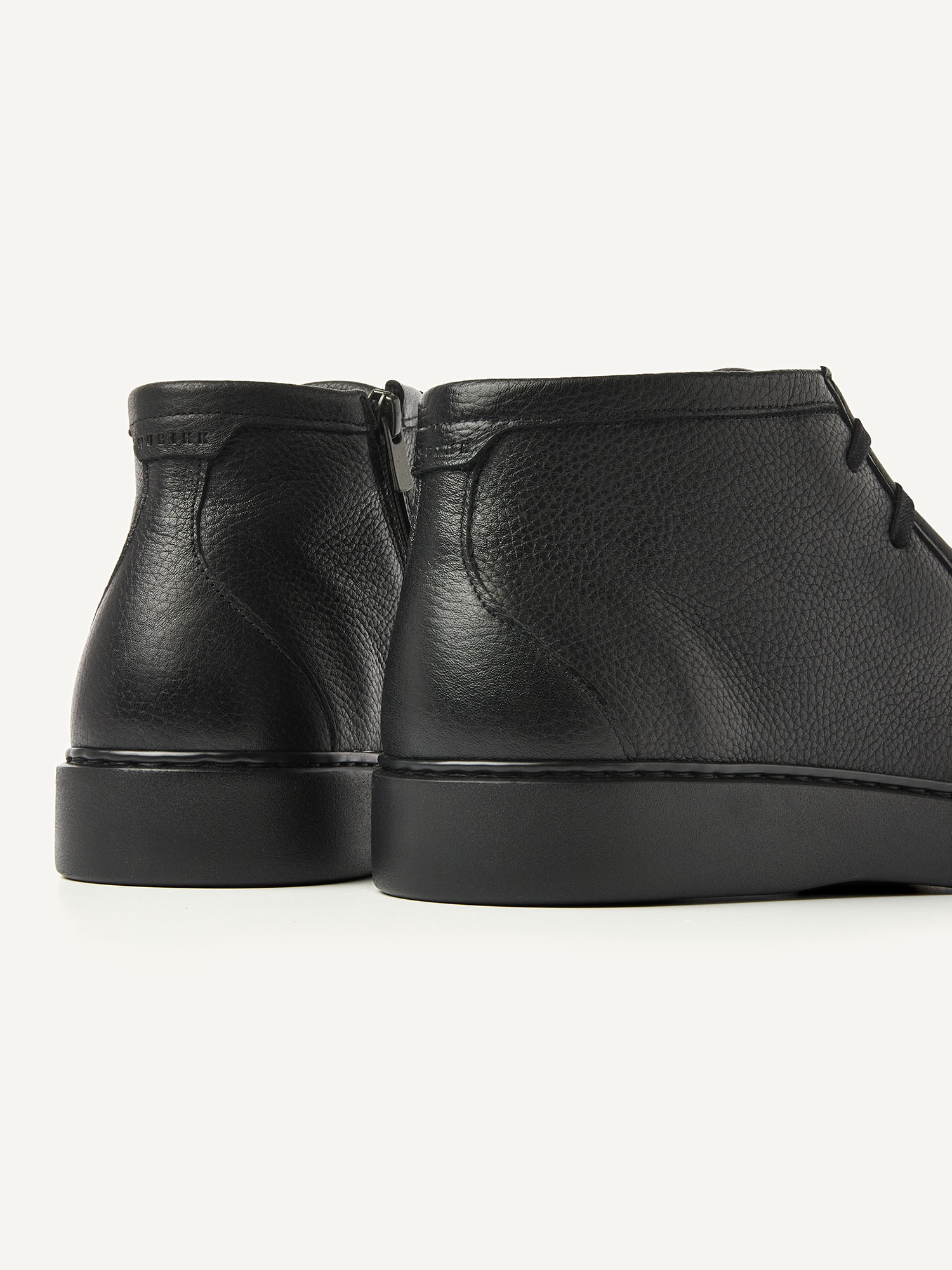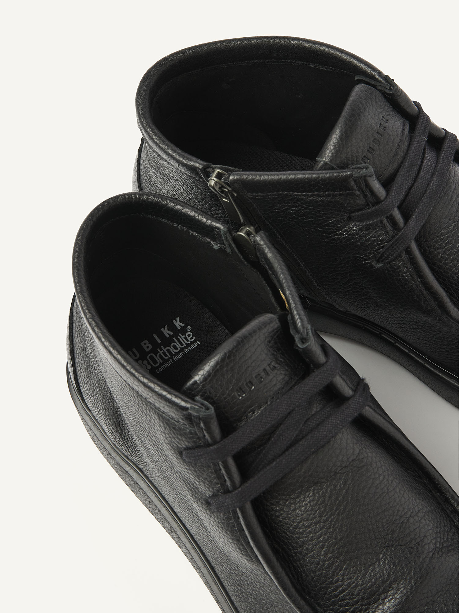 De Steve Ryan Mid in black leather is een strakke, veelzijdige schoen die moeiteloos past bij iedere garderobe. Uitgevoerd in hoogwaardig leer met een bijpassende zwarte zool, straalt dit model een krachtige eenvoud uit. Dankzij het comfortabele voetbed en de duurzame materialen is deze mid-top schoen zowel geschikt voor dagelijks gebruik als voor meer geklede gelegenheden.