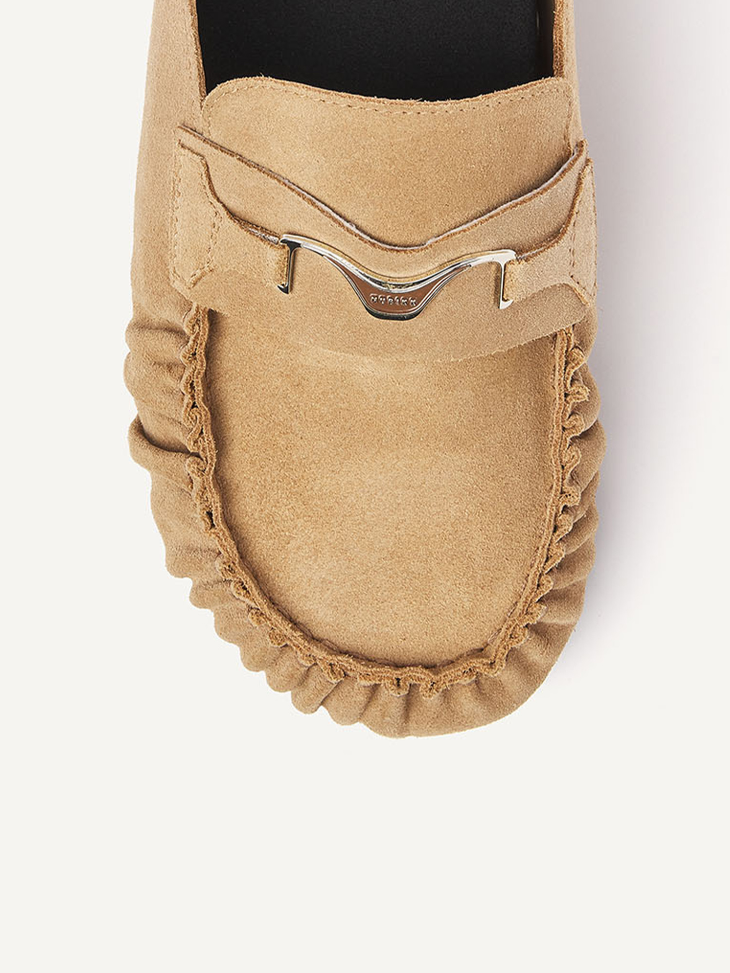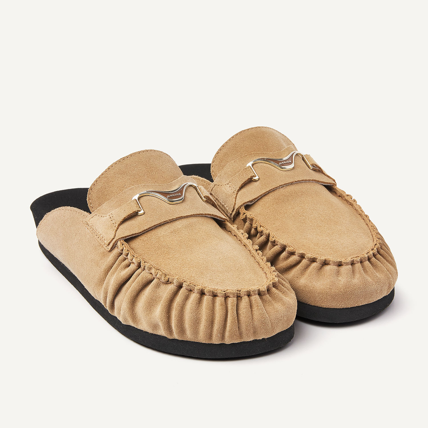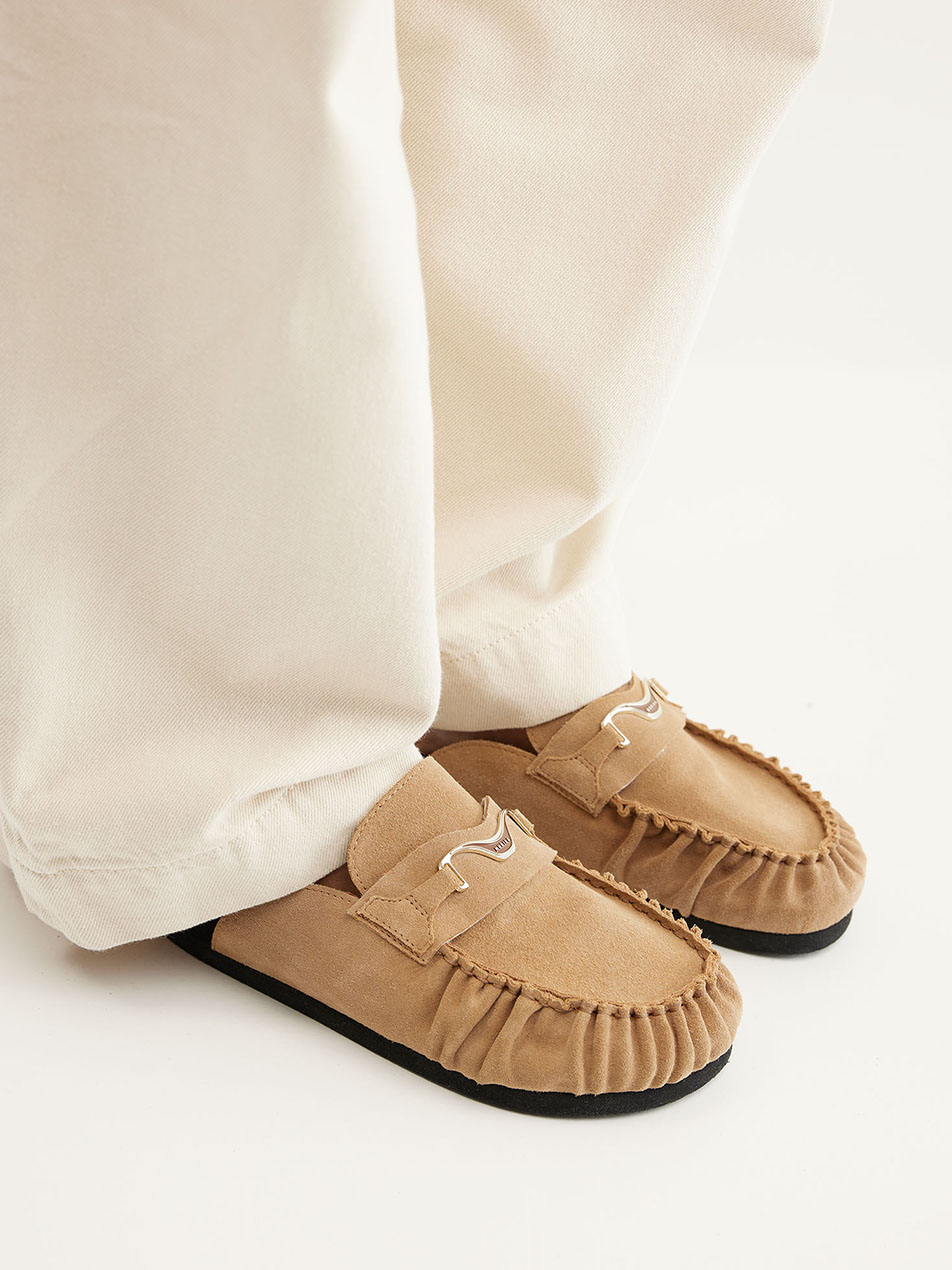 De Teddy Noa is een slip-on met een zachte, luxe uitstraling. Het oak suede en het subtiele NUBIKK hardware detail geven de slipper een verfijnde look, terwijl de zwarte zool zorgt voor een modern contrast.