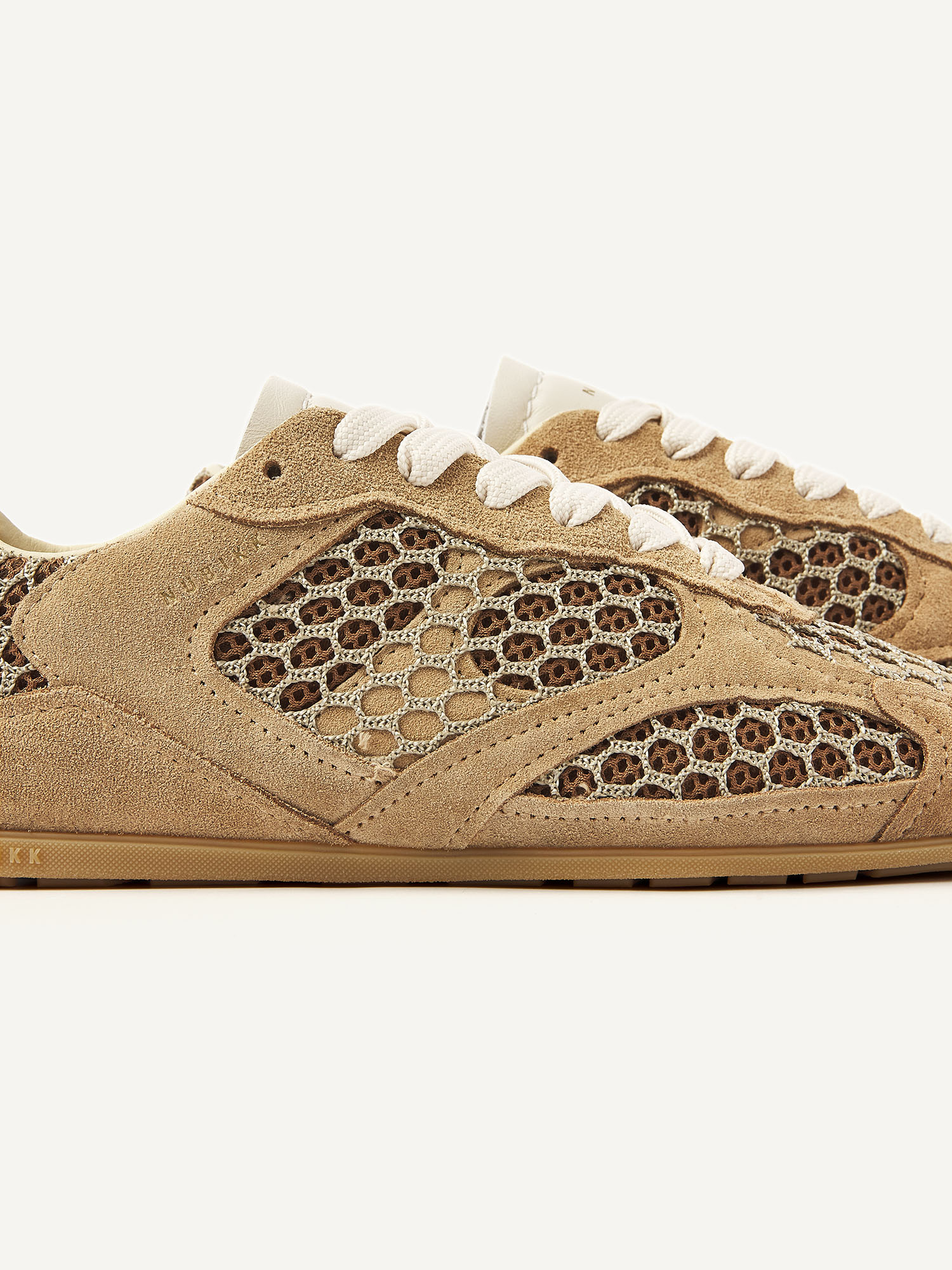 De Riley Morgan is een layered runner met een retro feel. Deze warme oakkleurige sneaker is opgebouwd uit drie lagen: een stevige basis, suède leer en grovere mesh – wat zorgt voor een natuurlijk en gelaagd silhouet.