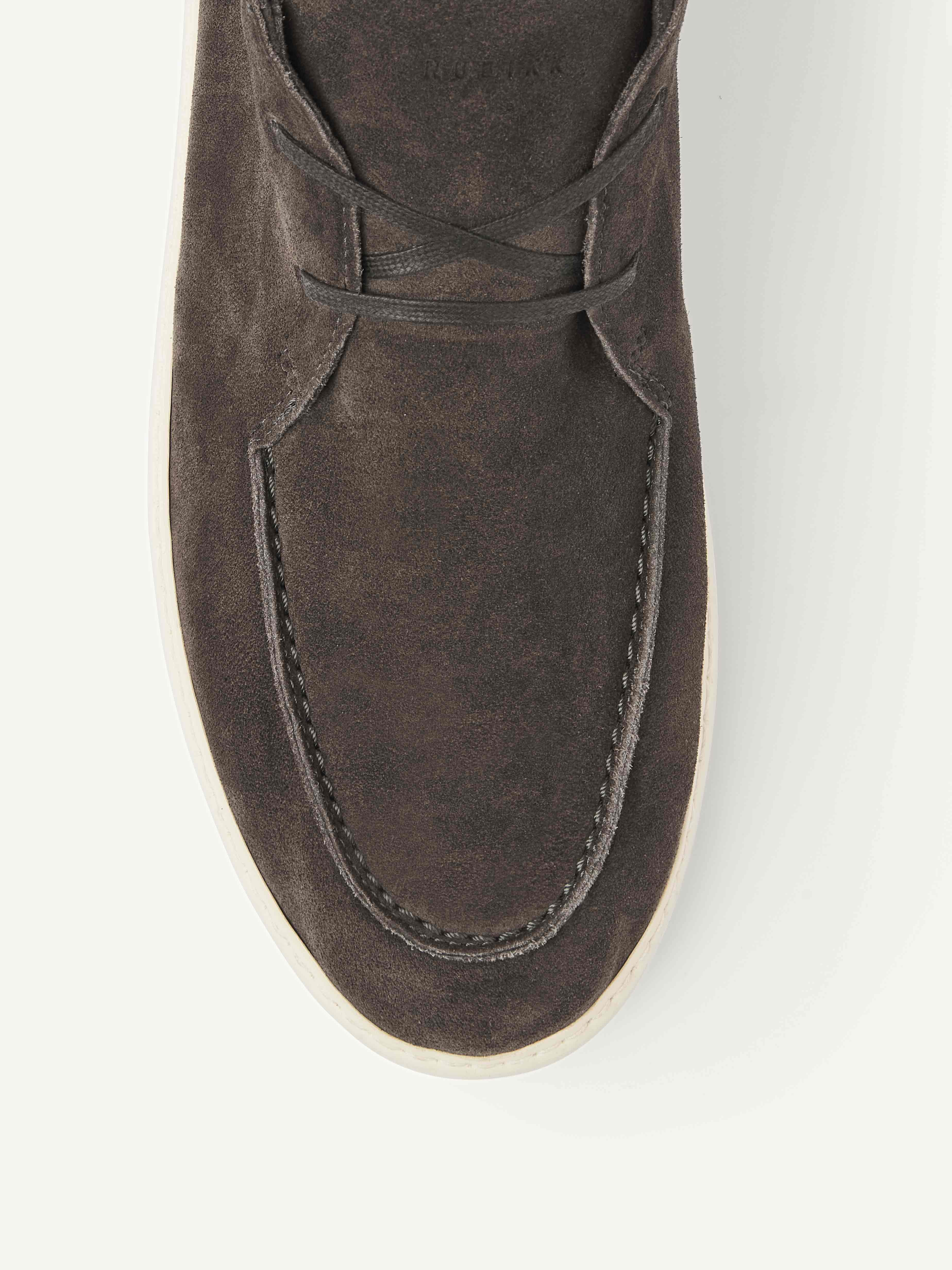 Maak kennis met de Jiro Gio: een unieke loafer met een klassieke uitstraling. Gemaakt van hoogwaardig suède, een variatie op de klassieke Jiro Mio. Deze halfhoge desert boot is voorzien van een lichtgewicht PU-zool en een padded achterkant, zodat je in stijl kunt lopen zonder concessies te doen aan comfort.
