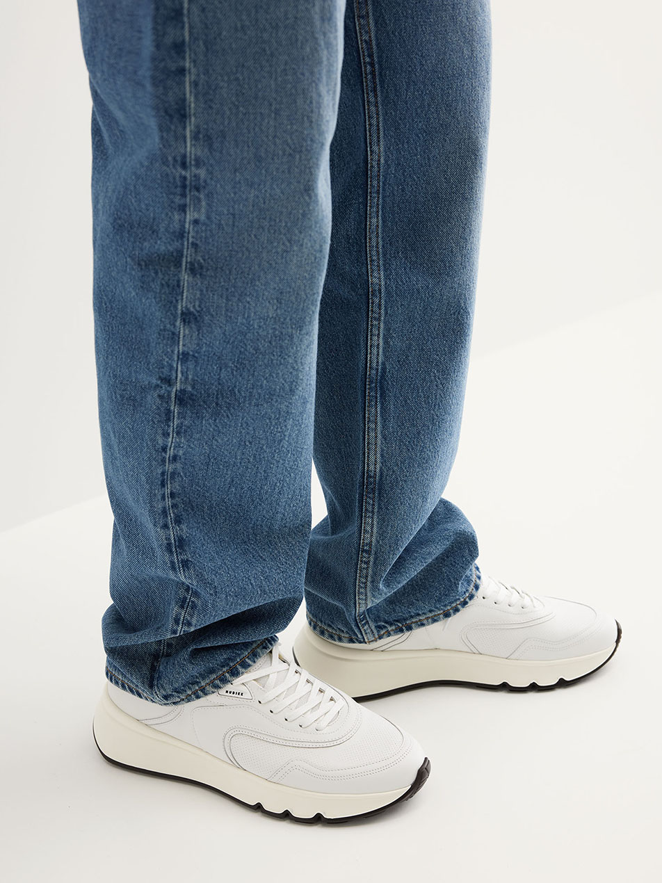 De Luca Noa is opgebouwd uit een combinatie van leer, suède en mesh, wat zorgt voor een dynamisch silhouet met diepgang. De gelaagde afwerking en zichtbare belijning geven de sneaker een moderne, sportieve uitstraling.