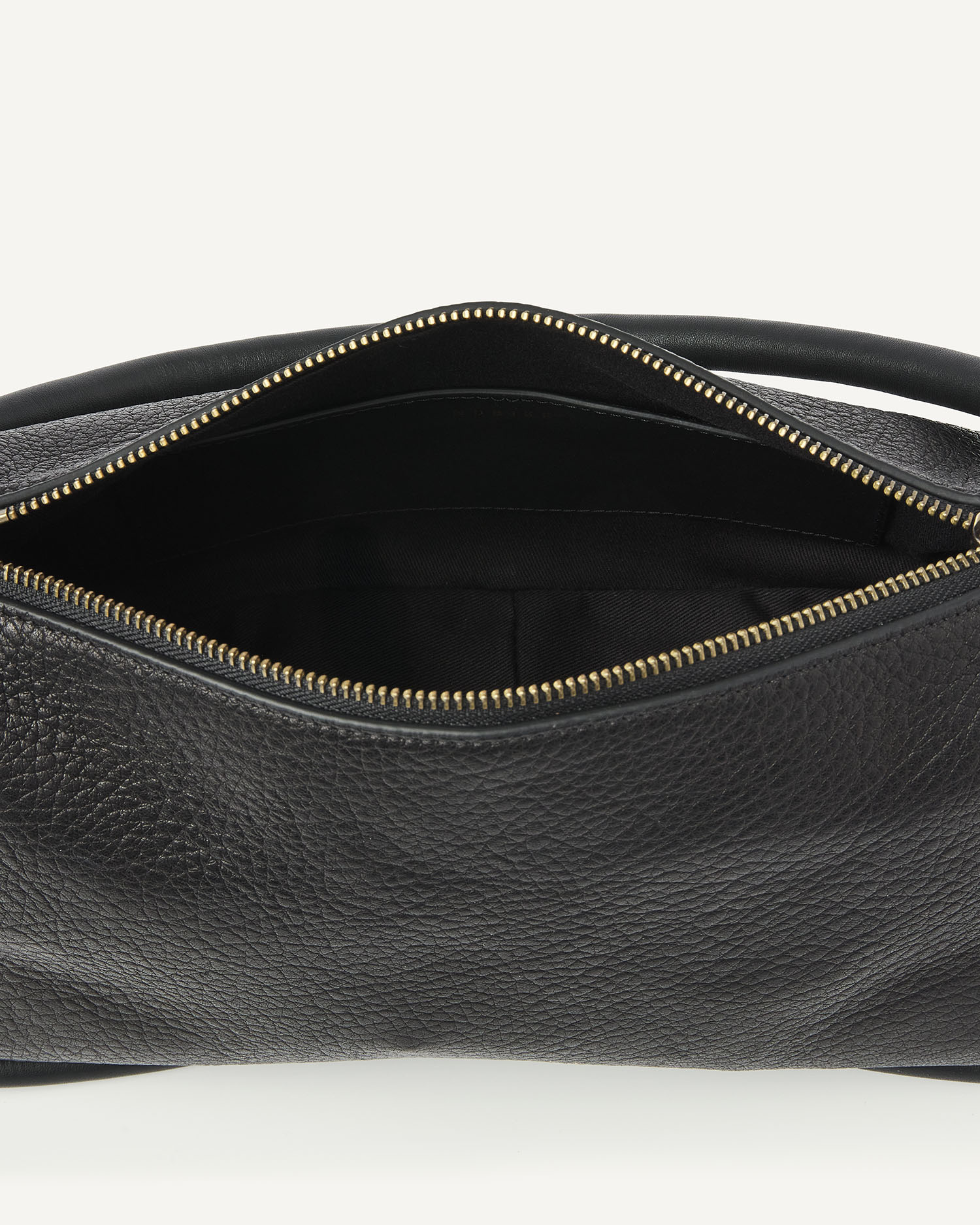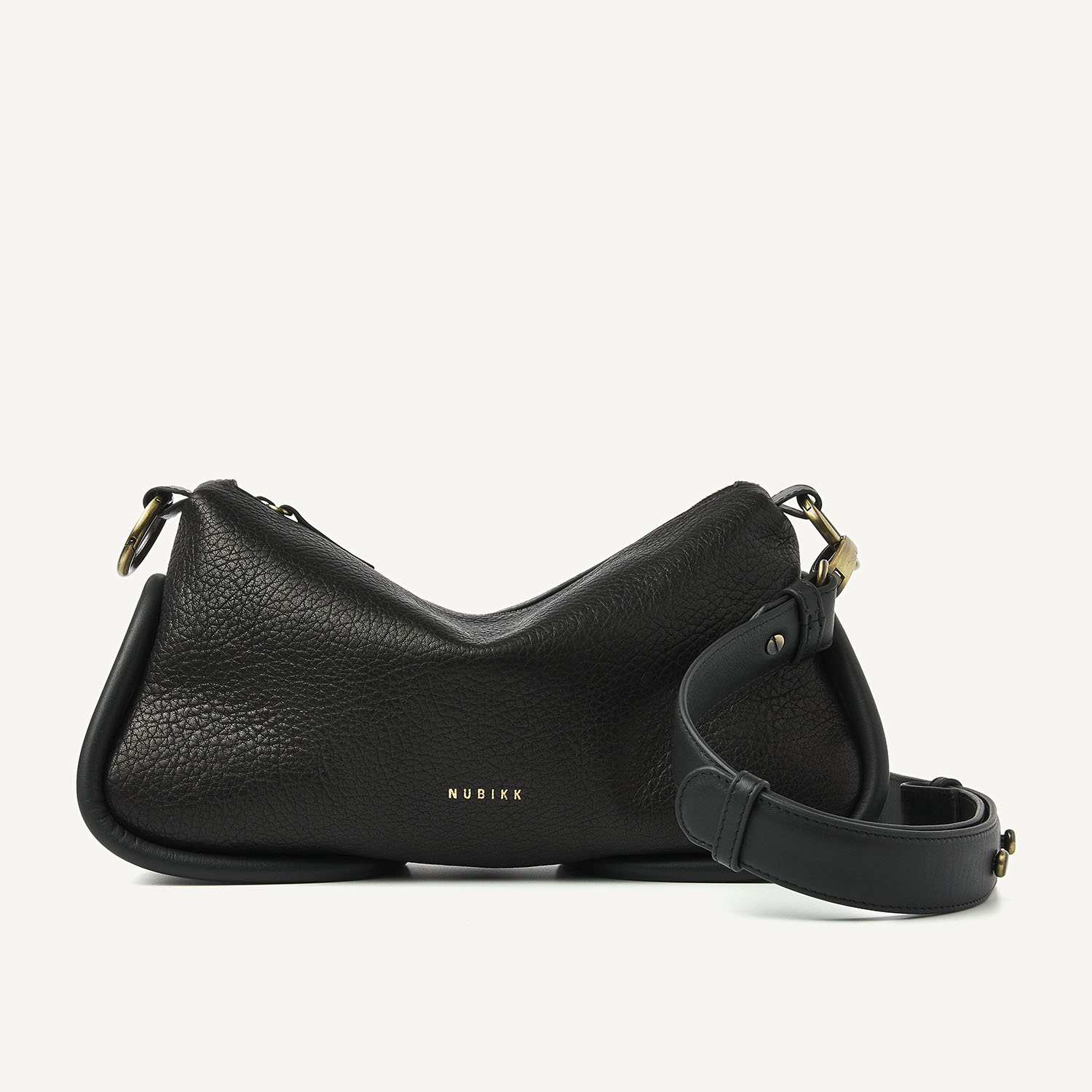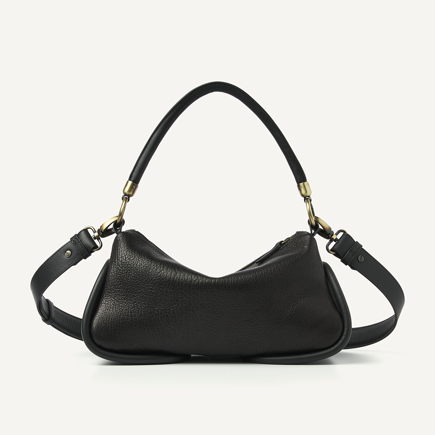 The Bibi Bag in black is a modern essential with a timeless look. The black grained material feels luxurious and moves smoothly, while the platinum hardware and leather tubes add refinement to the bag. Thanks to the detachable handles, you can wear the Bibi Bag in multiple ways: over the shoulder or crossbody. Inside, an extra pocket provides space for your daily essentials. The Monchhichi bag charm is not included, but available separately!