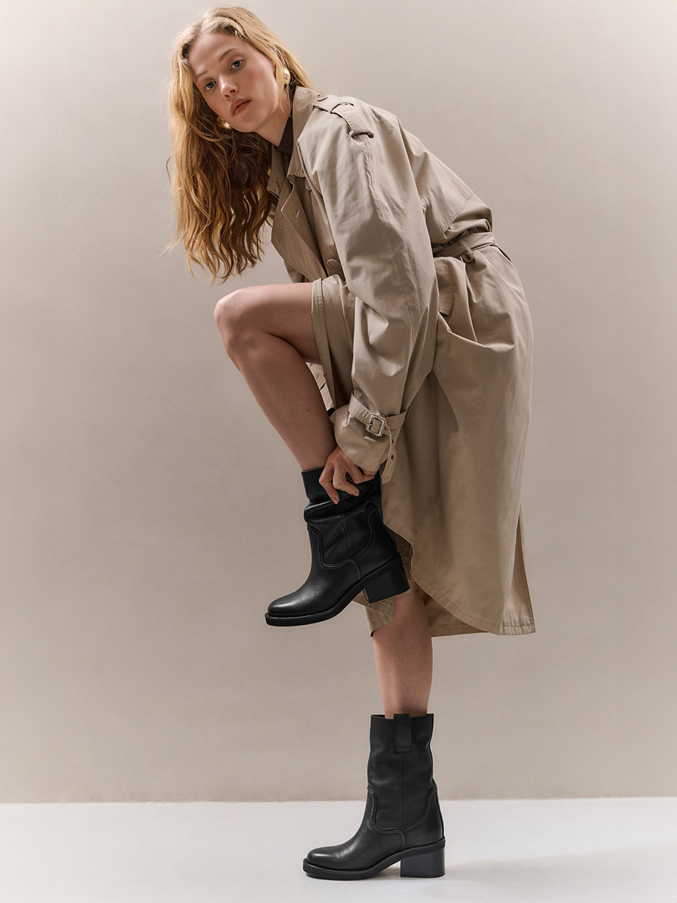 Crafted from premium leather, the Cassy Slouch boots combine traditional elements with a modern twist. The lightweight EVA sole ensures maximum comfort, while the round toe, back seam, and riding stitch design add distinctive flair.